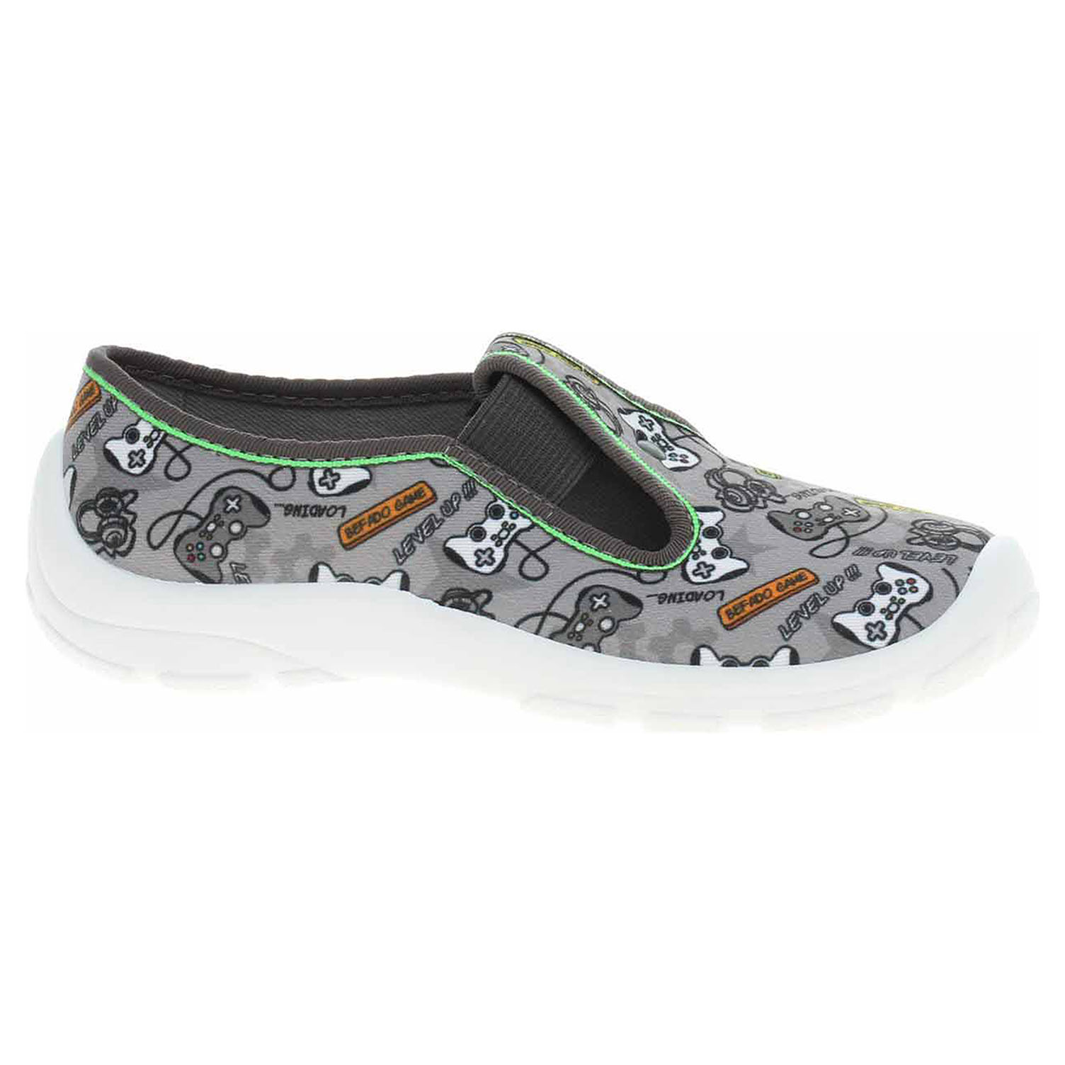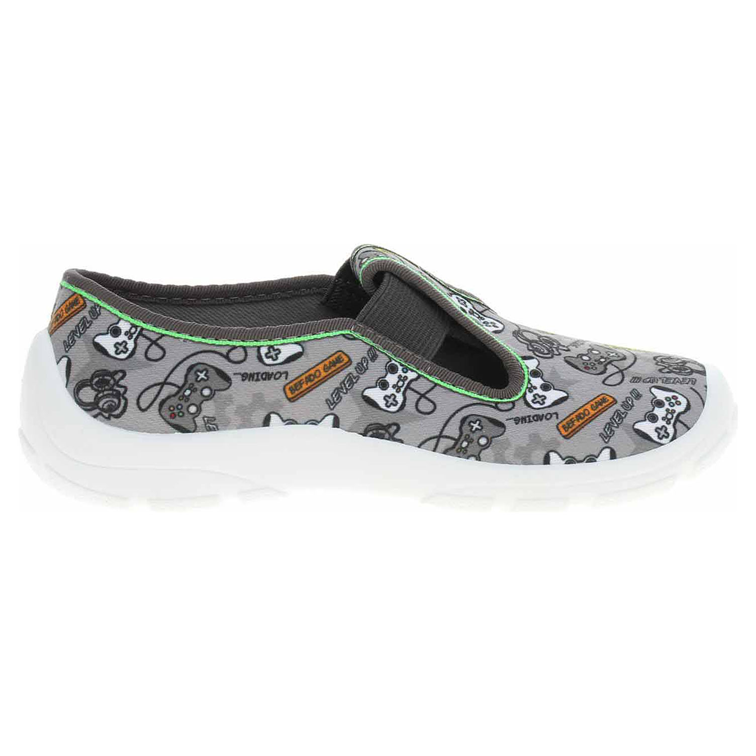 Boty Befado - chlapecké domácí bačkory s textilním svrškem, podšívkou i stélkou. Obuv je vybavená vyměkčenou stélkou Soft-B systém a dýchající podešví. Gumička přes nárt zajišťuje pohodlné nazouvání a stabilitu nohy v obuvi. Dětská obuv - je vzhledem ke způsobu užívání vystavena většímu mechanickému poškození - okopání. Mechanické poškození není důvodem k reklamaci.