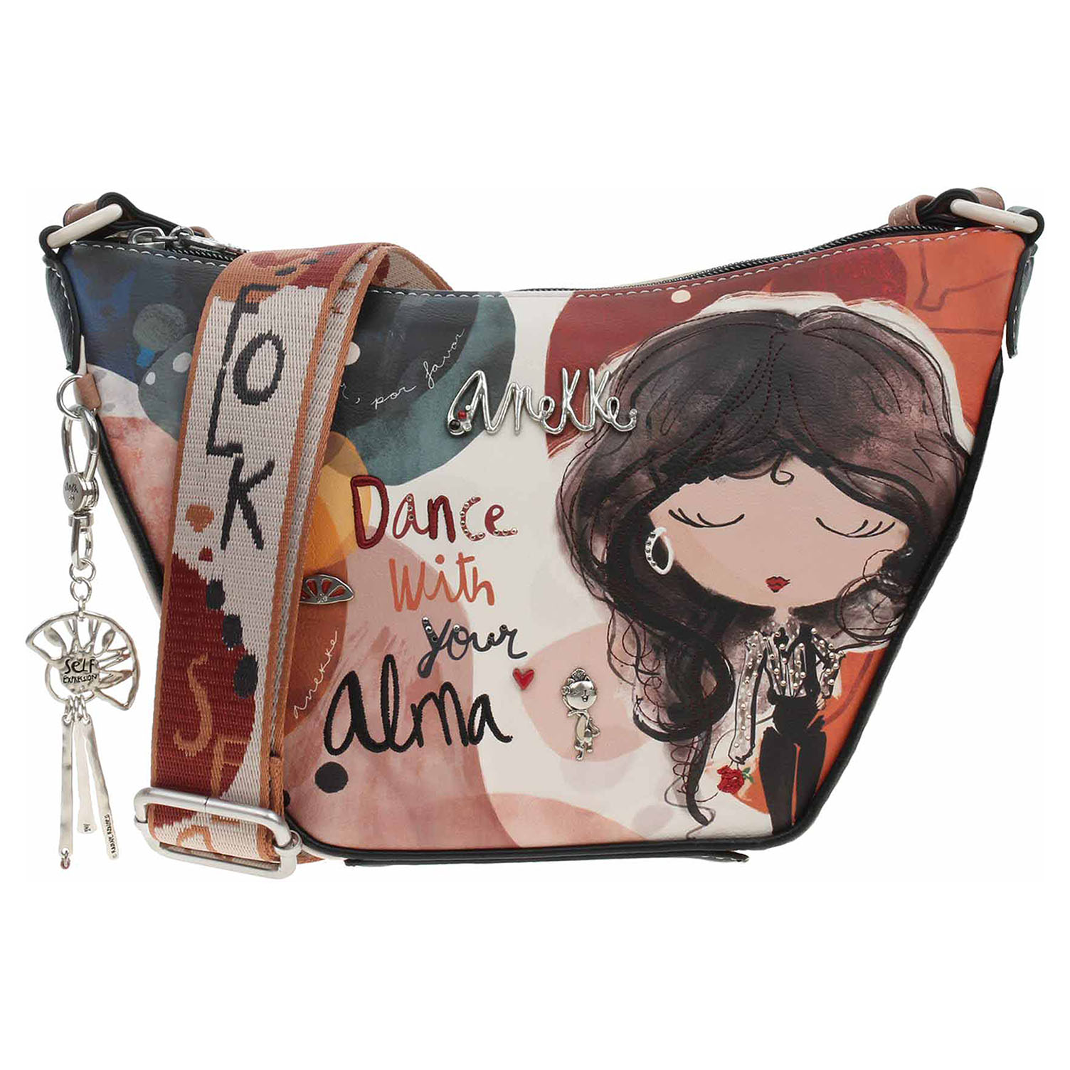 Anekke - dámská crossbody kabelka Alma se zapínáním na zip je vyrobená ze 100% polyuretanu a podšívka je ze 100% polyesteru. Na zadní straně je kapsa se zipem. Regulovatelný popruh (max délka 125 cm) se nedá odepnout. Formát A4 se nevejde. Rozměry: 28/15 x 17 x 10 cm. Vnitřní výbava: 1x kapsa se zipem, 1x kapsa bez zapínání. Nechybí ikonický přívěsek Anekke. Baleno v praktickém dustbagu. Anekke - I´m eco-friendly.