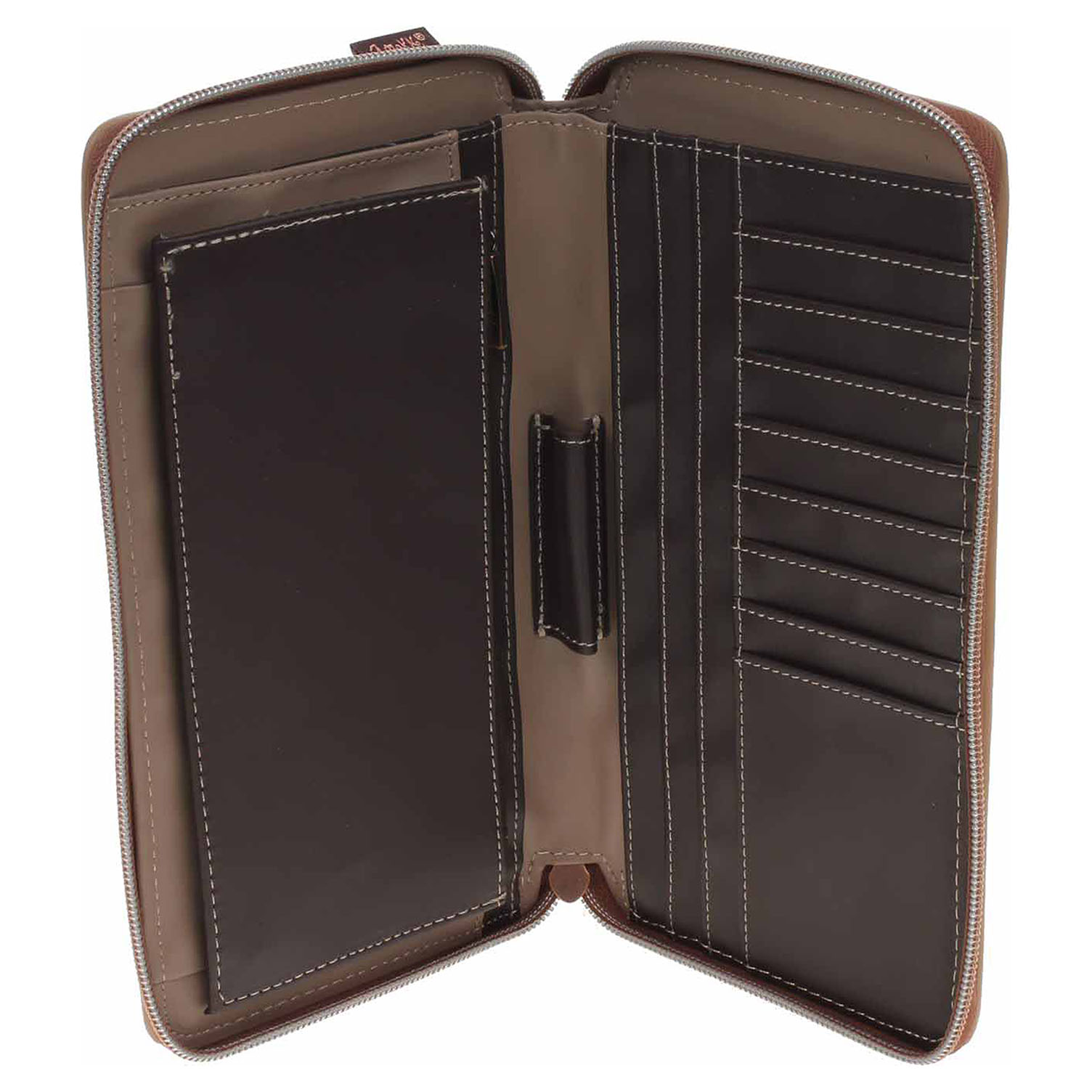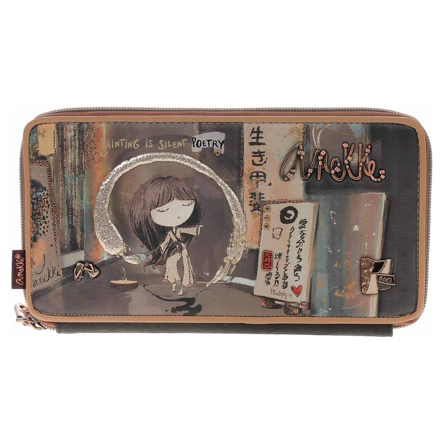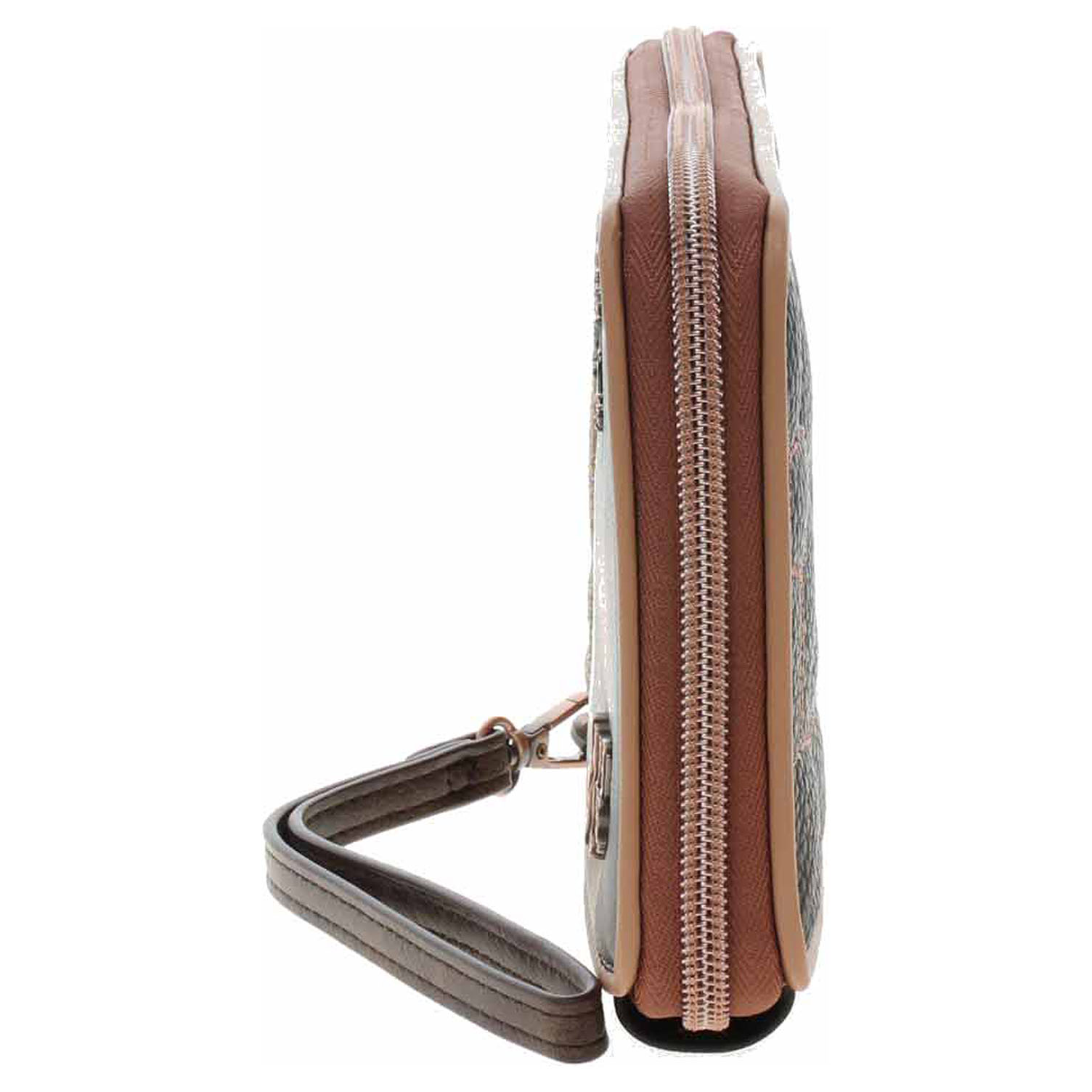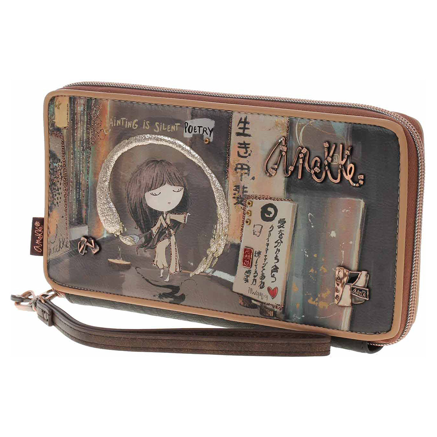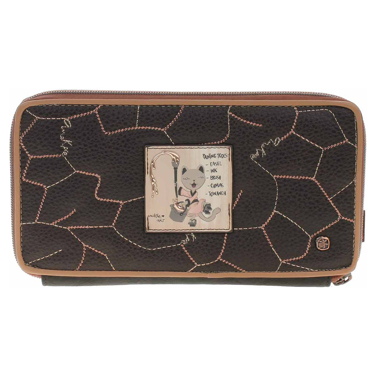 Anekke Shoen Brown - dámská dokladová peněženka ze 100% polyuretanu a s podšívkou ze 100% polyesteru se zapíná na zip a je vybavená páskem na ruku, který se dá odepnout, a uvnitř poutkem na tužku, přihrádkami na bankovky, na karty a kapsičkou na mince, která se zapíná na zip. RFID Protection - peněženka má ochranu proti nežádoucímu zkopírování dat z Vaší platební karty. Rozměry - 23 x 12 x 3 cm. Peněženka je vhodná do větších kabelek. Dárkové balení v originální krabičce.