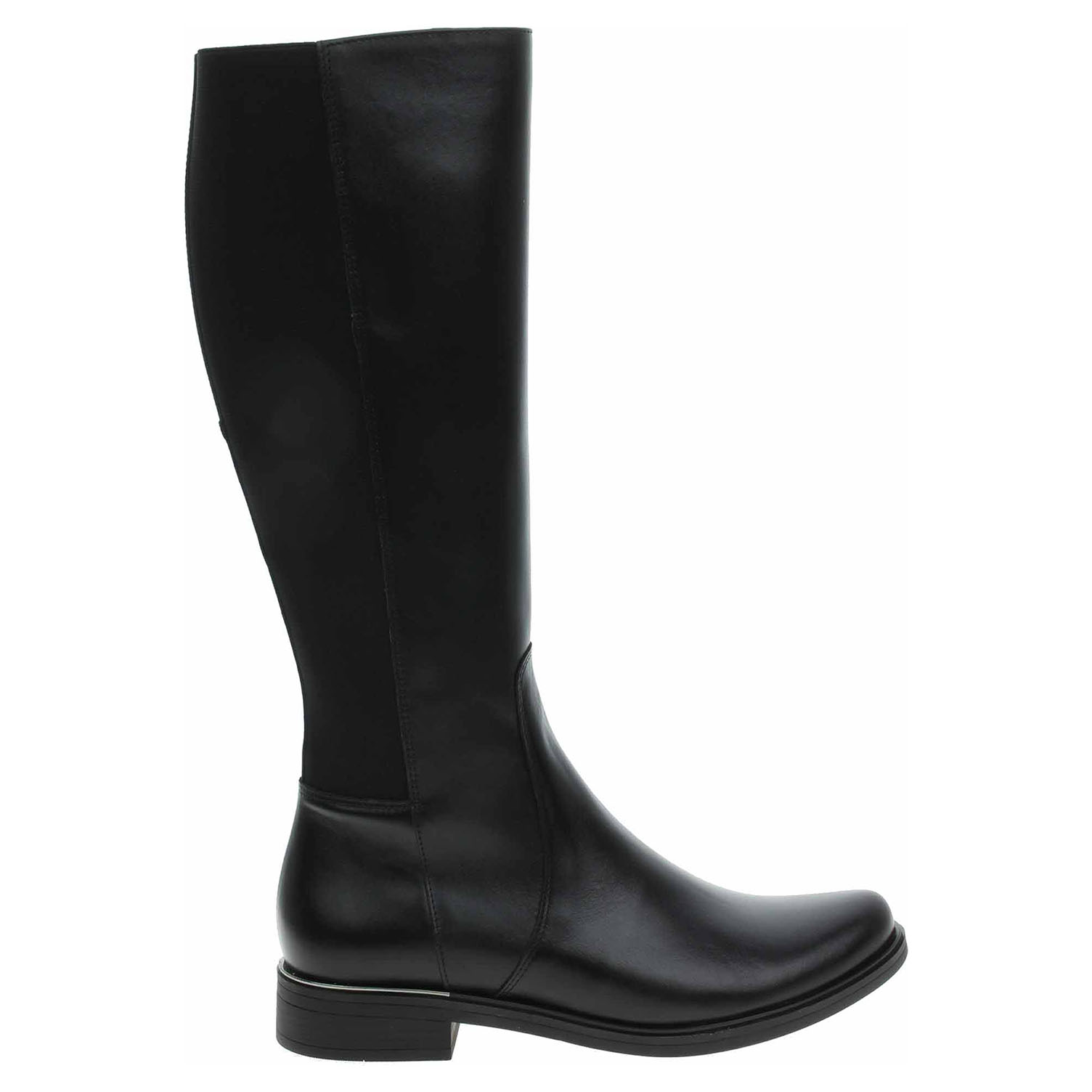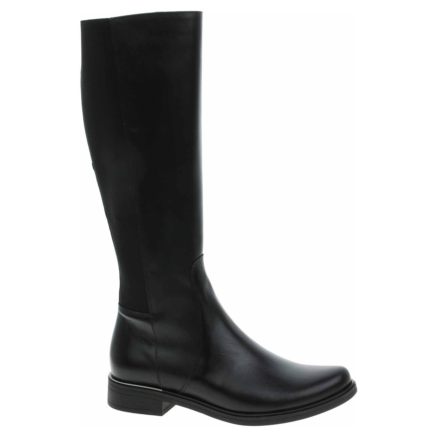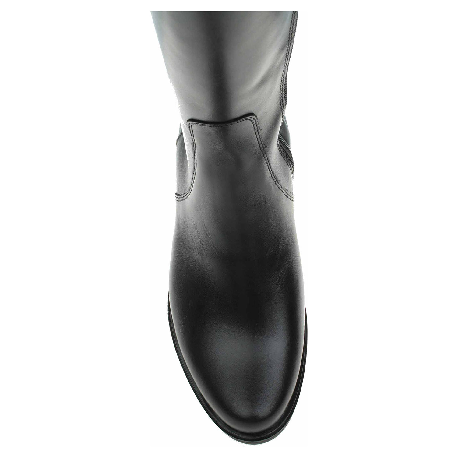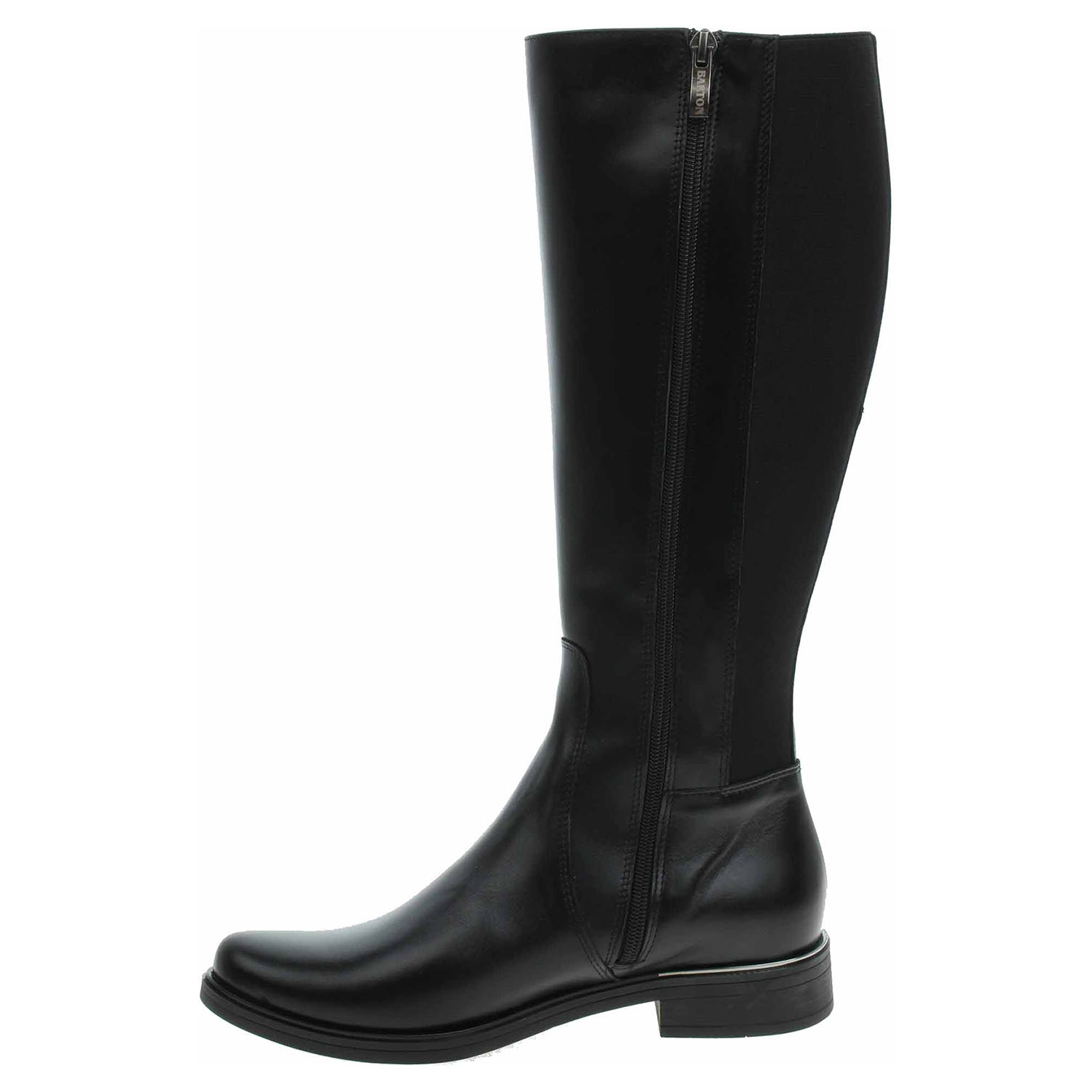 Boty Barton - lepené dámské kozačky se svrškem z usně vhodné pro středně široké lýtko velikosti M jsou vybavené zipem a vsazenými gumičkami po celé výšce lýtka, které umožňují částečné zvětšení objemu a přizpůsobení se tvaru lýtka. Obuv je vyteplená textilní podšívkou s jemným chloupkem. Podpatek je vysoký 3,- cm. Lepená obuv - pevnost lepeného spoje může být negativně ovlivněna promáčením nebo propocením, event. opakovaným používáním nedostatečně vysušené obuvi. Při neopatrné chůzi může dojít k mechanickému uvolnění lepeného spoje - ukopnutí.