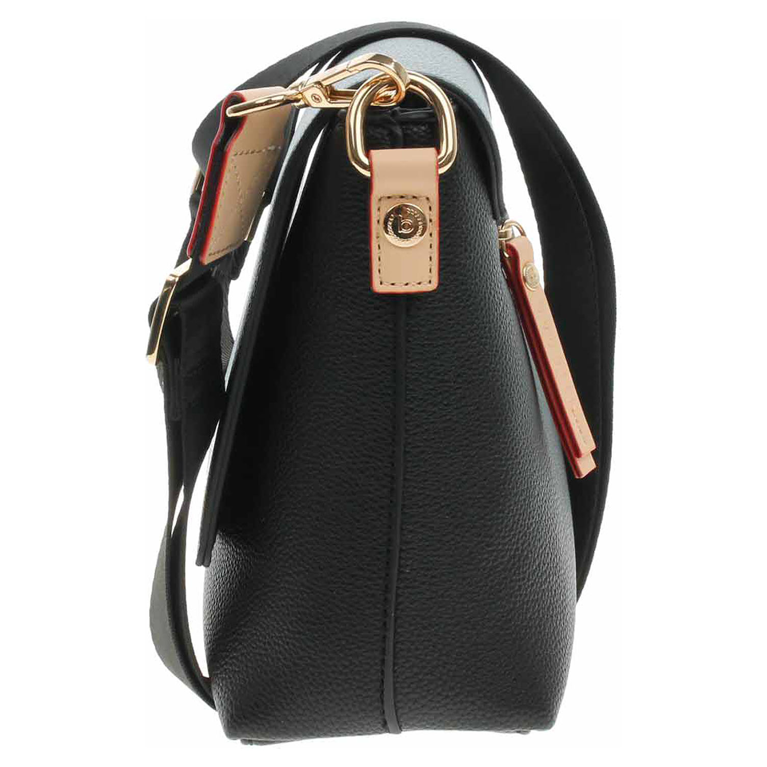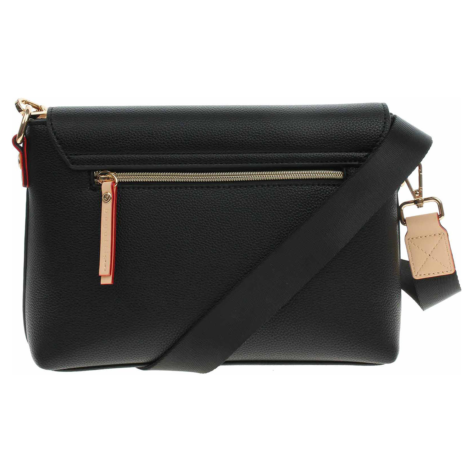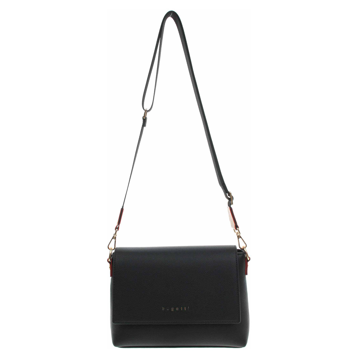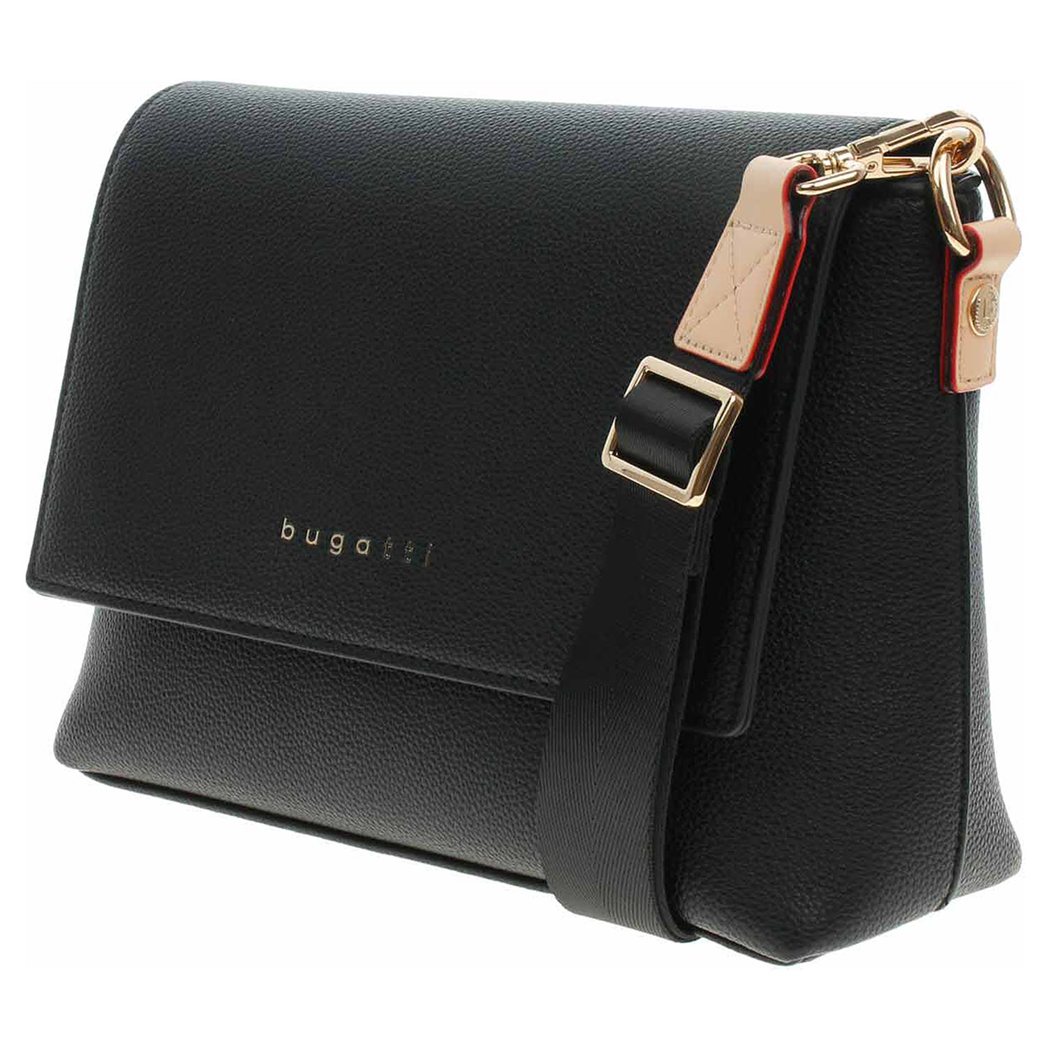 Bugatti - dámská kabelka s klopnou se zapínáním na magnet je vyrobená z polyuretanu a podšívka je z polyesteru. Hlavní komora pod klopnou se zapíná na zip. Kabelku je možno nosit přes rameno na regulovatelném popruhu s karabinkami, který se dá odepnout. Rozměry kabelky: 27 x 20,5 x 9 cm. Na zadní straně je kapsa se zipem. Přezky, karabinky, zipy jsou ve zlaté barvě. Vnitřní výbava: 1x kapsa se zipem a 1x kapsa bez zapínání.