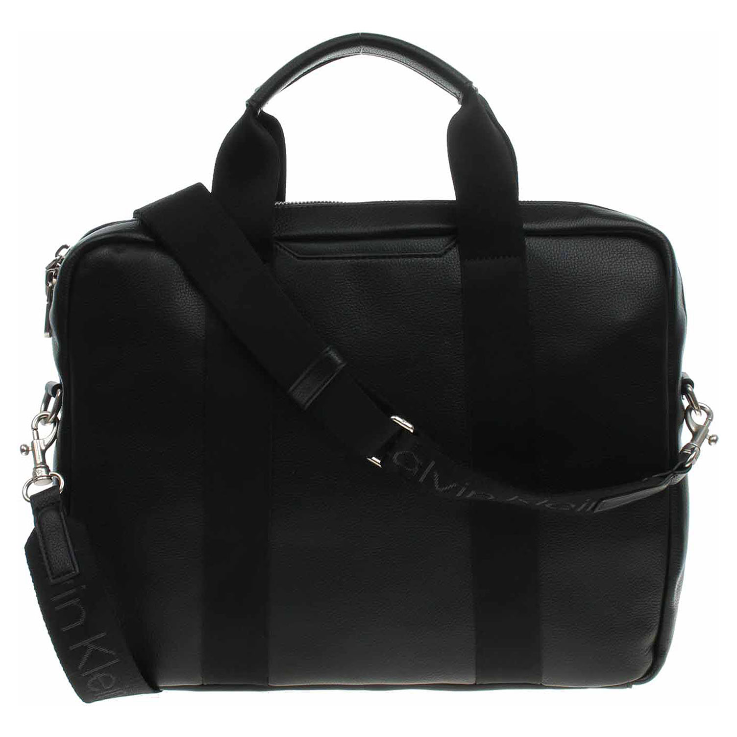 Calvin Klein - dámská taška na notebook se zapíná na dvoucestný zip a je vyrobená ze syntetiky (100% polyuretan). Rozměry - 36 x 8 x 28 cm. Tašku s plastickým logem na přední straně je možno nosit v ruce nebo přes rameno na regulovatelném popruhu, který se dá odepnout. Na zadní straně je pohotovostní kapsa bez zapínání. Vnitřní výbava: 1x kapsa pro notebook, 2x kapsa bez zapínání.