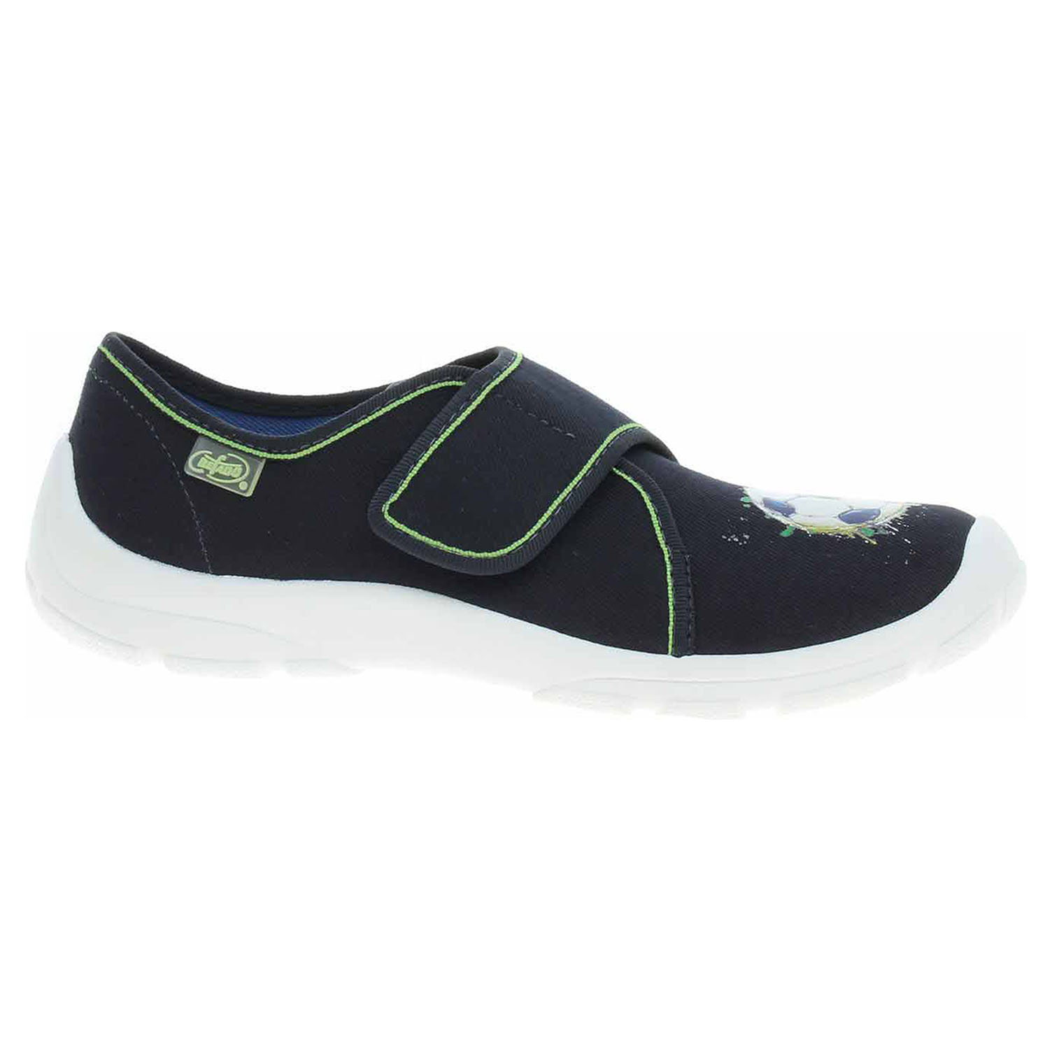 Boty Befado - chlapecké domácí bačkory s textilním svrškem, podšívkou i stélkou jsou vybavené dýchající podešví. Pásek přes nárt zajišťuje stabilitu nohy v obuvi a zapíná se na suchý zip. Dětská obuv - je vzhledem ke způsobu užívání vystavena většímu mechanickému poškození - okopání. Mechanické poškození není důvodem k reklamaci.