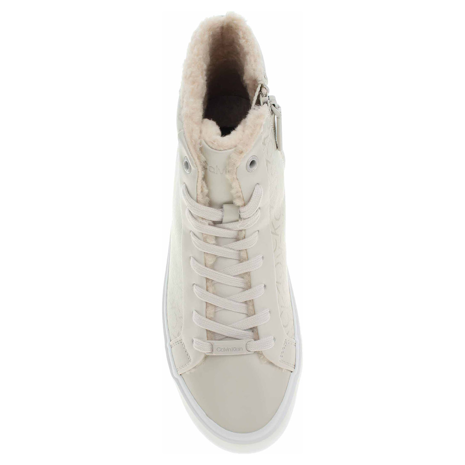 Boty Calvin Klein - módní dámská kotníková obuv se šněrováním a zipem na vnitřní straně má svršek ze syntetiky, textilní stélku a je vyteplená textilní podšívkou s chloupkem (100% recyklovaný polyester). Obuv je vybavená vyndavací stélkou. Vyměnitelné vložky do bot je možné vyndat za účelem provětrání a omytí. Značnou výhodu nabízejí vyměnitelné vložky do bot také těm uživatelům, kteří používají ortopedické vkládací stélky. Klínek je vysoký 3,- cm a platforma je vysoká 1,5 cm. Módní obuv - je určena pro krátkodobé nošení v nenáročných podmínkách. Prvořadá je módnost nikoliv životnost. Obuv není vhodná pro každodenní používání.