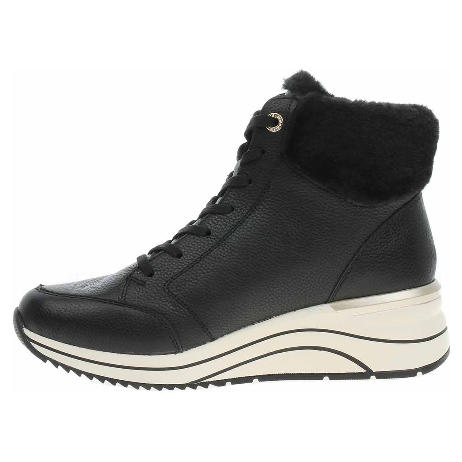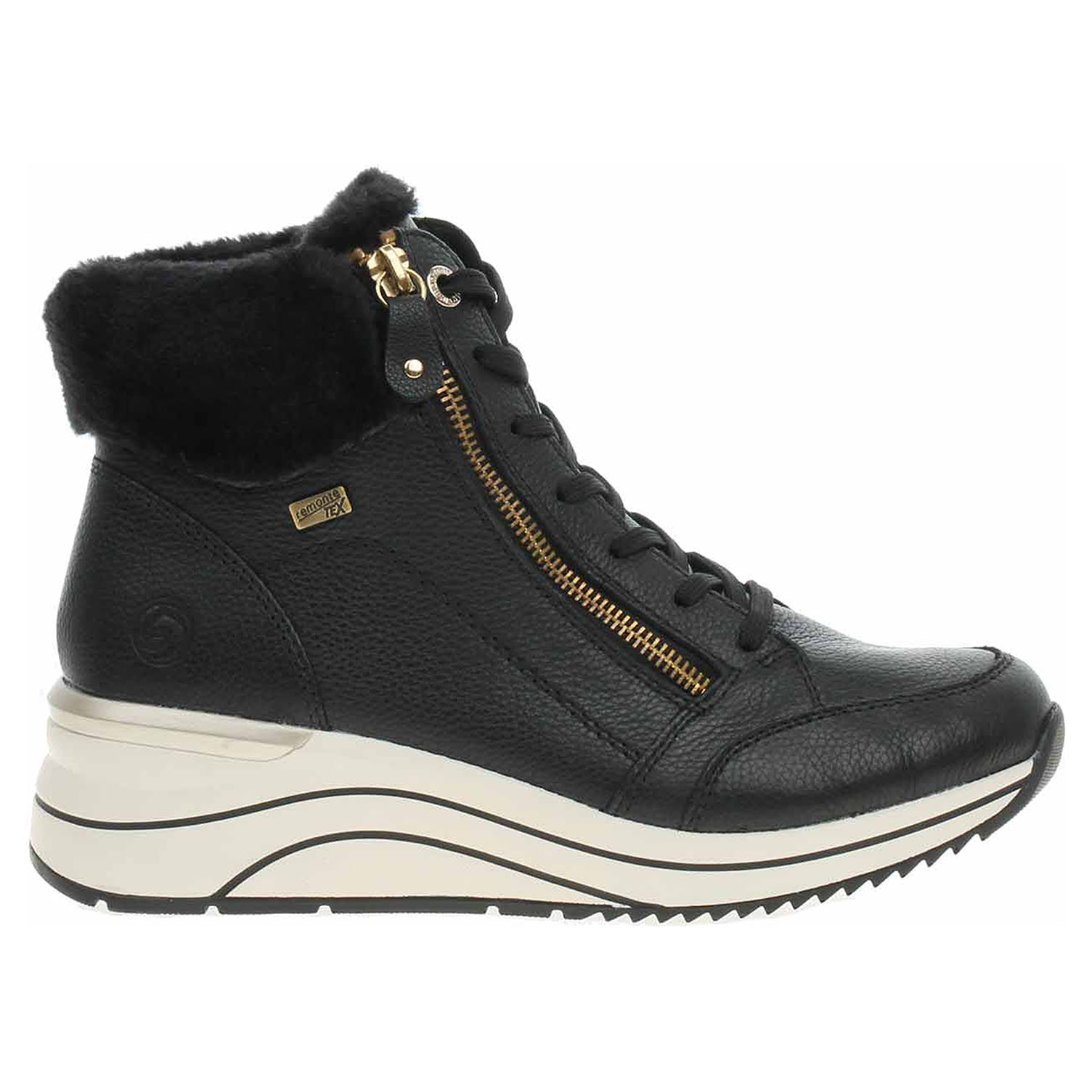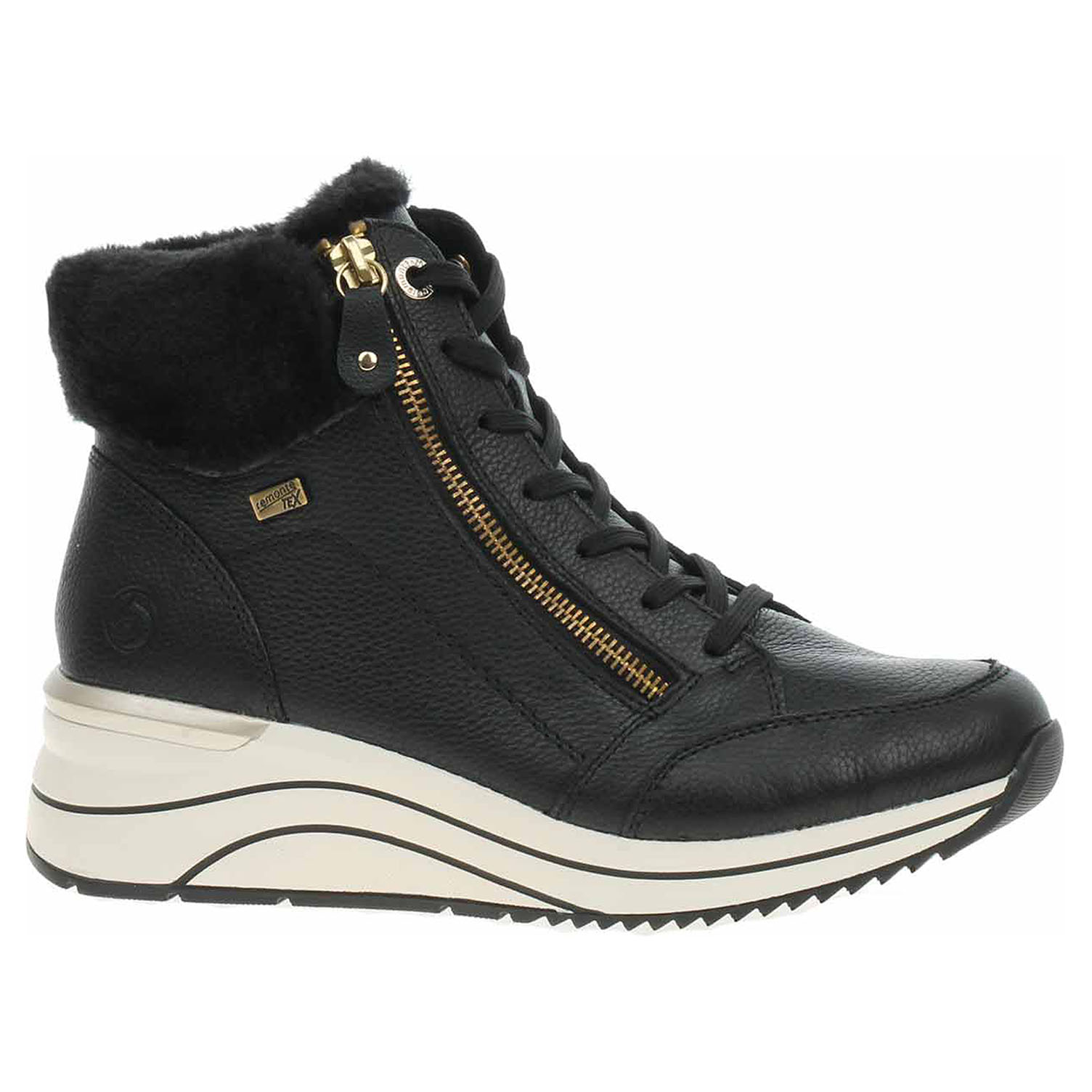 Boty Remonte - lepená dámská kotníková obuv nadměrné šíře H s vodoodpudivou membránou RemonteTex má svršek z usně s textilním lemem kolem kotníku, stélku s textilní nášlapnou vrstvou a je vyteplená podšívkou ze střižní ovčí vlny. Vložky do bot je možné vyndat za účelem provětrání a omytí. Značnou výhodu nabízejí vyměnitelné vložky do bot také těm uživatelům, kteří používají ortopedické vkládací stélky. Pohodlné nazouvání zajišťuje šněrování a zip na vnější straně nártu. Lite´n Soft = chůze jak v oblacích - ultra lehká a protiskluzová podešev + velmi příjemné materiály + extra měkká komfortní stélka. Klínek je vysoký 5,5 cm. Lepená obuv - pevnost lepeného spoje může být negativně ovlivněna promáčením nebo propocením, event. opakovaným používáním nedostatečně vysušené obuvi. Při neopatrné chůzi může dojít k mechanickému uvolnění lepeného spoje - ukopnutí.
