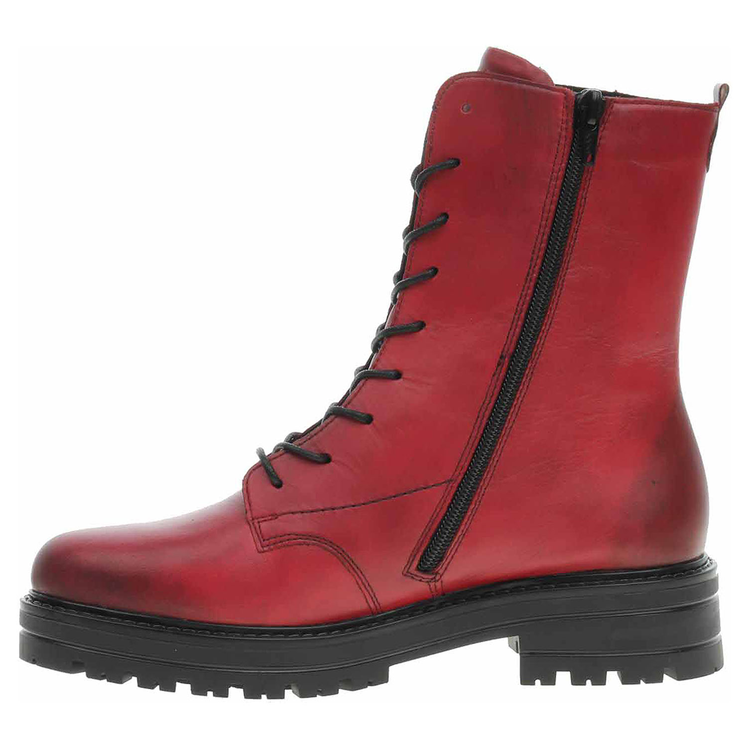 Boty Remonte - lepená dámská kotníková obuv se svrškem z usně a s vyndavací stélkou s textilní nášlapnou vrstvou je vyteplená textilní podšívkou s jemným chloupkem. Vyměnitelné vložky do bot je možné vyndat za účelem provětrání a omytí. Značnou výhodu nabízejí vyměnitelné vložky do bot také těm uživatelům, kteří používají ortopedické vkládací stélky. Pohodlné nazouvání zajišťuje šněrování a zip na vnitřní straně. Podpatek je vysoký 4,5 cm a platforma je vysoká 2,5 cm. Lepená obuv - pevnost lepeného spoje může být negativně ovlivněna promáčením nebo propocením, event. opakovaným používáním nedostatečně vysušené obuvi. Při neopatrné chůzi může dojít k mechanickému uvolnění lepeného spoje - ukopnutí.