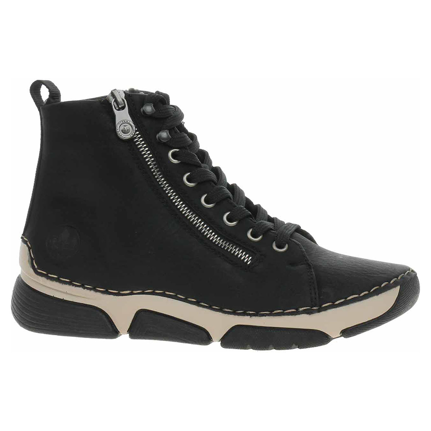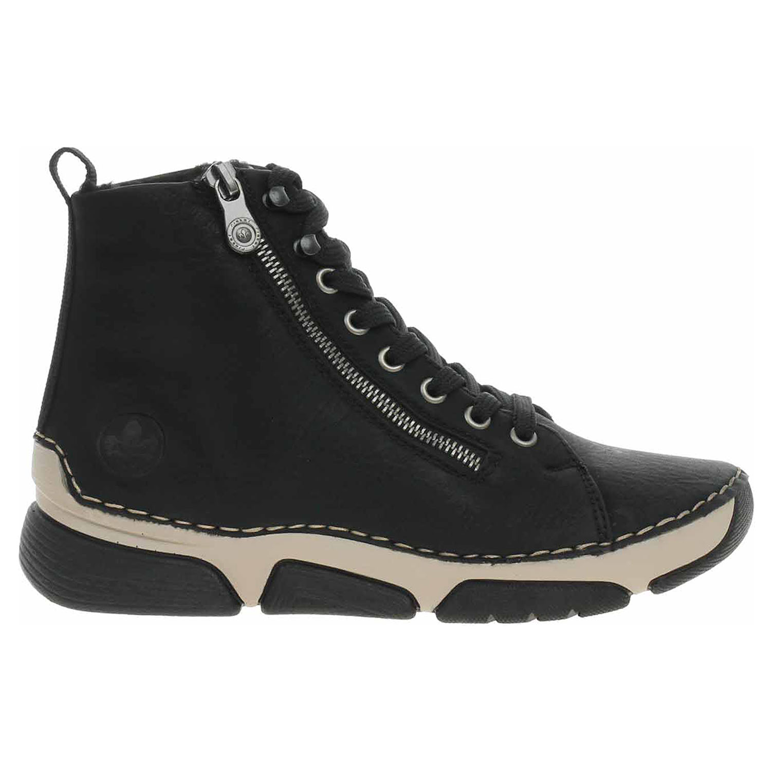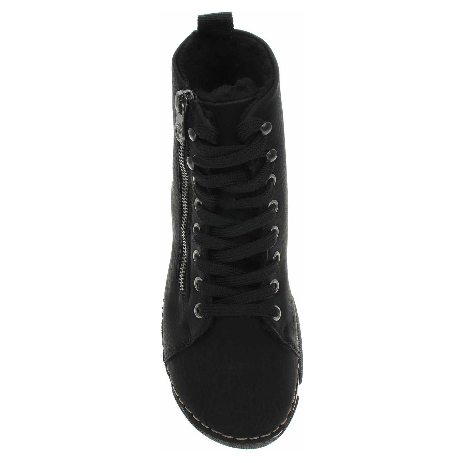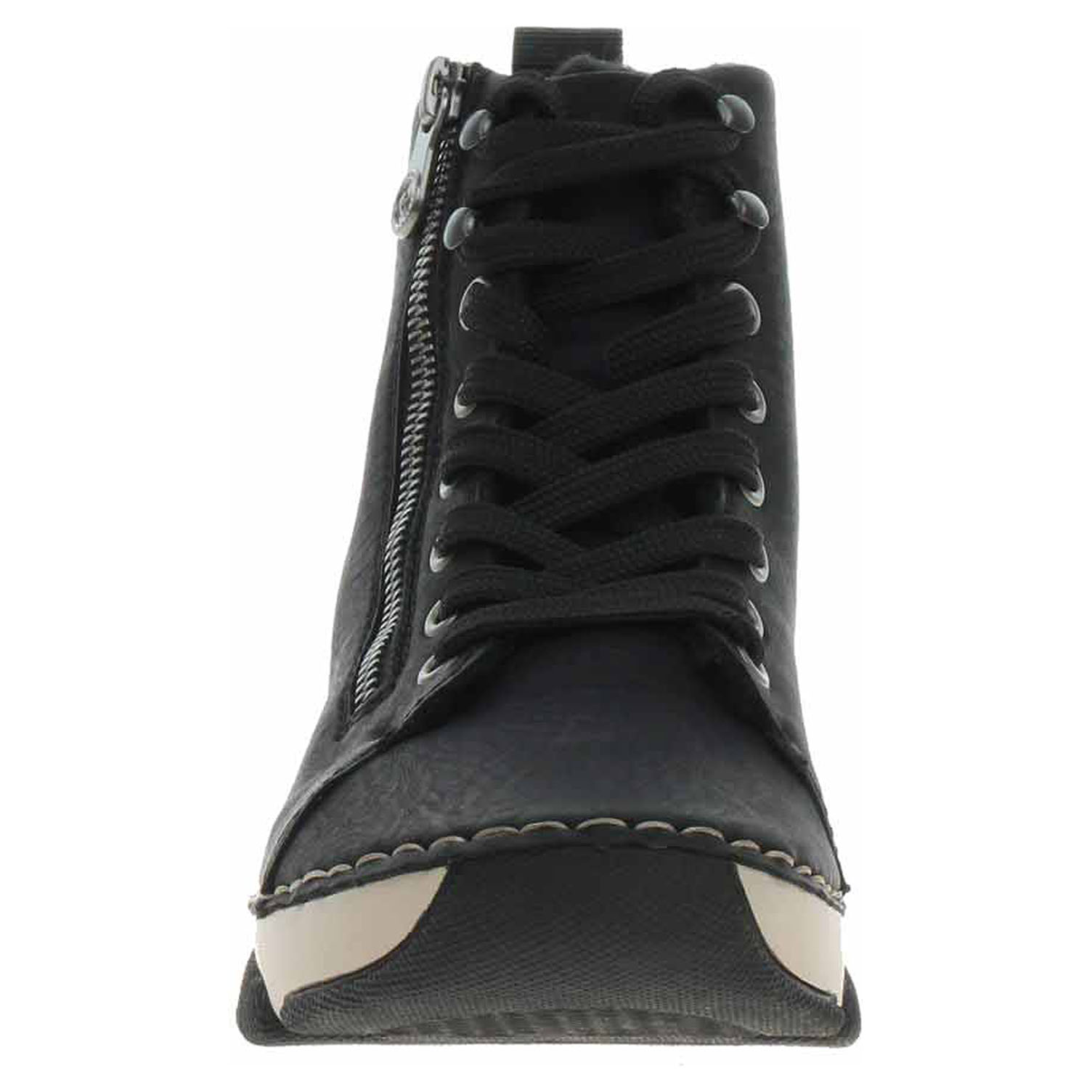 Boty Rieker - flexiblová dámská kotníková obuv nadměrné šíře H se svrškem ze syntetiky a s vyměkčenou stélkou s textilní nášlapnou vrstvou je vyteplená textilní podšívkou s chlupem. Pohodlné nazouvání zajišťuje zip na vnější straně a šněrování na nártu. Klínek je vysoký 3,5 cm a platforma je vysoká 2,- cm. Podešev je flexibilní a díky systému Antistress (lehkost, pružnost, prostornost a vynikající absorpce nárazů) Vám obuv zajistí pohodlí při každém kroku. Flexiblová obuv - prošívaná podešev, obuv používejte v suchém prostředí. Při zvýšené vlhkosti může dojít k promáčení obuvi. Obuv pravidelně impregnujte nebo krémujte, zvláště pak prošívaný okraj.