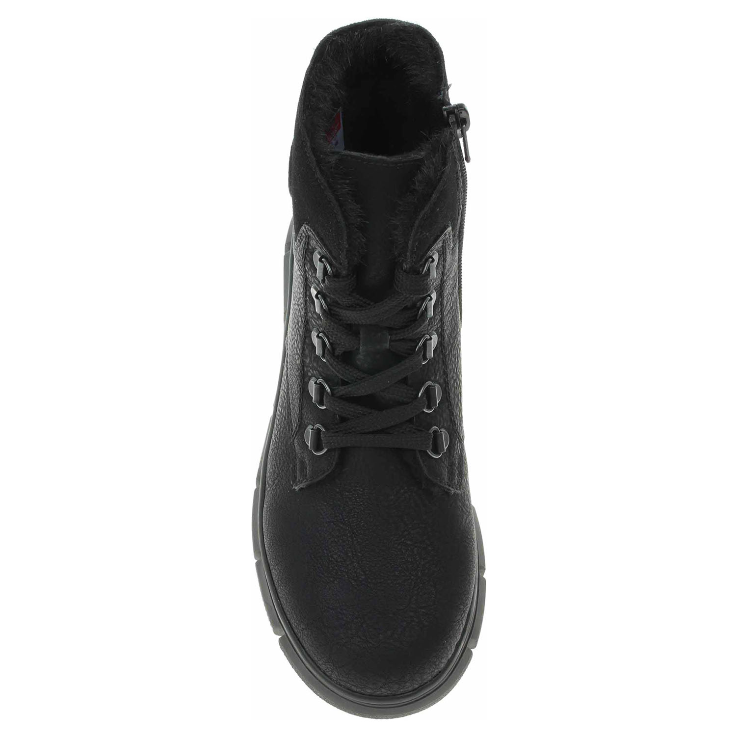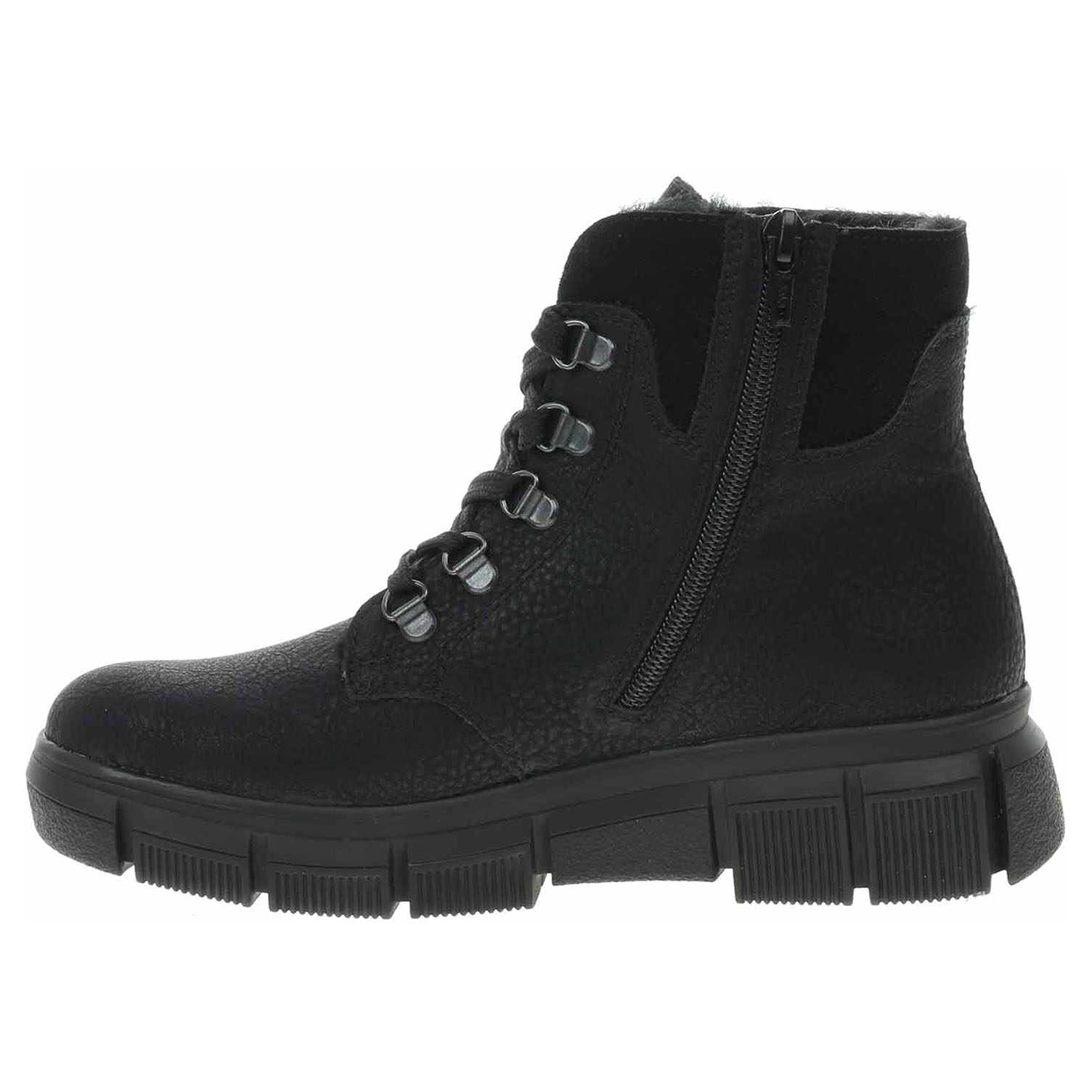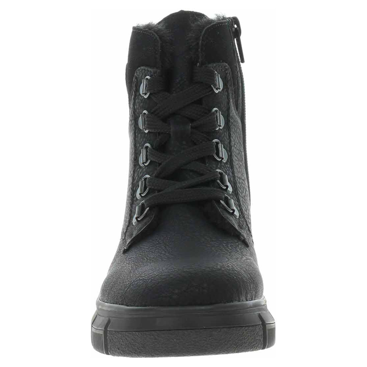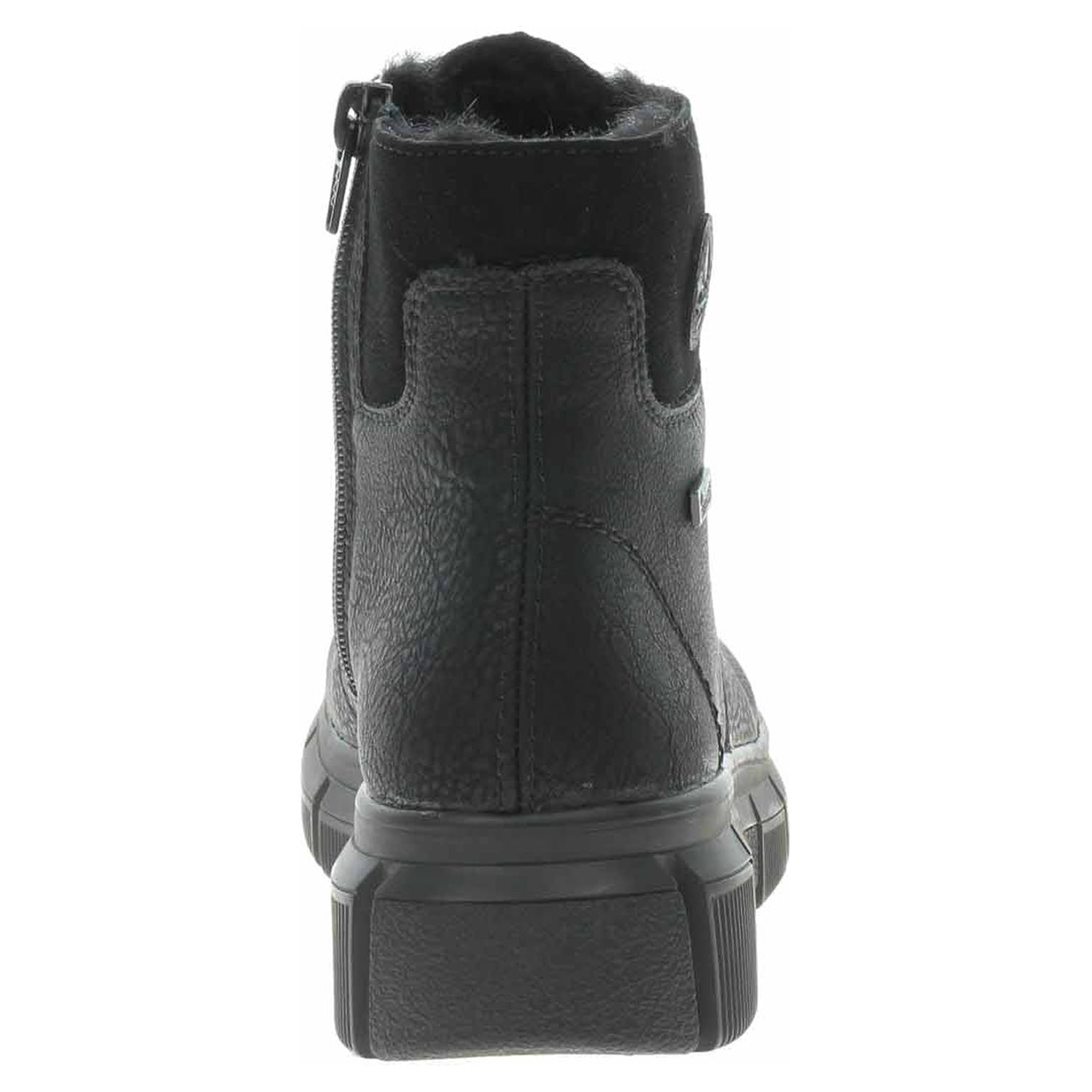 Boty Rieker - lepená dámská kotníková obuv se svrškem ze syntetiky a s textilní stélkou je vybavená vodoodpudivou membránou RiekerTex, šněrováním a zipem na vnitřní straně. Obuv je vyteplená textilní podšívkou s jemným chloupkem. Klínek je vysoký 4,5 cm a platforma je vysoká 2,5 cm. Podešev je flexibilní a díky systému Antistress skvěle tlumí nárazy a otřesy. Lepená obuv - pevnost lepeného spoje může být negativně ovlivněna promáčením nebo propocením, event. opakovaným používáním nedostatečně vysušené obuvi. Při neopatrné chůzi může dojít k mechanickému uvolnění lepeného spoje - ukopnutí.