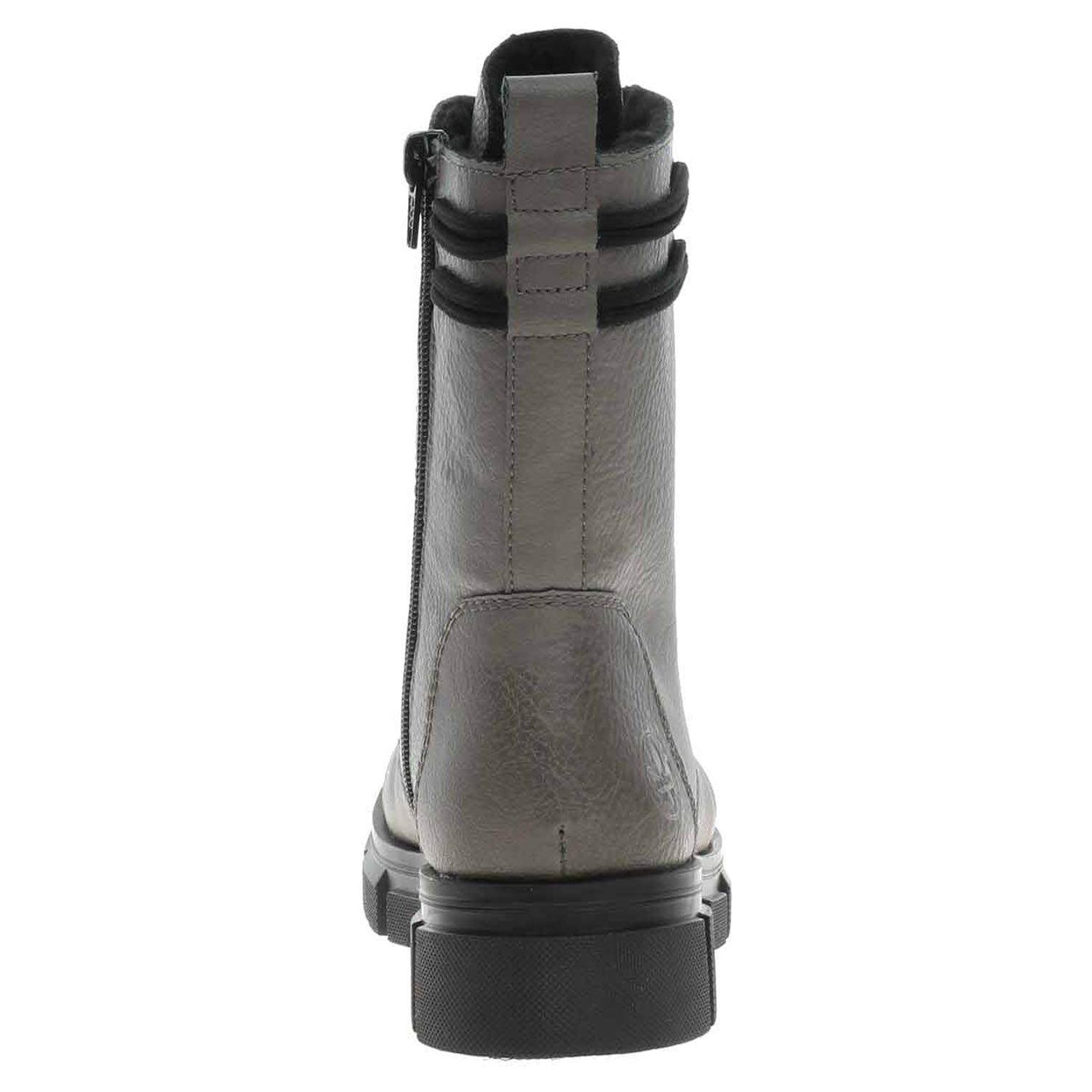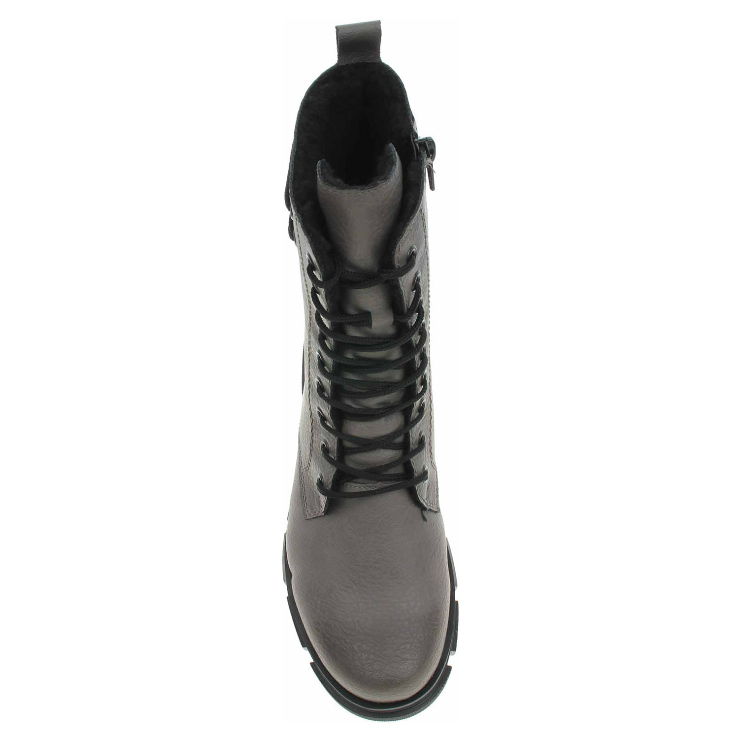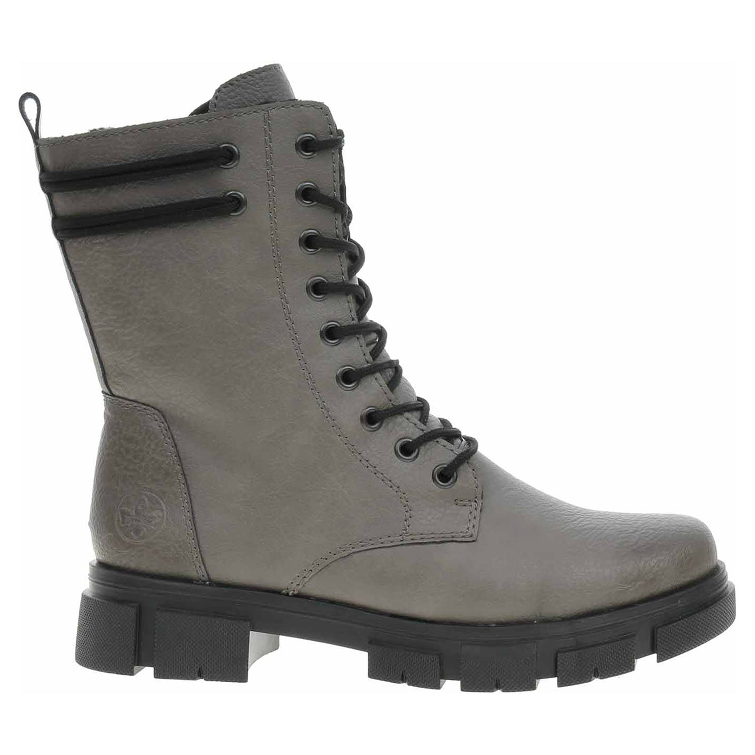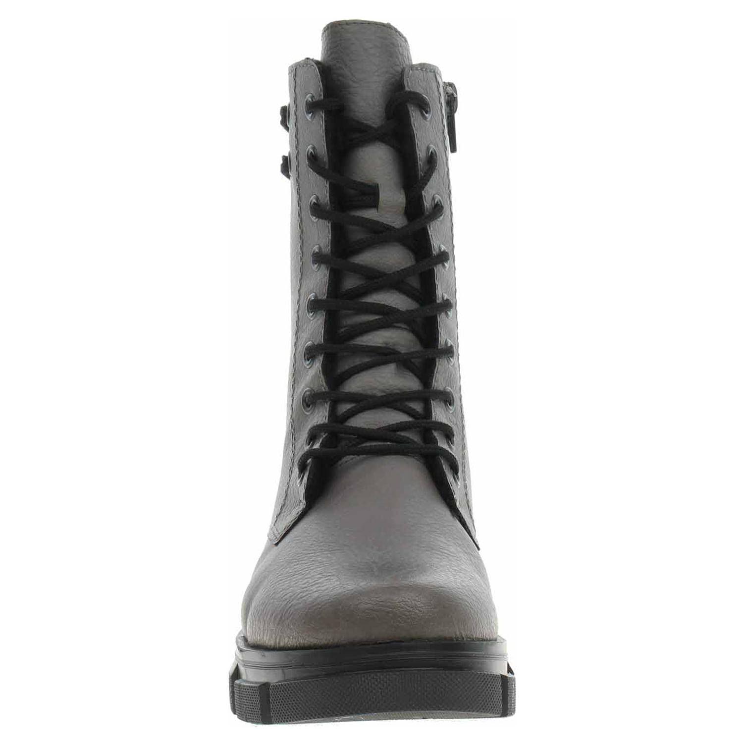 Boty Rieker - lepená dámská kotníková obuv se svrškem ze syntetiky a s textilní stélkou je vyteplená textilní podšívkou s jemným chloupkem. Pohodlné nazouvání zajišťuje šněrování a zip na vnitřní straně. Podpatek je vysoký 3,9 cm a platforma je vysoká 2,5 cm. Podešev je flexibilní a díky systému Antistress skvěle tlumí nárazy a otřesy. Lepená obuv - pevnost lepeného spoje může být negativně ovlivněna promáčením nebo propocením, event. opakovaným používáním nedostatečně vysušené obuvi. Při neopatrné chůzi může dojít k mechanickému uvolnění lepeného spoje - ukopnutí.
