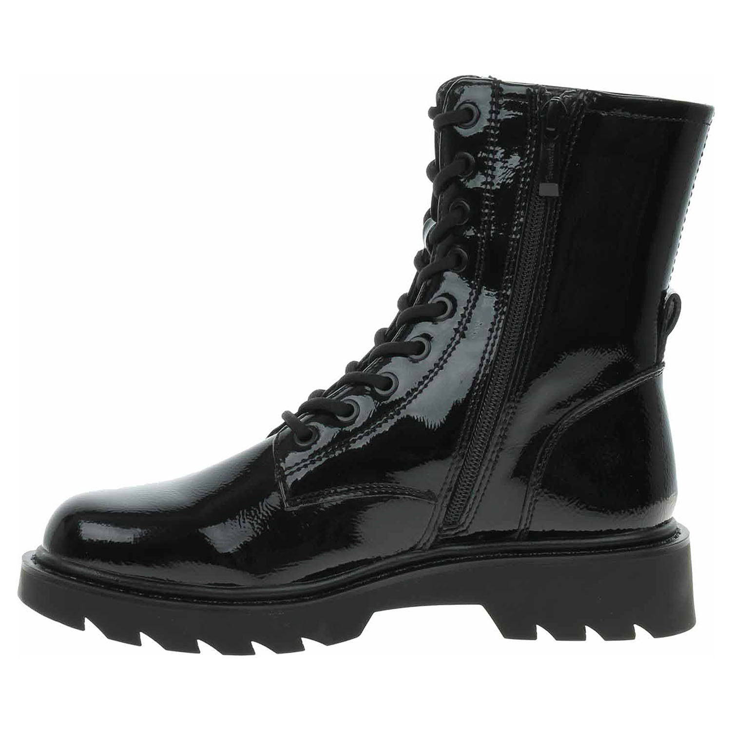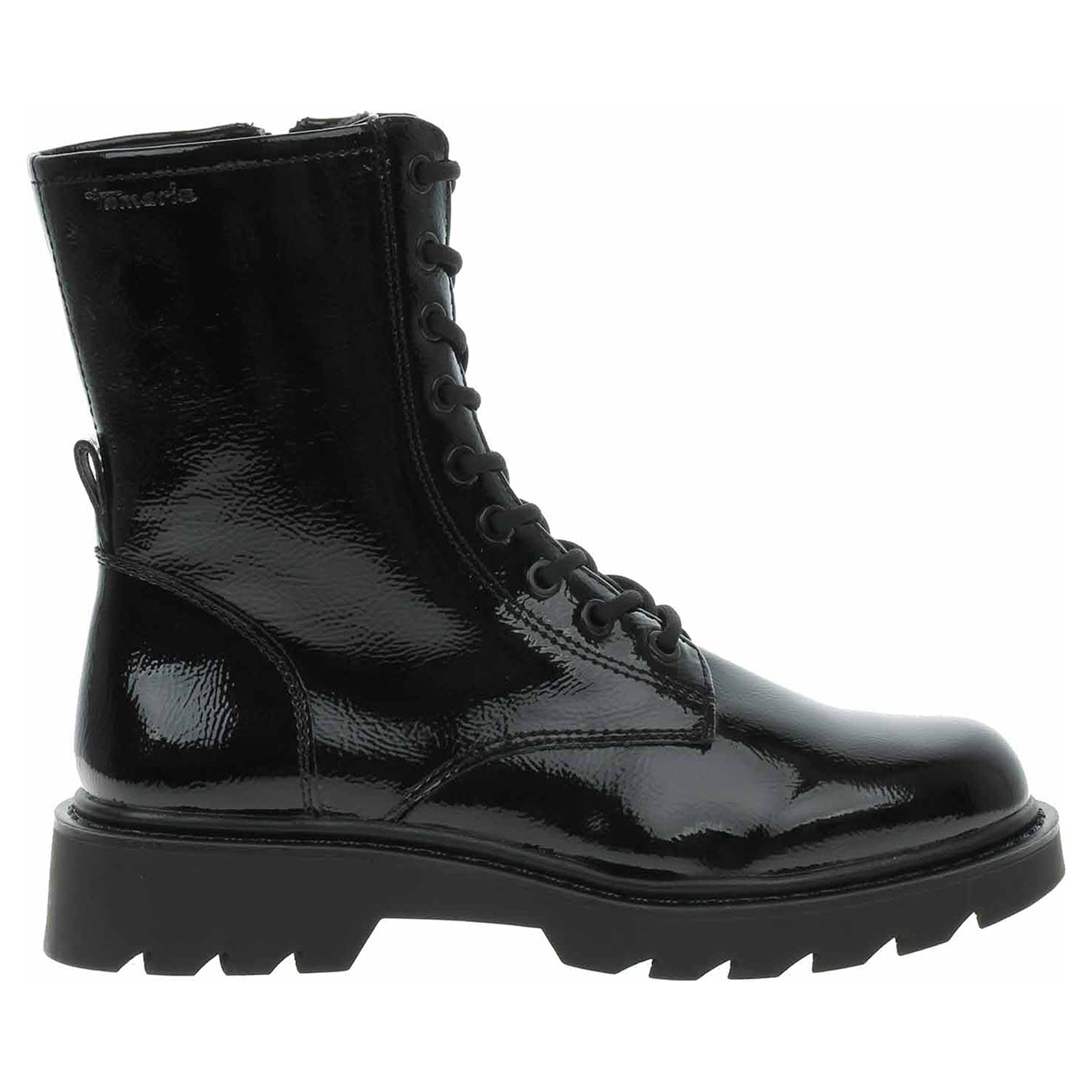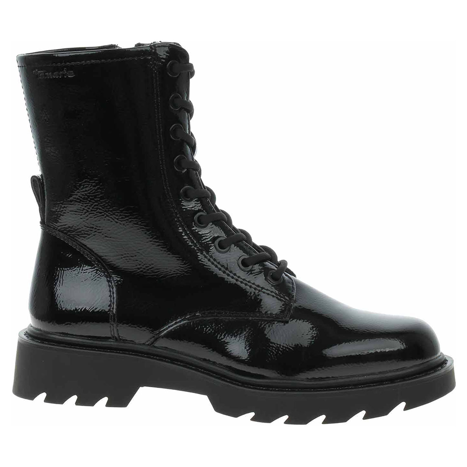 Boty Tamaris - lakovaná dámská kotníková obuv se svrškem ze syntetiky je vybavená paměťovou stélkou Touch It a je vyteplená textilní podšívkou. Pohodlné nazouvání zajišťuje plně funkční šněrování a zip na vnitřní straně. Vyměkčená stélka se přizpůsobuje vašemu chodidlu a zajišťuje při chůzi optimální komfort. Podpatek je vysoký 3,5 cm a platforma je vysoká 2 cm. Obuv je 100% VEGAN = při výrobě obuvi nebyly použity žádné materiály ze zvířat. Lakovaná obuv - hladký, lesklý povrch je docílen lakovou úpravou. Povrch je choulostivý na mechanické poškození, rozmáčení a mráz. Ošetřujte prostředky na lakové usně.