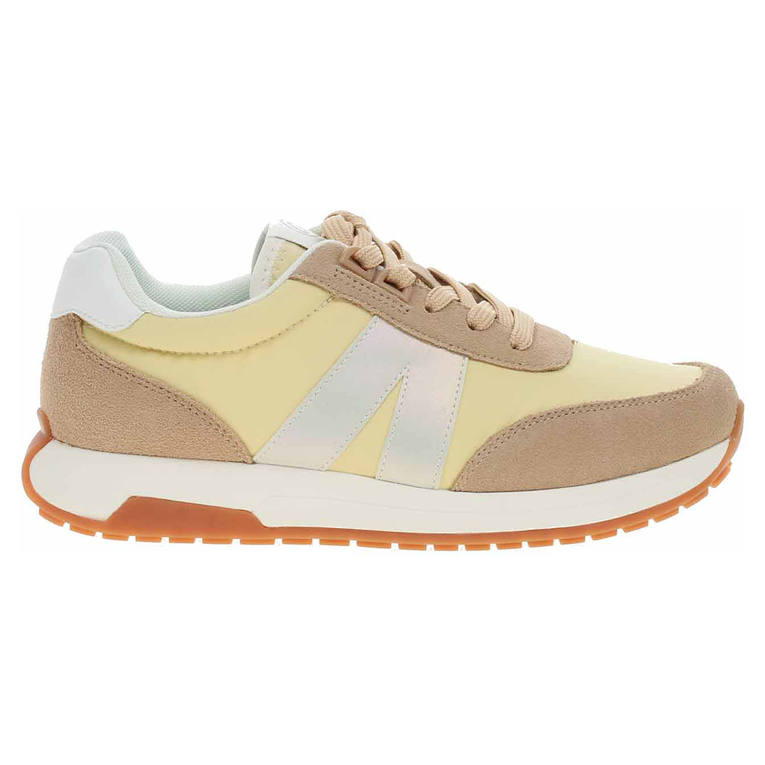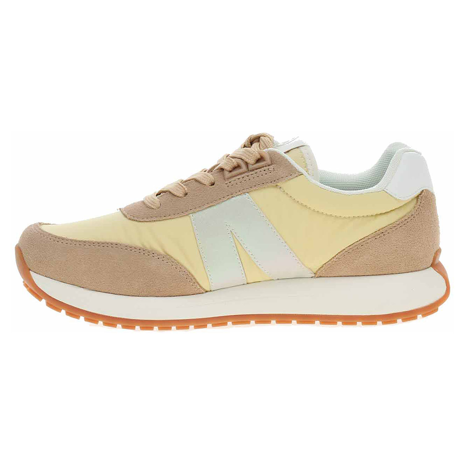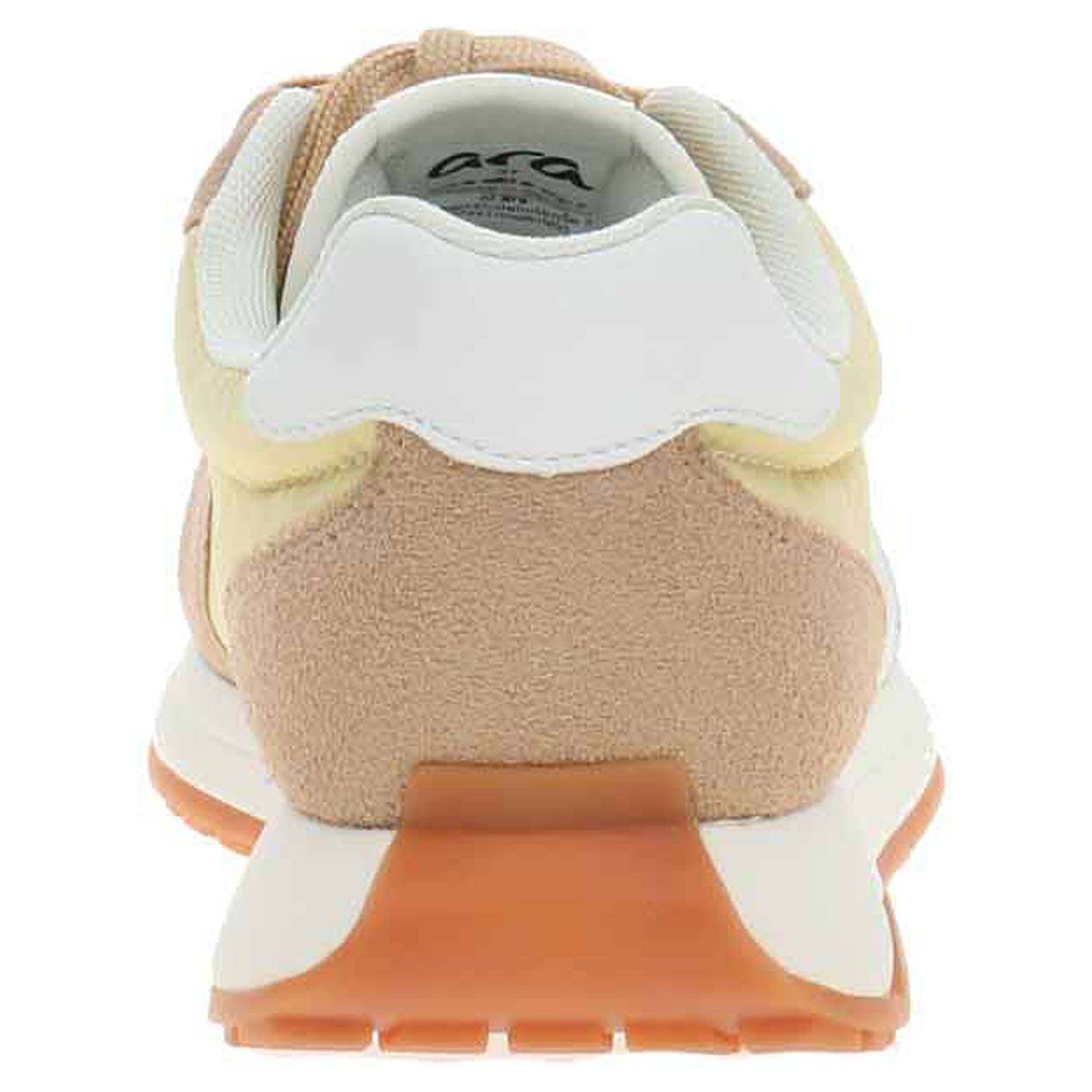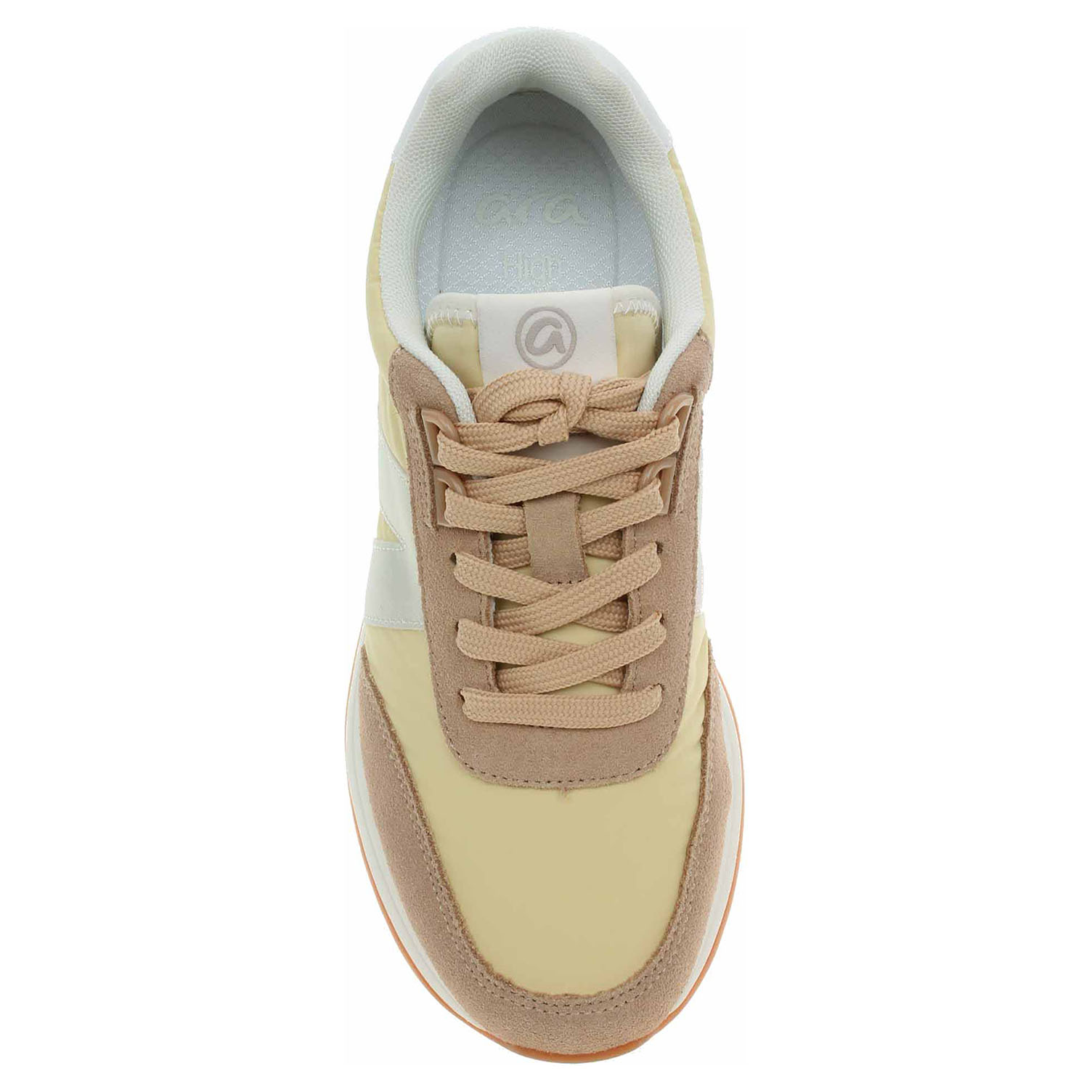 Boty Ara - lepená dámská obuv nadměrné šíře H se šněrováním má svršek kombinovaný textil/syntetický velur, textilní podšívku a je vybavená tvarovanou, vyndavací stélkou s textilní nášlapnou vrstvou. Barevná kombinace svršku: béžová - žlutá - bílá. HIGH SOFT = modelová řada, která se vyznačuje měkkým svrškem, polstrovanou stélkou a flexibilní podešví. Vyndavací stélka zajišťuje maximální komfort a pohodlnou chůzi. Anatomicky tvarované vložky do bot je možné vyndat za účelem provětrání a omytí. Značnou výhodu nabízejí vyměnitelné vložky do bot také těm uživatelům, kteří používají ortopedické vkládací stélky. Klínek je vysoký 3,- cm. Lepená obuv - pevnost lepeného spoje může být negativně ovlivněna promáčením nebo propocením, event. opakovaným používáním nedostatečně vysušené obuvi. Při neopatrné chůzi může dojít k mechanickému uvolnění lepeného spoje - ukopnutí.