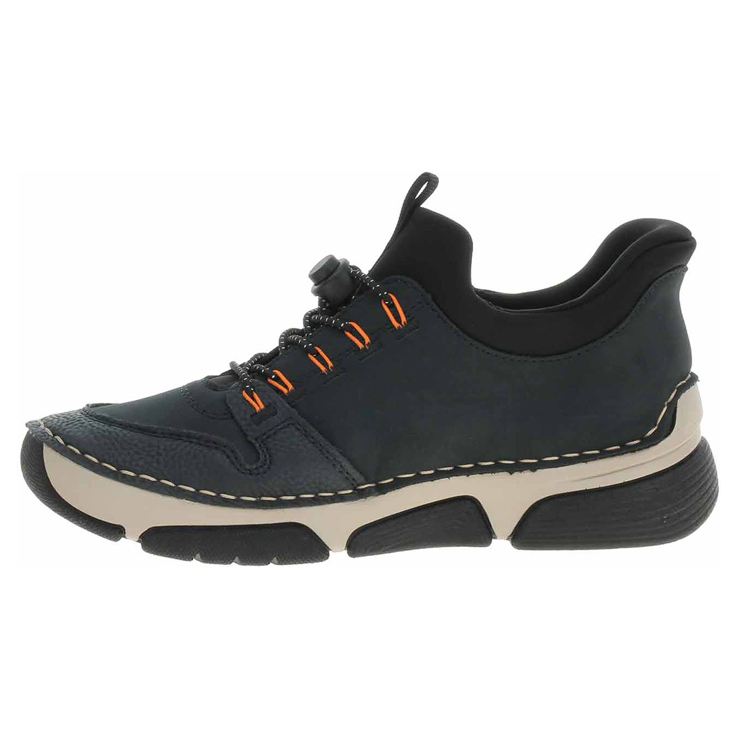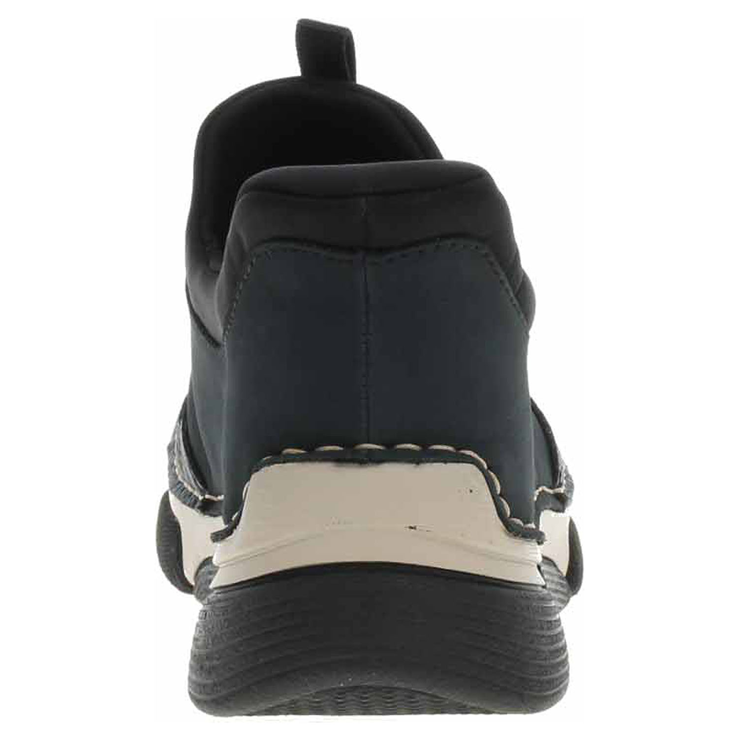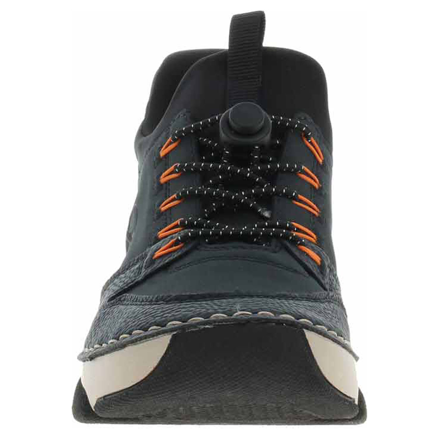 Boty Rieker - flexiblová dámská vycházková obuv se svrškem kombinovaným syntetika/textil a s textilní podšívkou je vybavená stélkou MemoSoft s nášlapnou vrstvou z usně. Pohodlné nazutí i vyzutí obuvi bez použití rukou zajišťuje systém Ready2GO = polstrovaný patní panel a textilní ponožkový nástup do obuvi. Šněrováním je provlečená elastická gumička s brzdičkou. Klínek je vysoký 3,5 cm. Podešev je flexibilní a díky systému Antistress (lehkost, pružnost, prostornost a vynikající absorpce nárazů) Vám obuv zajistí pohodlí při každém kroku. Flexiblová obuv - prošívaná podešev, obuv používejte v suchém prostředí. Při zvýšené vlhkosti může dojít k promáčení obuvi. Obuv pravidelně impregnujte nebo krémujte, zvláště pak prošívaný okraj.