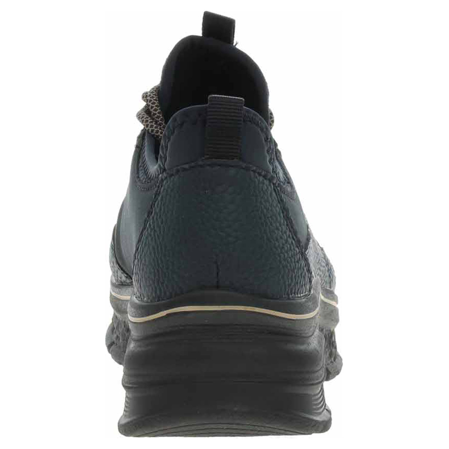 Popis:Boty Rieker - lepená dámská vycházková obuv se svrškem kombinovaným syntetika/textil a s textilní podšívkou je vybavená ultralehkou podešví Rieker-Lite a paměťovou stélkou MemoSoft, která maximálně změkčuje došlap a zvyšuje pohodlí v obuvi. Pohodlné nazouvání zajišťuje textilní ponožkový nástup do obuvi. Klínek je vysoký 4,- cm a platrforma je vysoká 2,5 cm. Lepená obuv - pevnost lepeného spoje může být negativně ovlivněna promáčením nebo propocením, event. opakovaným používáním nedostatečně vysušené obuvi. Při neopatrné chůzi může dojít k mechanickému uvolnění lepeného spoje - ukopnutí.