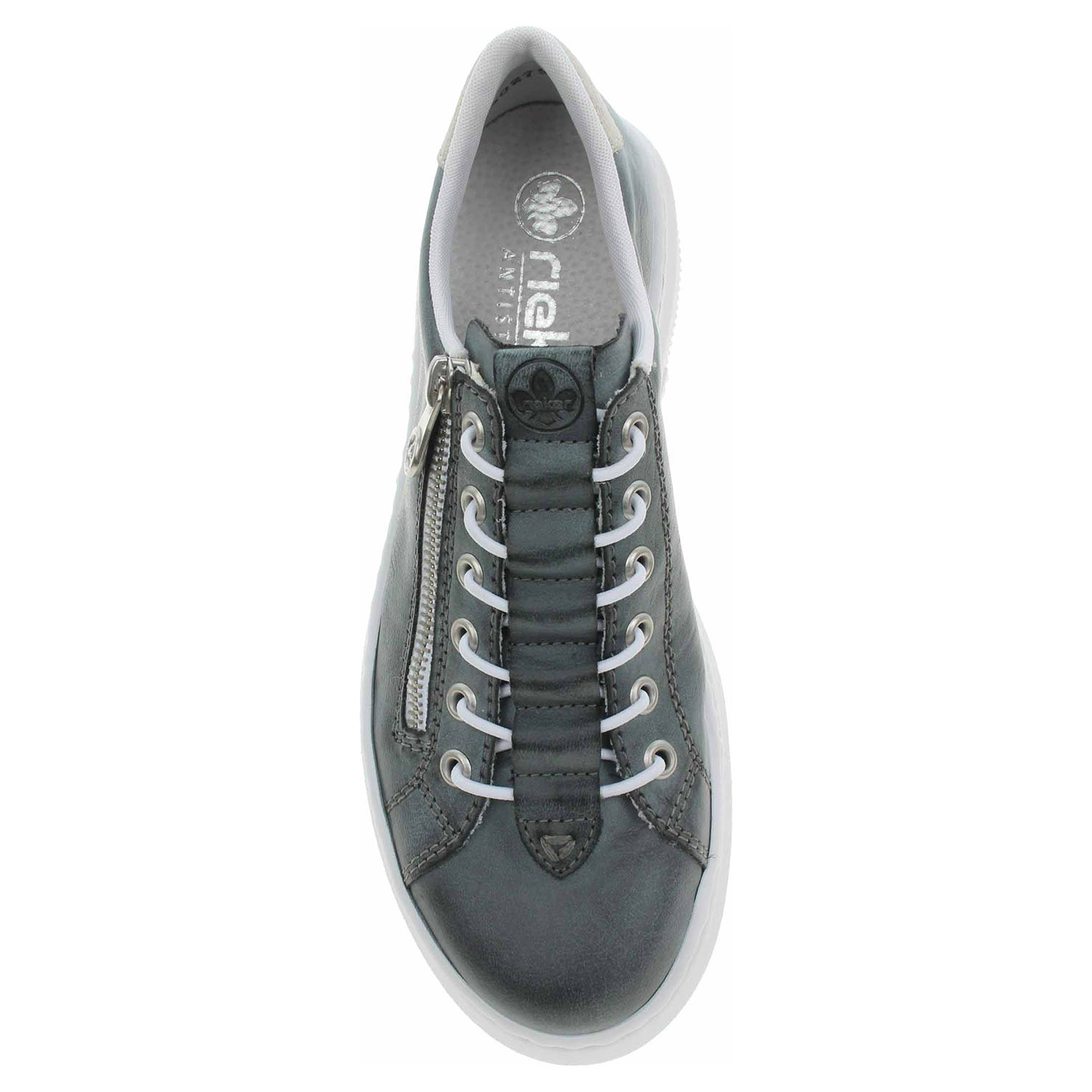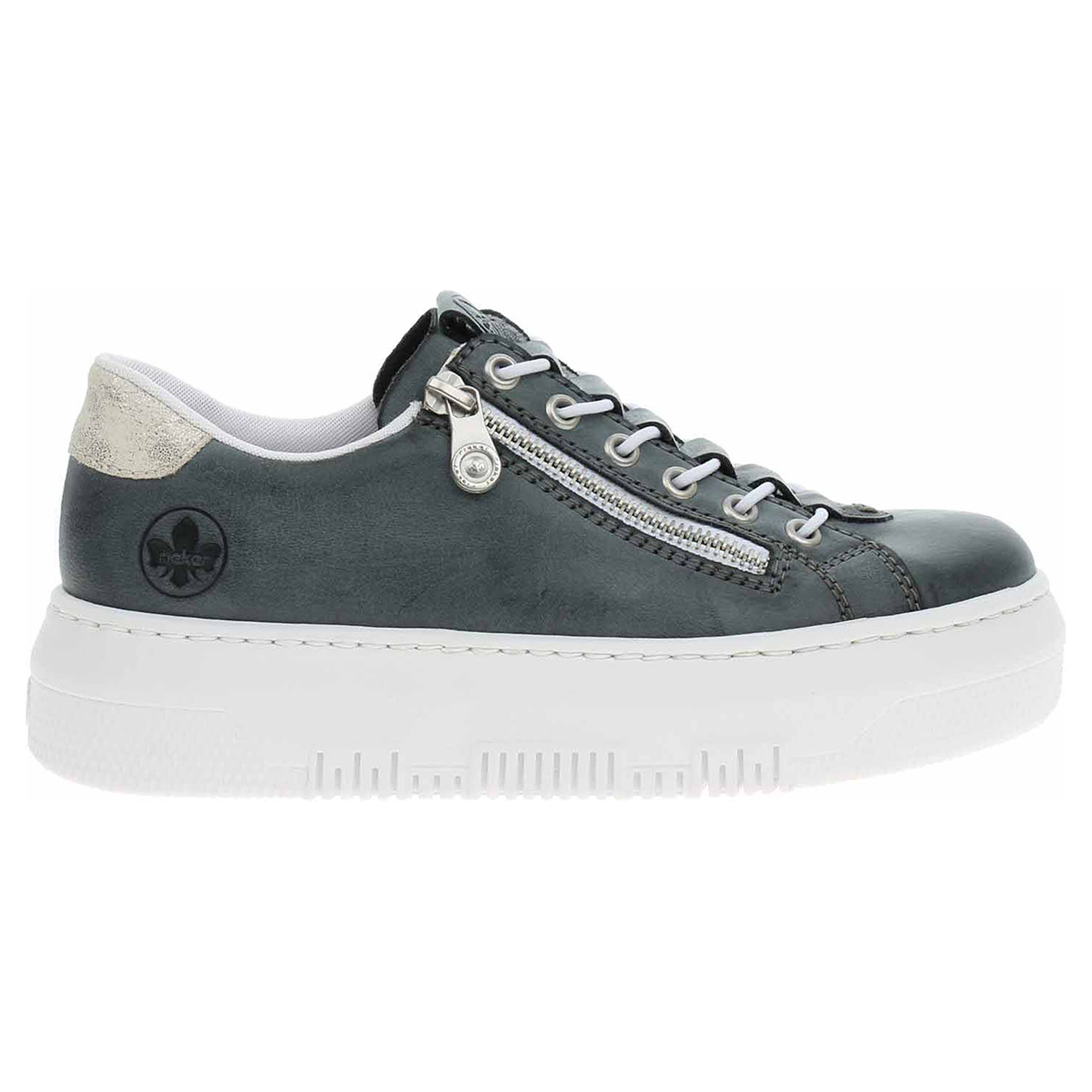 Boty Rieker - flexiblová dámská obuv se svrškem ze syntetiky a s textilní podšívkou je vybavená vyměkčenou stélkou s nášlapnou vrstvou z usně. Pohodlné nazouvání zajišťuje zip na vnější straně a nekonečná gumička provlečená šněrováním. Ultra lehká podešev Rieker Light má klínek vysoký 4,5 cm a platforma je vysoká 4,- cm. Podešev je flexibilní a díky systému Antistress skvěle tlumí nárazy a otřesy. Flexiblová obuv - prošívaná podešev, obuv používejte v suchém prostředí. Při zvýšené vlhkosti může dojít k promáčení obuvi. Obuv pravidelně impregnujte nebo krémujte, zvláště pak prošívaný okraj.
