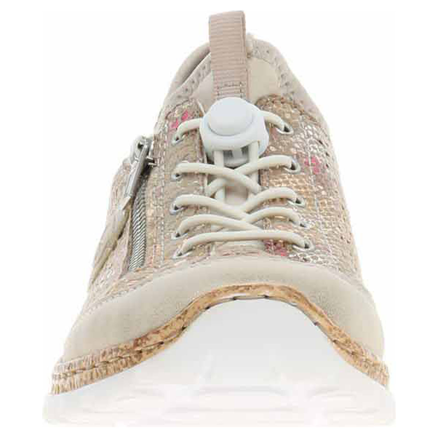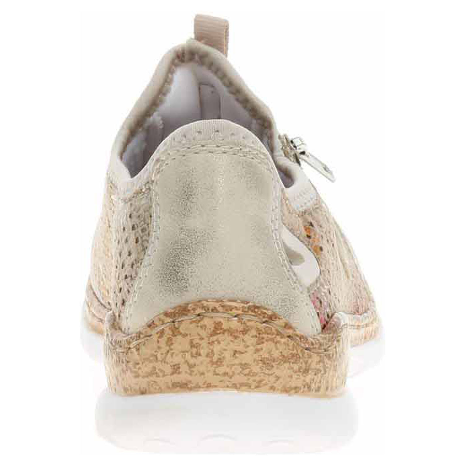 Boty Rieker - flexiblová dámská nazouvací obuv se svrškem kombinovaným syntetika/textil a s textilní podšívkou je vybavená paměťovou stélkou MemoSoft s textilní nášlapnou vrstvou, která maximálně změkčuje došlap a zvyšuje pohodlí v obuvi. Pohodlné nazouvání zajišťuje textilní ponožkový nástup do obuvi. Elastické šněrování s brzdičkou zajišťuje stabilitu nohy v obuvi. Zip na vnější straně nártu má pouze ozdobnou funkci. Klínek je vysoký 3,7 cm. Podešev je flexibilní a díky systému Antistress skvěle tlumí nárazy a otřesy. Flexiblová obuv - prošívaná podešev, obuv používejte v suchém prostředí. Při zvýšené vlhkosti může dojít k promáčení obuvi. Obuv pravidelně impregnujte nebo krémujte, zvláště pak prošívaný okraj.