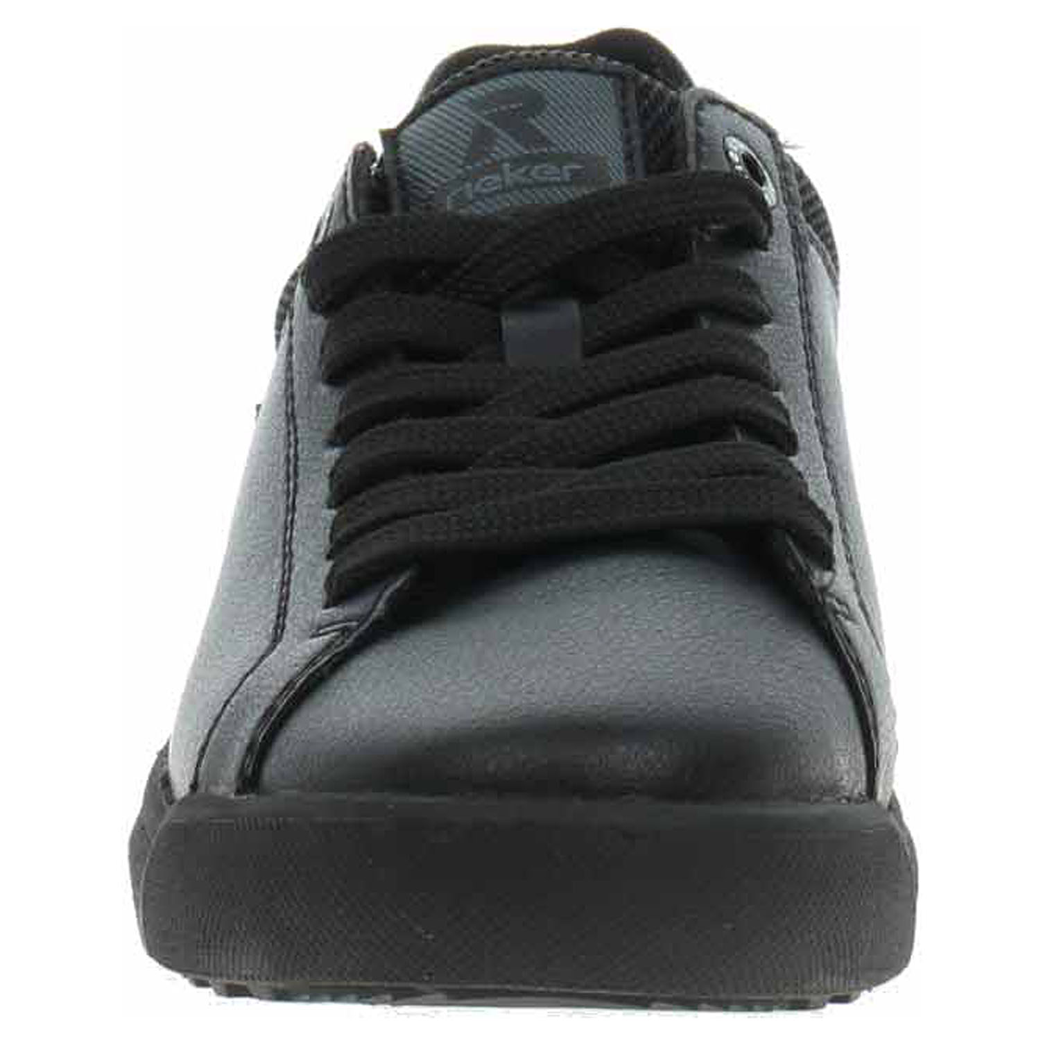 Boty Rieker - lepená dámská obuv řady Revolution se šněrováním má svršek z povrstvené usně s lemem z textilie pod kotníky, textilní podšívku a je vybavená vyndavací stélkou s textilní nášlapnou vrstvou. Swing2GO – extra měkká stélka ve tvaru oblouku, která podporuje přirozený tvar chodidla a nabízí efektivní tlumení nárazů. Stélku můžete vyjmout, vyměnit nebo vyvětrat. Rieker R-EVOLUTION je nová řada moderní sportovní obuvi s obrovským důrazem na použité technologie a na komforní pohodlí i při celodenním nošení. Ultralehká podešev s latexovým nášlapem má klínek vysoký 2,8 cm. Lepená obuv - pevnost lepeného spoje může být negativně ovlivněna promáčením nebo propocením, event. opakovaným používáním nedostatečně vysušené obuvi. Při neopatrné chůzi může dojít k mechanickému uvolnění lepeného spoje - ukopnutí.
