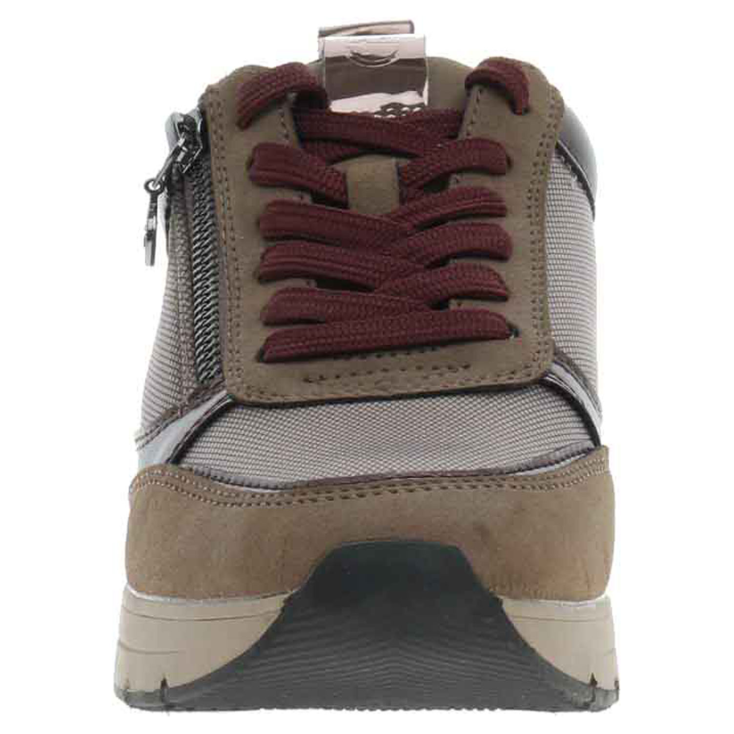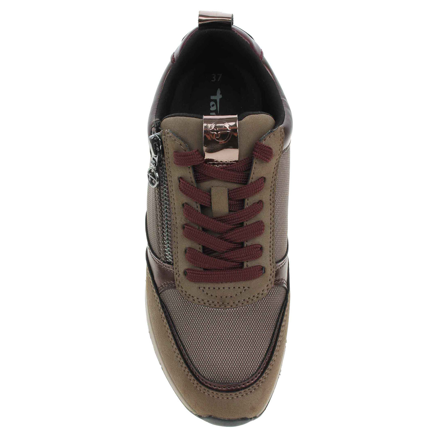 Boty Tamaris - lepená dámská vycházková obuv se svrškem kombinovaným syntetika/textil a s textilní podšívkou je vybavená vyndavací, vyměkčenou stélkou Touch It s textilní nášlapnou vrstvou. Vyměnitelné vložky do bot je možné vyndat za účelem provětrání a omytí. Značnou výhodu nabízejí vyměnitelné vložky do bot také těm uživatelům, kteří používají ortopedické vkládací stélky. Pohodlné nazouvání zajišťuje šněrování a zip na vnější straně. Obuv je 100% VEGAN = při výrobě obuvi nebyly použity žádné materiály ze zvířat. Klínek je vysoký 3,5 cm. Lepená obuv - pevnost lepeného spoje může být negativně ovlivněna promáčením nebo propocením, event. opakovaným používáním nedostatečně vysušené obuvi. Při neopatrné chůzi může dojít k mechanickému uvolnění lepeného spoje - ukopnutí.
