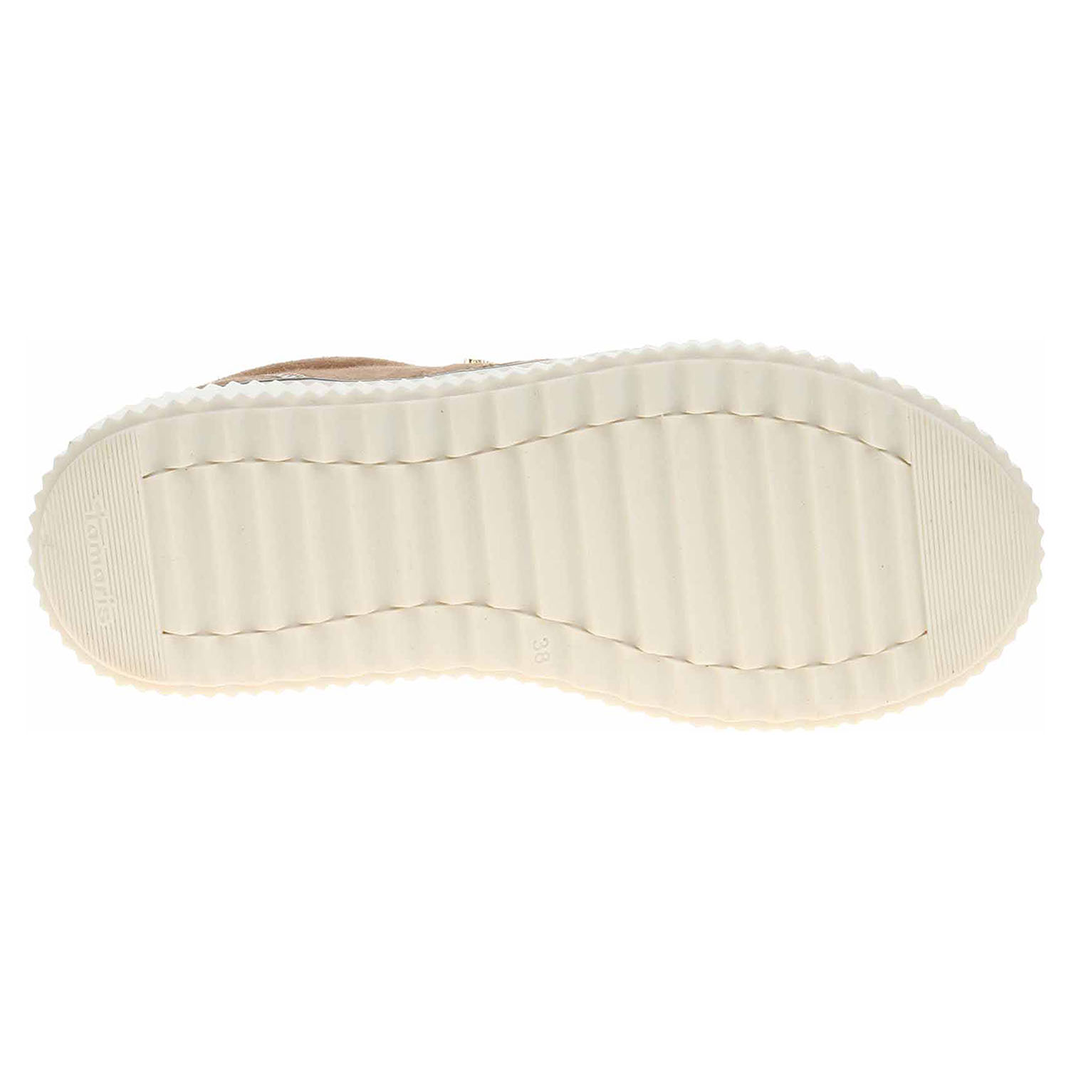 Boty Tamaris - lepená dámská vycházková obuv se svrškem kombinovaným useň (semiš) / syntetika a s textilní podšívkou i stélkou. Pohodlné nazouvání zajišťuje šněrování na nártu. Klínek je vysoký 5,5 cm a platforma je vysoká 3,- cm. Díky nízkému střihu a cool umělé kožešině zvládneš bez obav podzimní procházky i letní dovolenou. Robustní strukturovaná podrážka ti dodá sebevědomí a originalitu, ať už jdeš kamkoli. Patříš do komunity, která ví, že pohodlí a styl patří k sobě. Lepená obuv - pevnost lepeného spoje může být negativně ovlivněna promáčením nebo propocením, event. opakovaným používáním nedostatečně vysušené obuvi. Při neopatrné chůzi může dojít k mechanickému uvolnění lepeného spoje - ukopnutí.