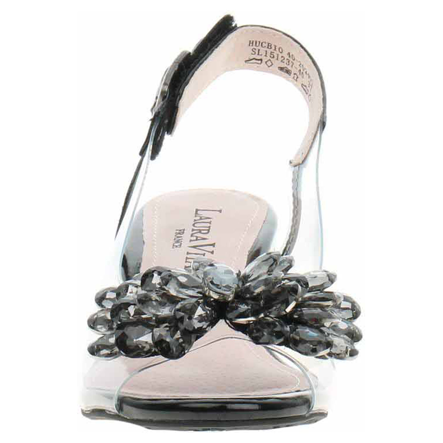 Laura Vita Hucbio 40 - společenská dámská obuv s transparentním svrškem ze syntetiky (80% PVC + 20% polyuretan)) a se stélkou s nášlapnou vrstvou z usně má podpatek vysoký 5,- cm. Pásek přes patu se zapíná na přezku. Společenská obuv - vhodná ke krátkodobému nošení v interiérech. Obuv nevystavujte vlhkosti.