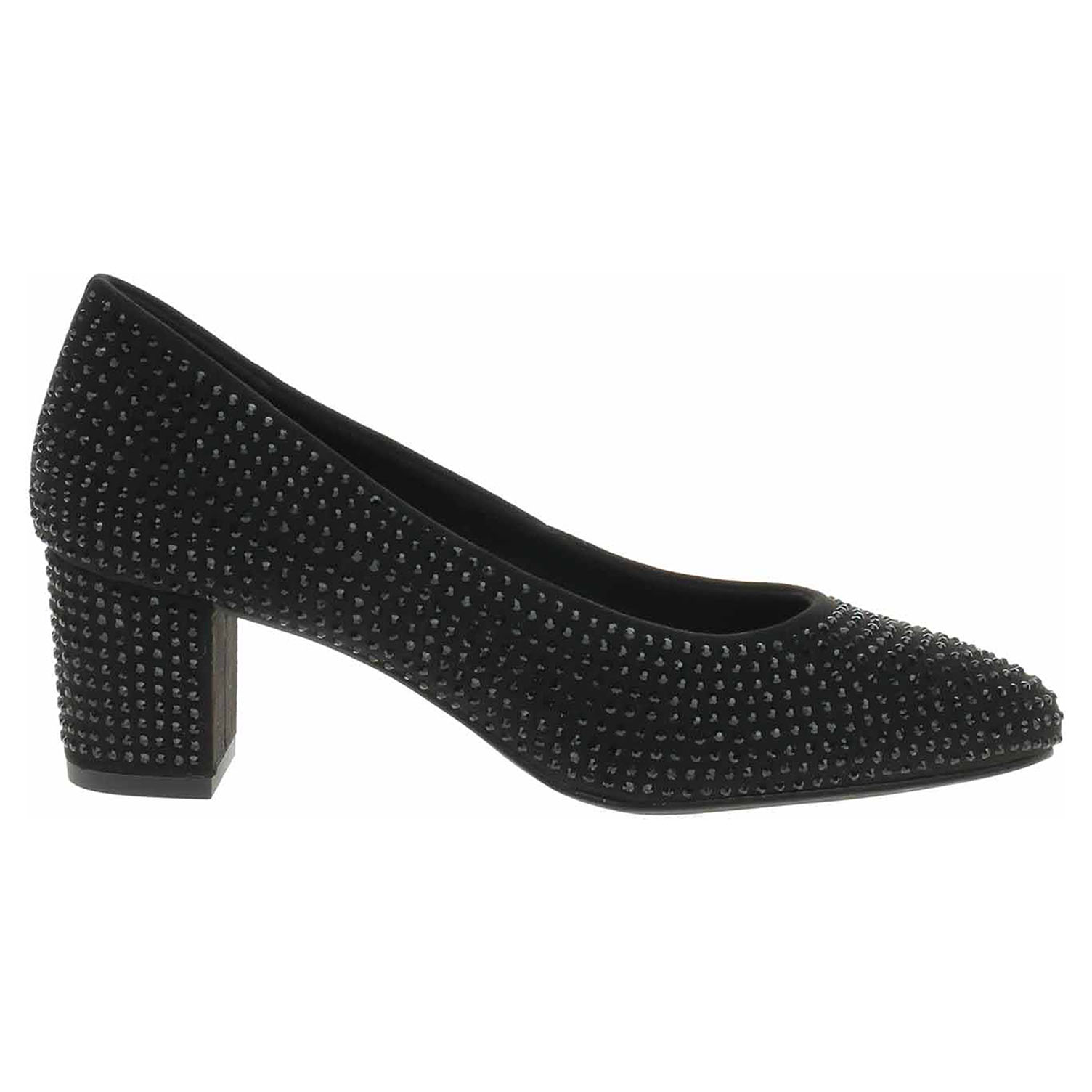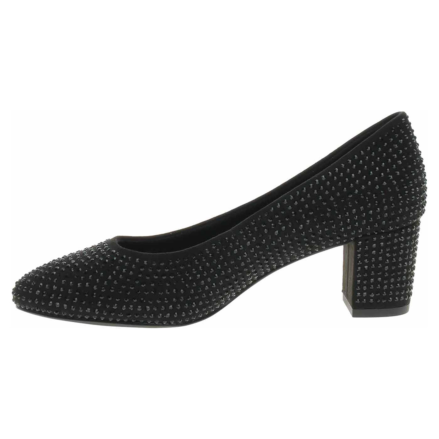 Boty Marco Tozzi - společenské dámské lodičky s textilním svrškem ozdobeným kamínky a s textilní podšívkou jsou vybavené vyměkčenou stélkou Feel me ze syntetiky, která se přizpůsobuje vašemu chodidlu a zajišťuje optimální komfort při chůzi. Podpatek je vysoký 5,5 cm. Obuv je 100% VEGAN = při výrobě obuvi nebyly použity žádné materiály ze zvířat. Společenská obuv - vhodná ke krátkodobému nošení v interiérech. Obuv nevystavujte vlhkosti.