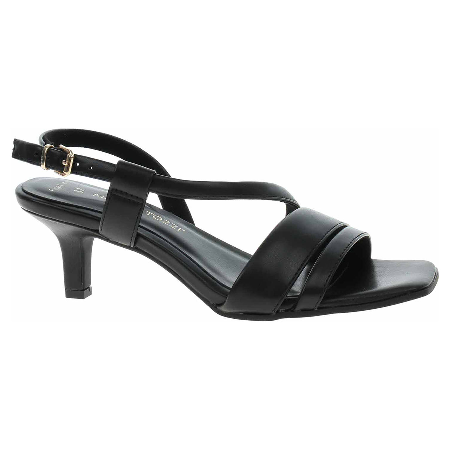 Boty Marco Tozzi - společenská dámská obuv se svrškem i stélkou ze syntetiky má podpatek vysoký 6,5 cm. Vyměkčená stélka Feel me se přizpůsobuje vašemu chodidlu a zajišťuje optimální komfort při chůzi. Pásek přes patu se zapíná na přezku. Společenská obuv - vhodná ke krátkodobému nošení v interiérech. Obuv nevystavujte vlhkosti.