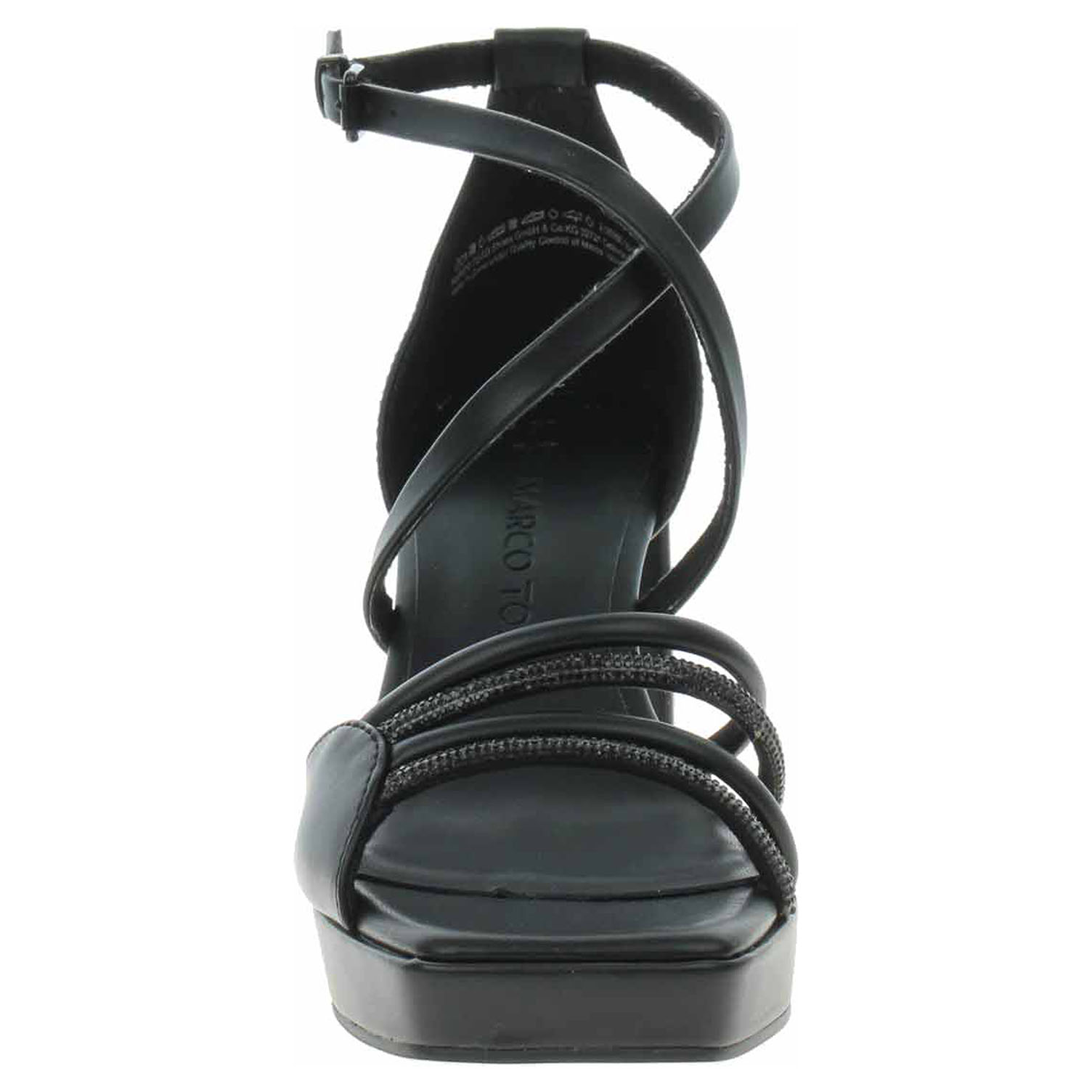 Boty Marco Tozzi - společenská dámská obuv se svrškem ze syntetiky, s textilní podšívkou a se stélkou s nášlapnou vrstvou ze syntetiky má podpatek vysoký 8,5 cm. Vyměkčená stélka Feel me se přizpůsobuje vašemu chodidlu a zajišťuje optimální komfort při chůzi. Pásek přes kotník se zapíná na přezku. Společenská obuv - vhodná ke krátkodobému nošení v interiérech. Obuv nevystavujte vlhkosti.