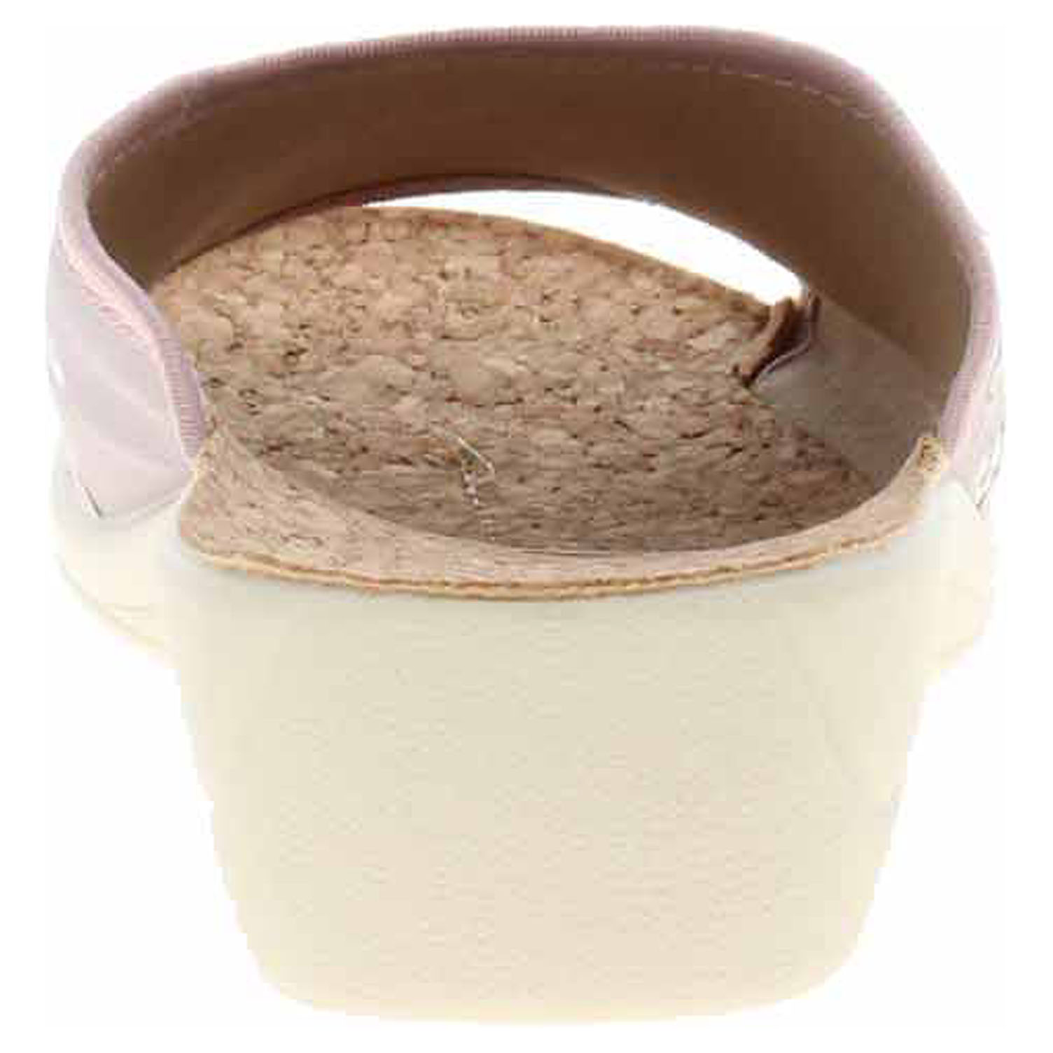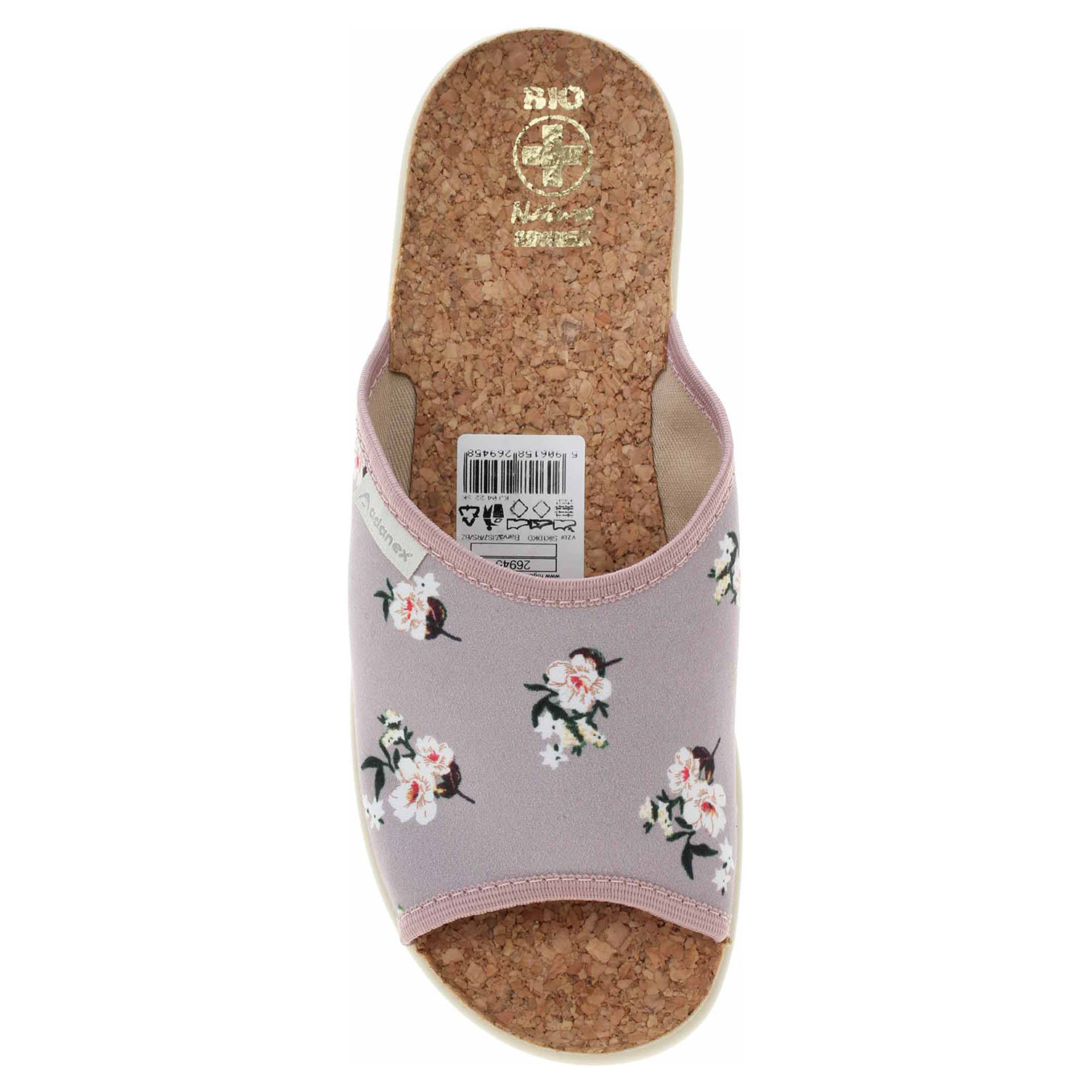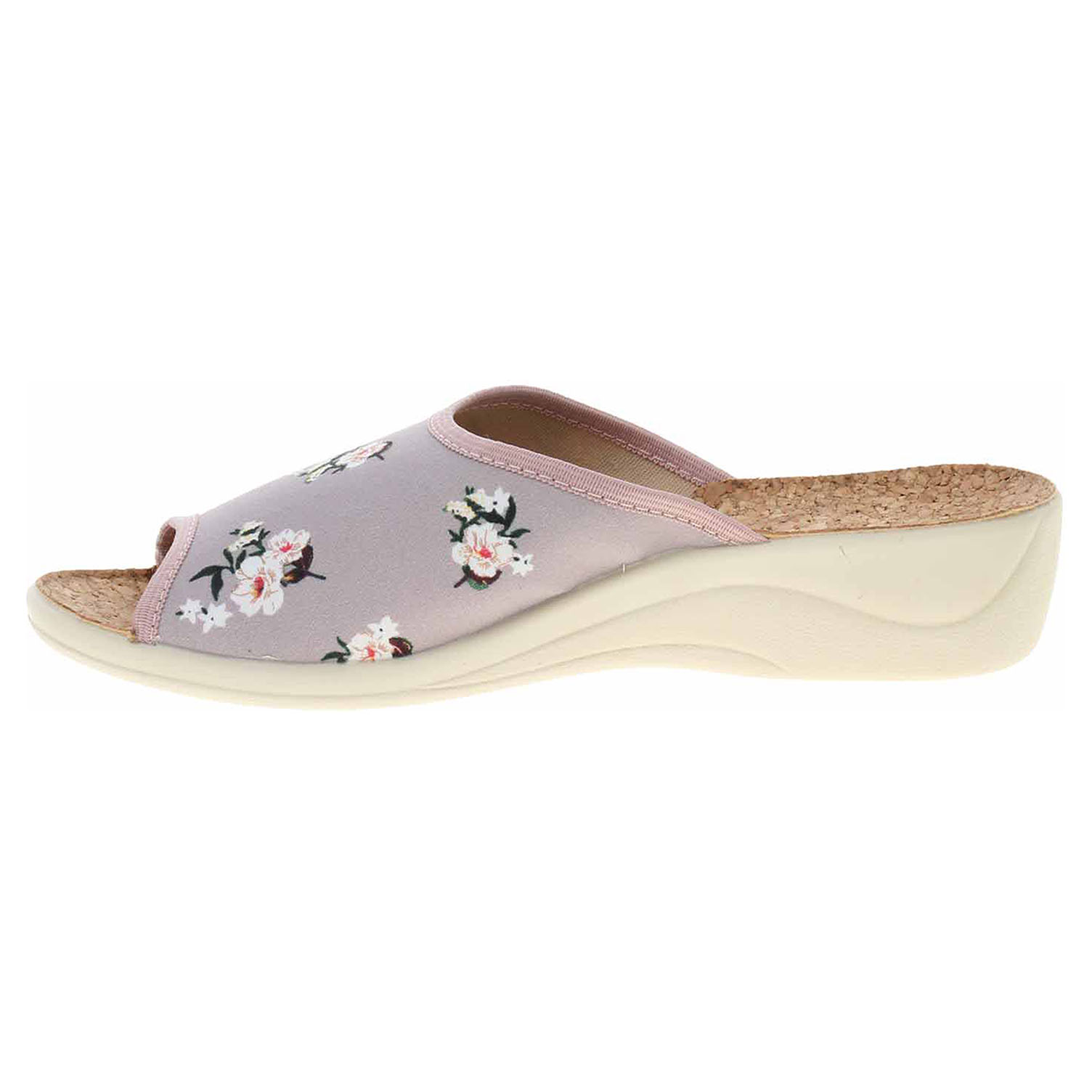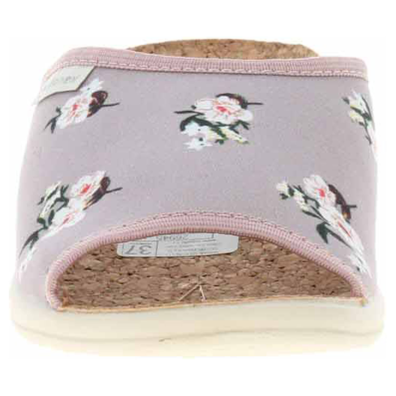 Boty Rogallo - dámské domácí pantofle s otevřenou špičkou. Svršek a podšívka jsou textilní, stélka je korková. Klínek je vysoký 3,5 cm.
