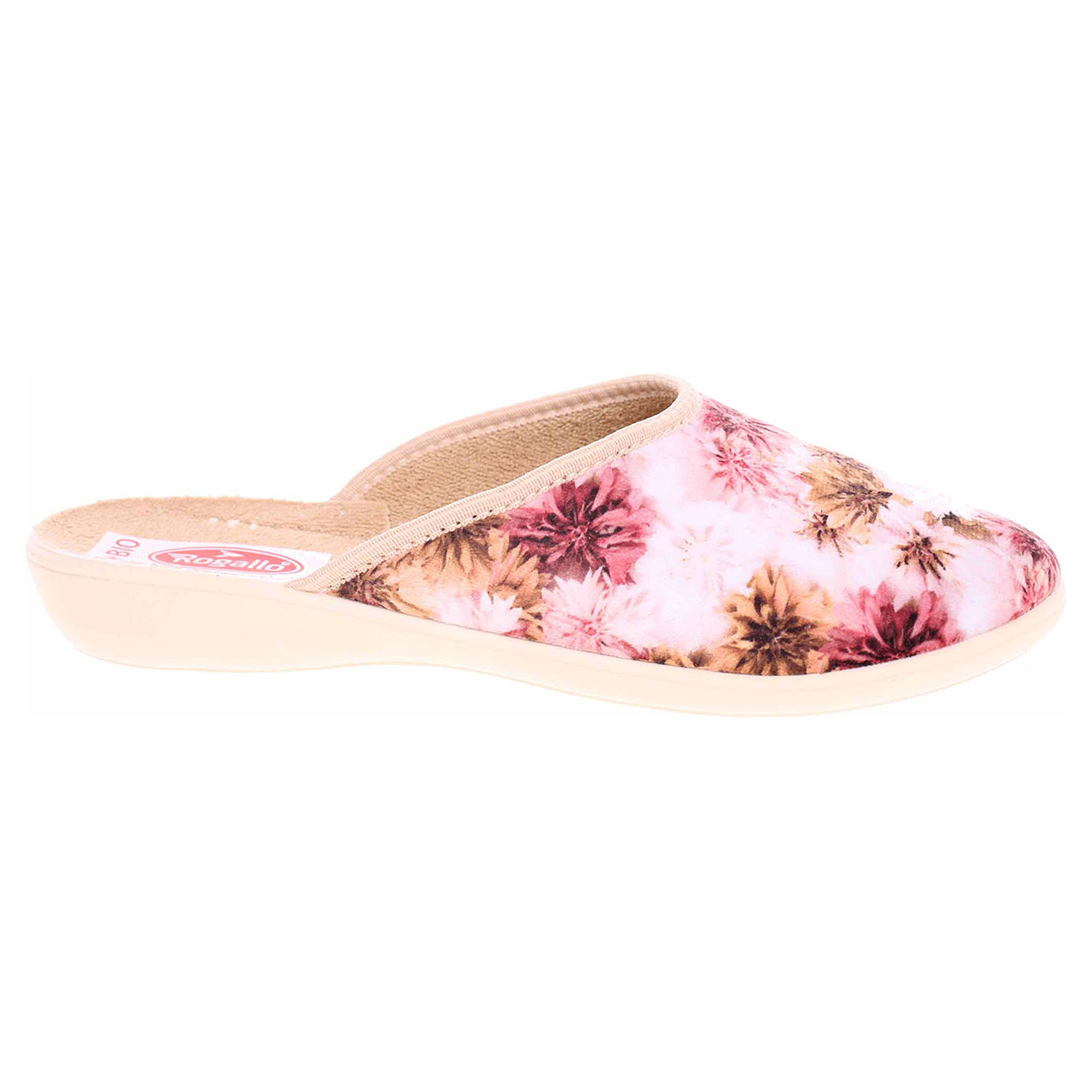 Popis:Boty Rogallo - dámské domácí pantofle s plnou špičkou na klínku vysokém 2,- cm. Svršek i stélka jsou textilní.