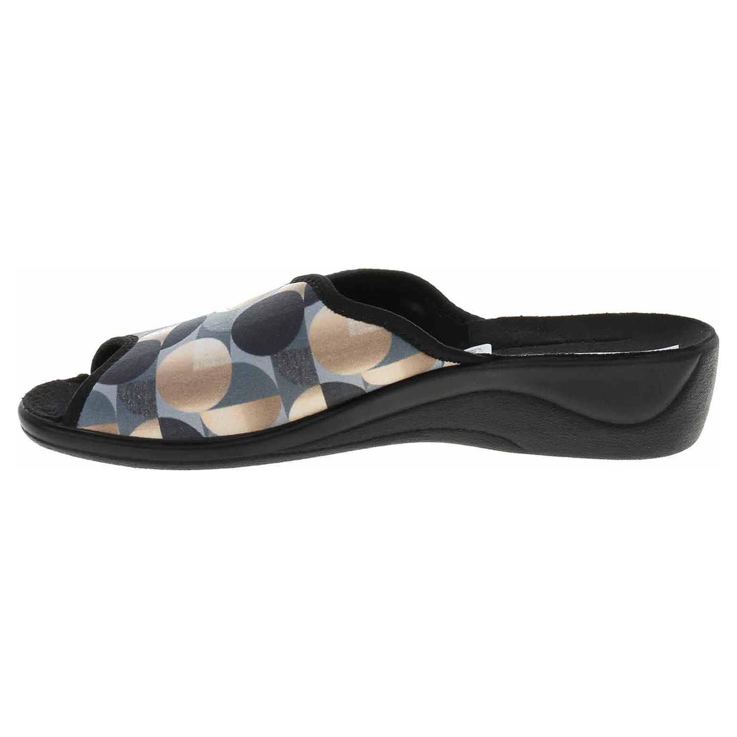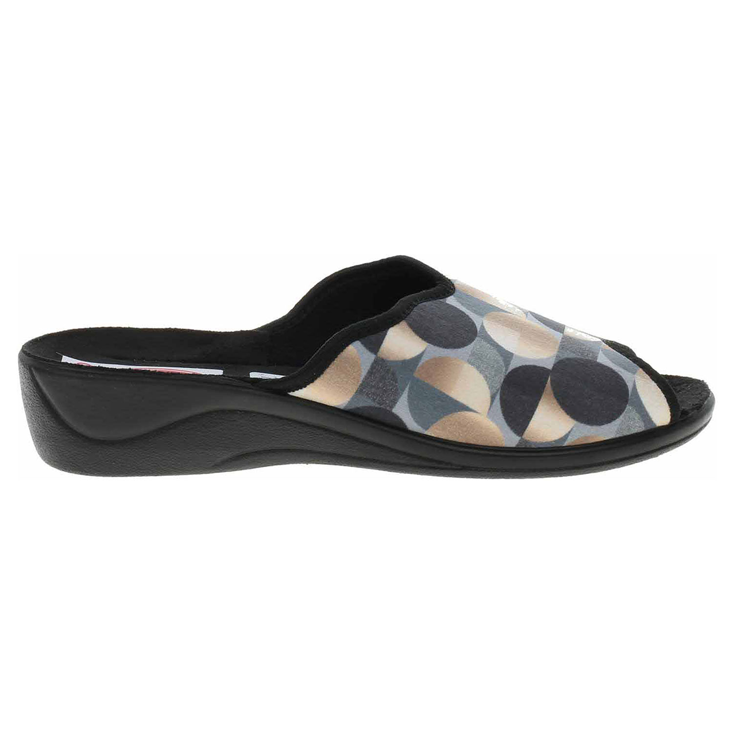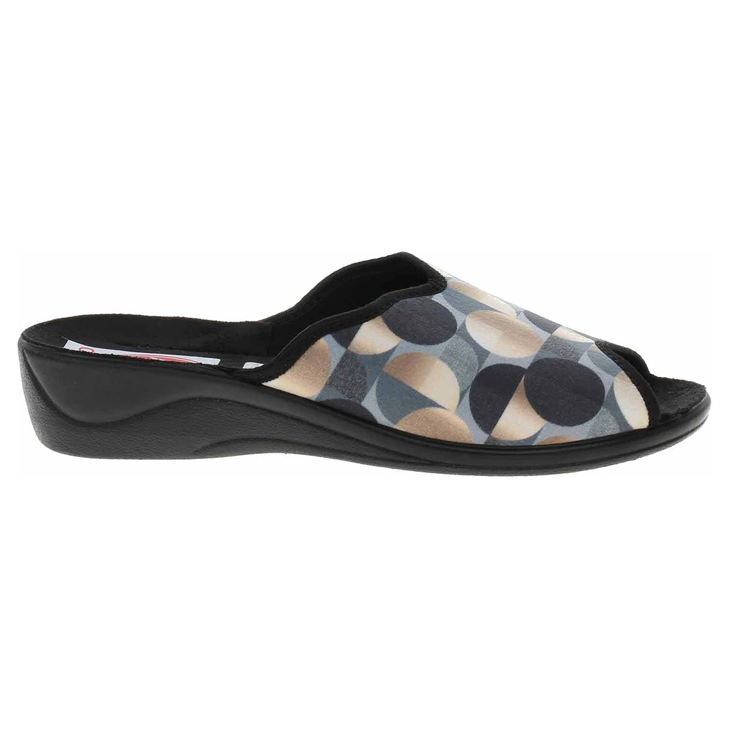 Boty Rogallo - dámské domácí pantofle s volnou špičkou na klínku vysokém 3,5 cm. Svršek, podšívka i stélka jsou textilní.