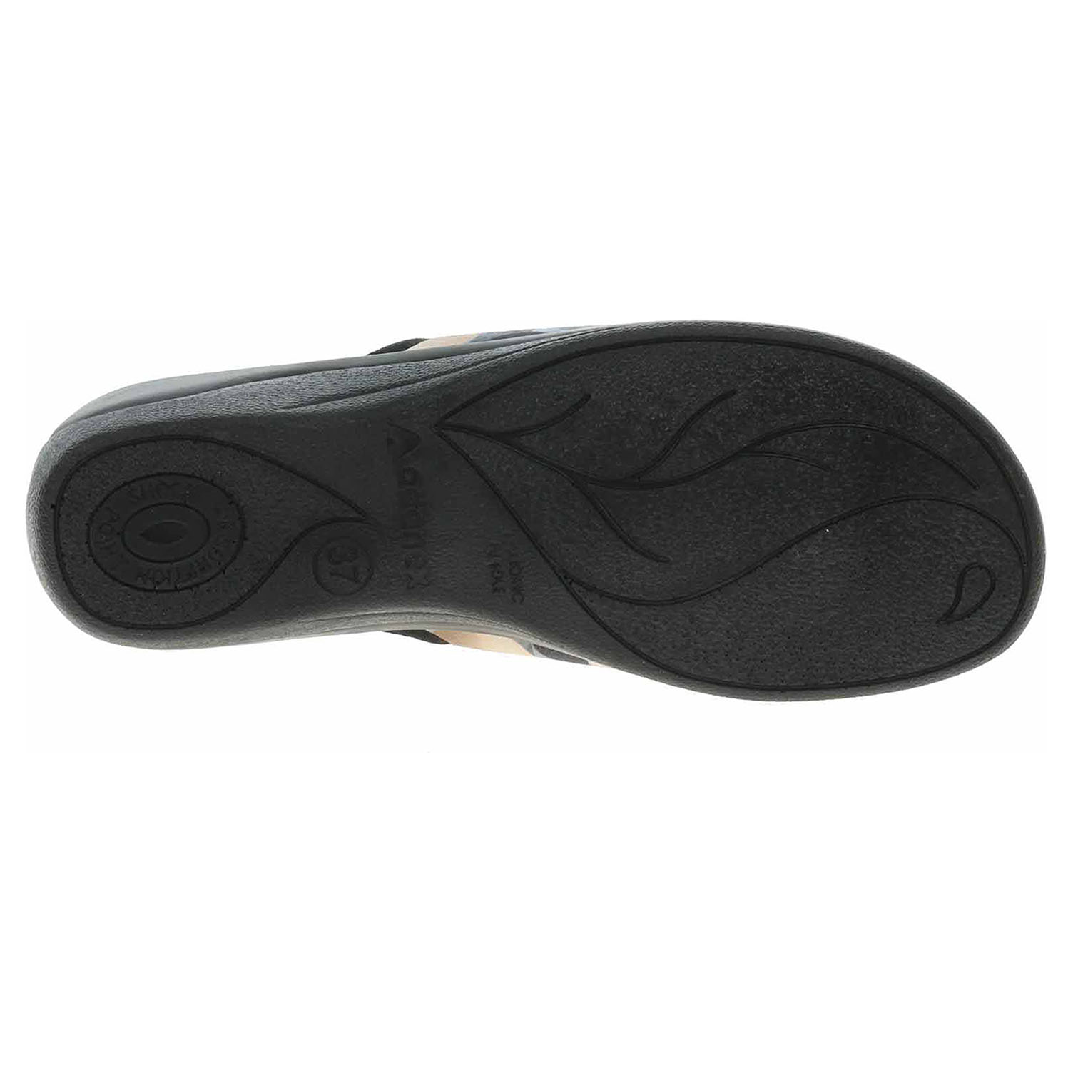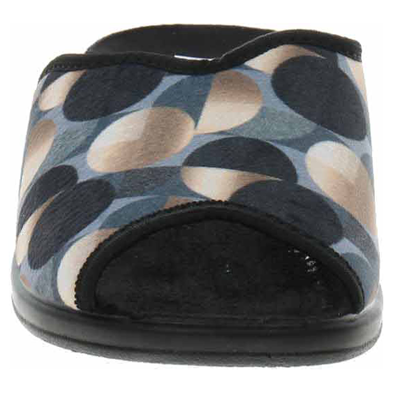 Popis:Boty Rogallo - dámské domácí pantofle s volnou špičkou na klínku vysokém 3,5 cm. Svršek, podšívka i stélka jsou textilní.
