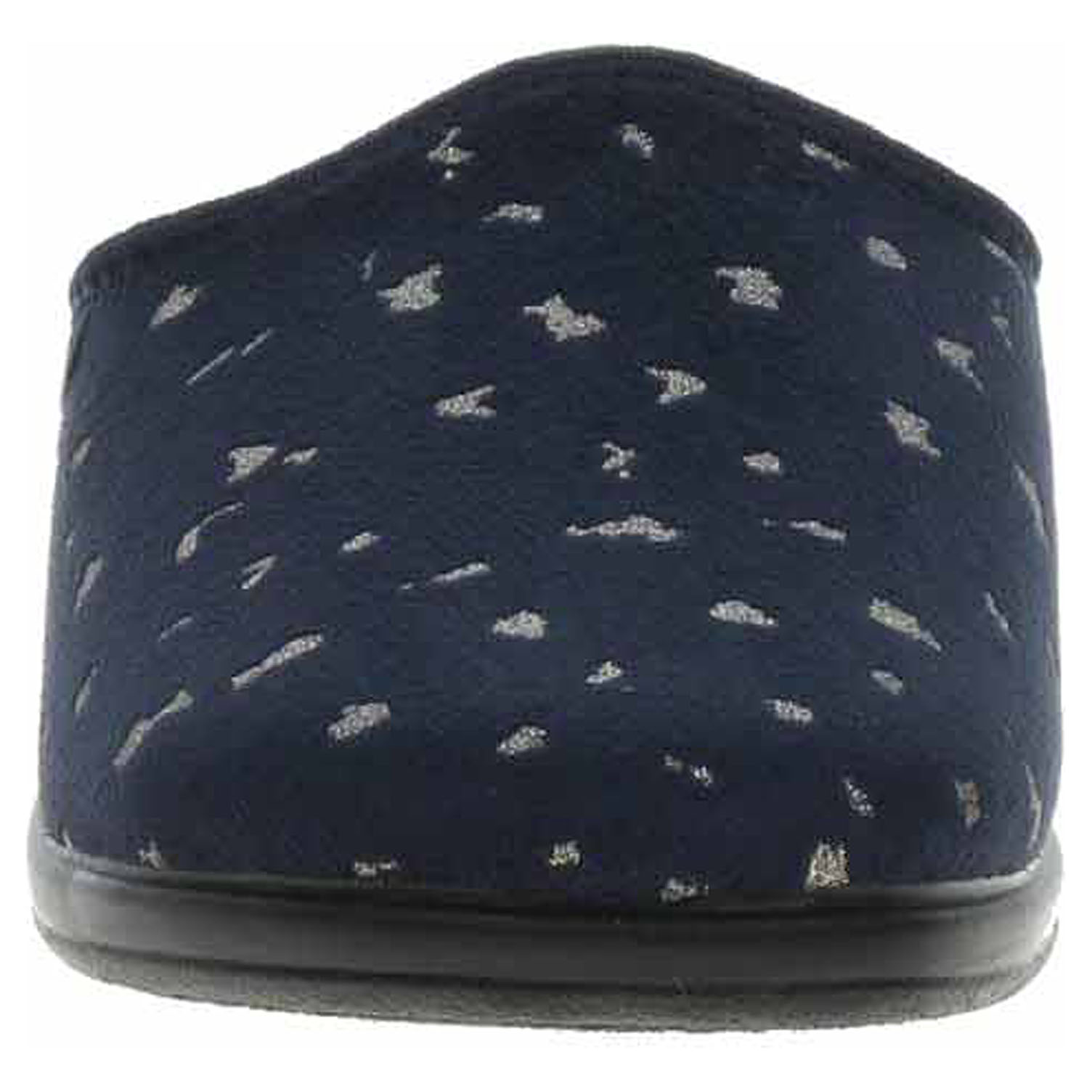 Popis:Boty Rogallo - dámské domácí pantofle s plnou špičkou na klínku vysokém 3,5 cm. Svršek, podšívka i stélka jsou textilní.