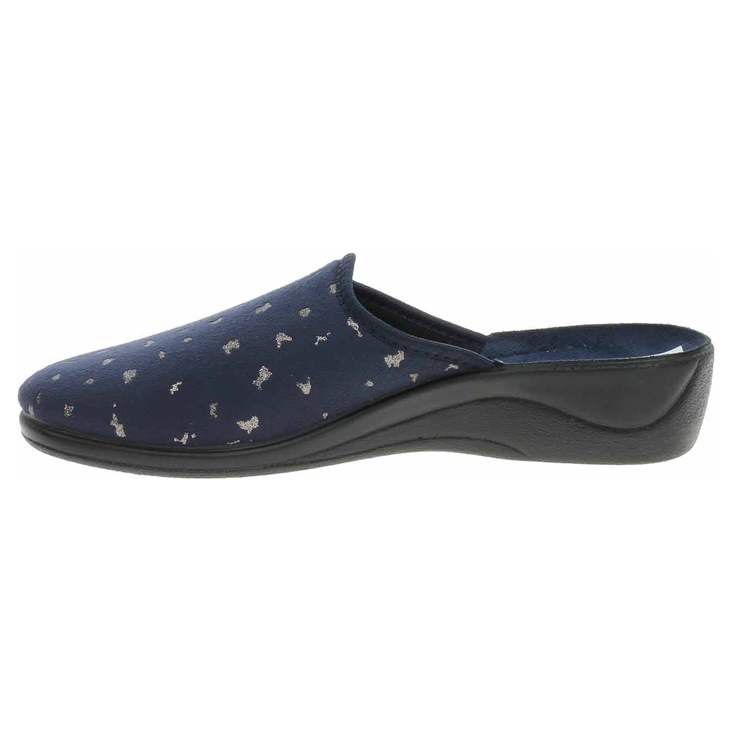 Boty Rogallo - dámské domácí pantofle s plnou špičkou na klínku vysokém 3,5 cm. Svršek, podšívka i stélka jsou textilní.