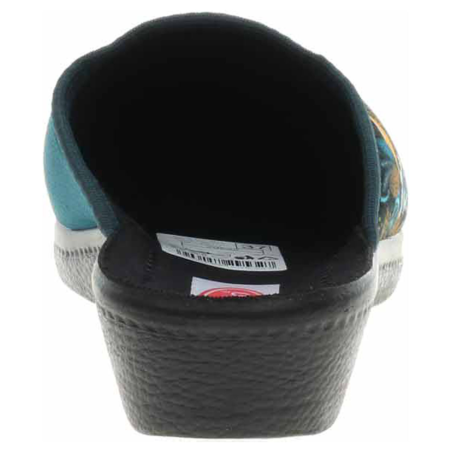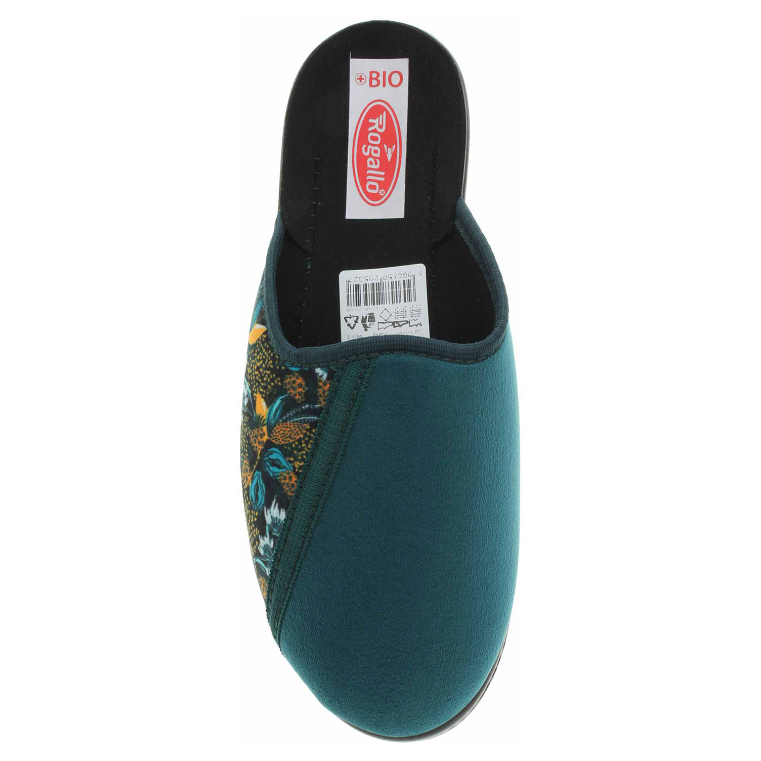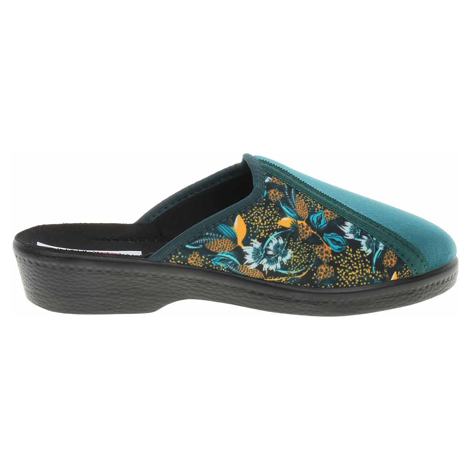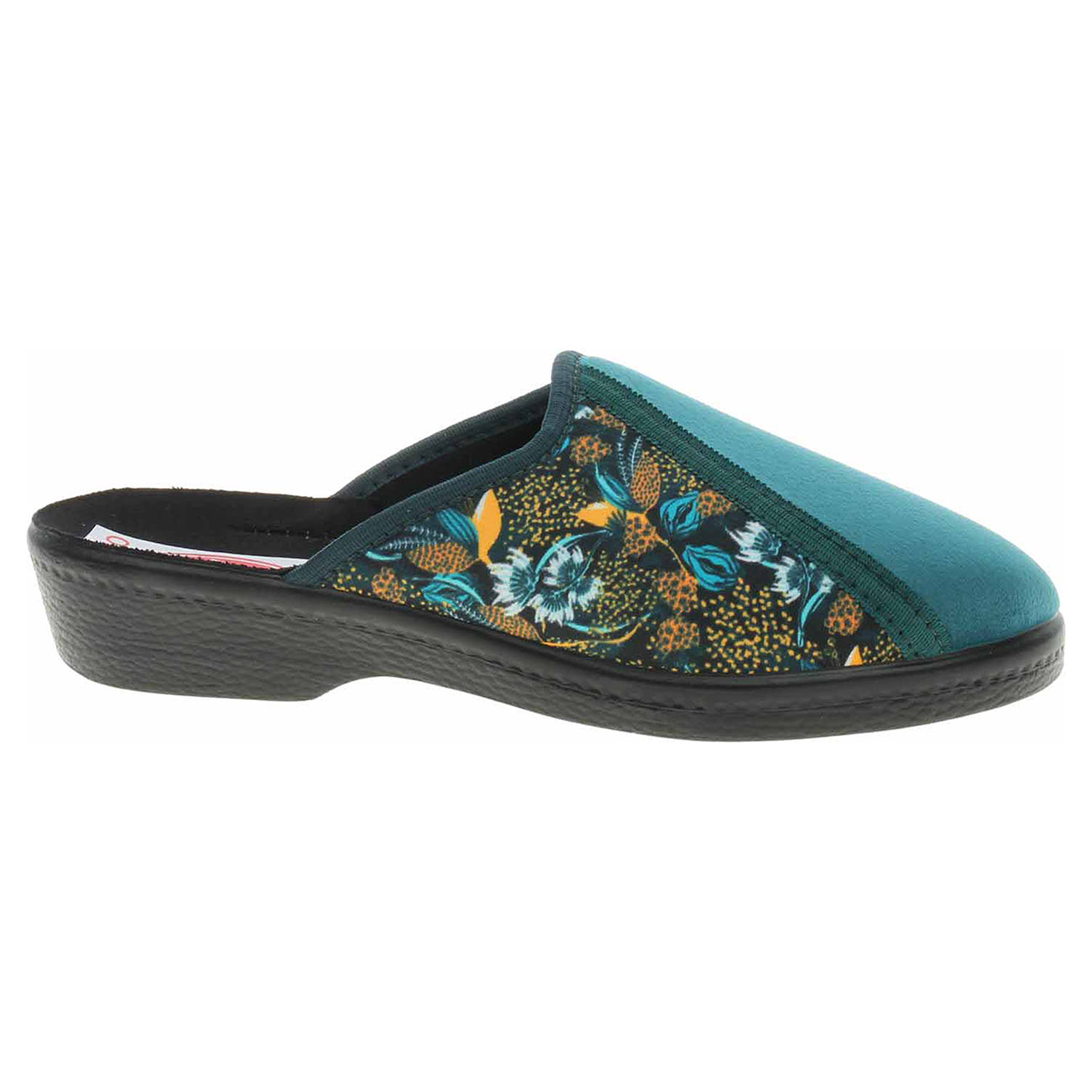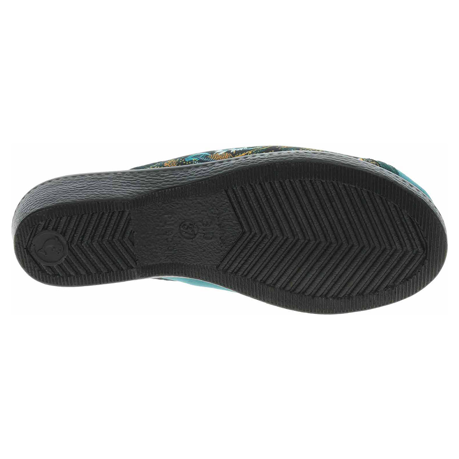 Popis:Boty Rogallo - dámské domácí pantofle s plnou špičkou na klínku vysokém 3,5 cm. Svršek, podšívka i stélka jsou textilní.