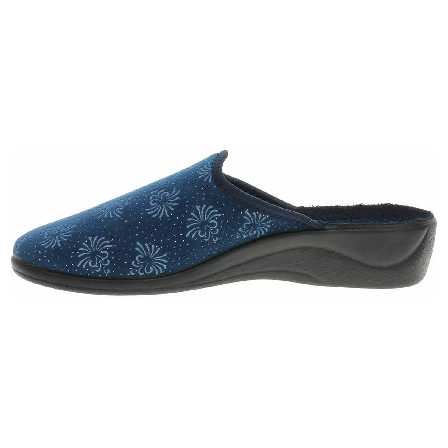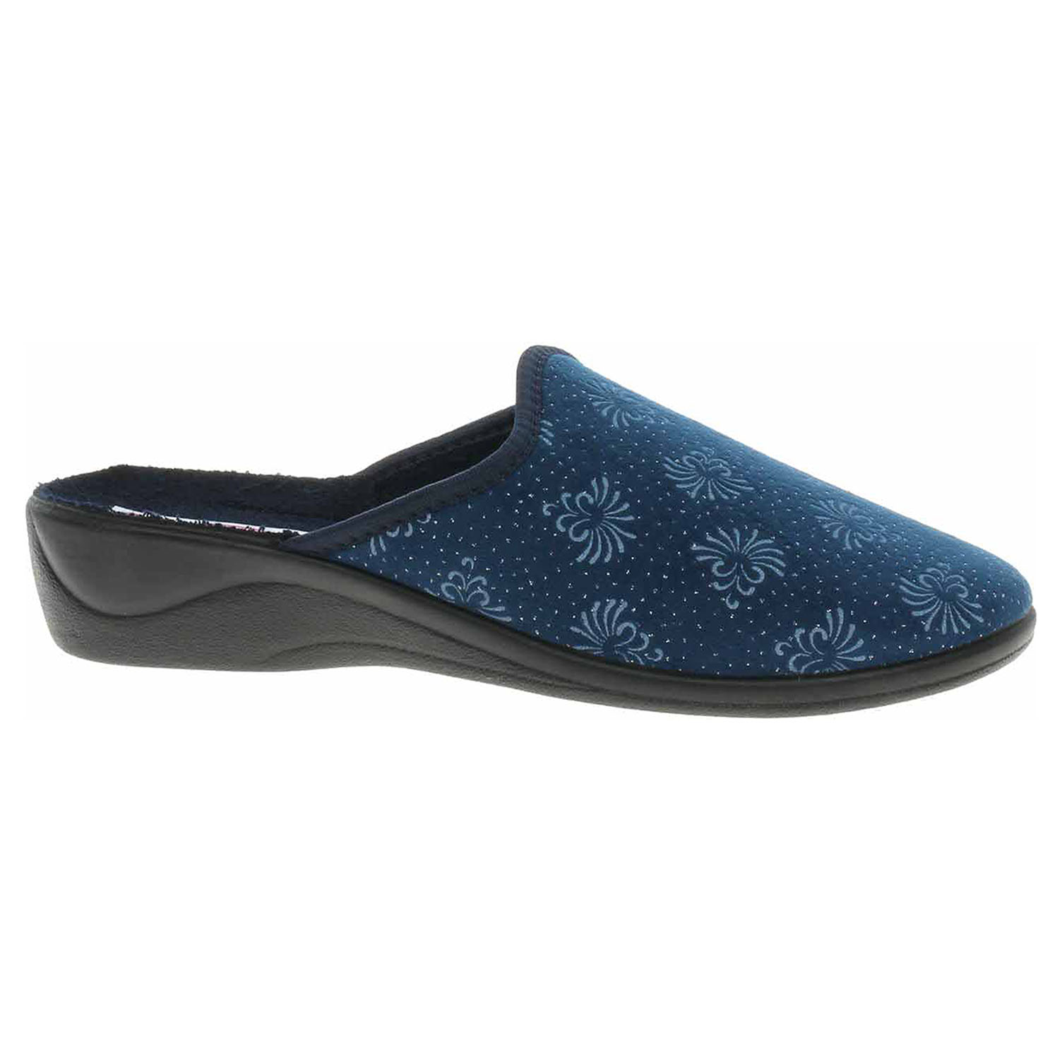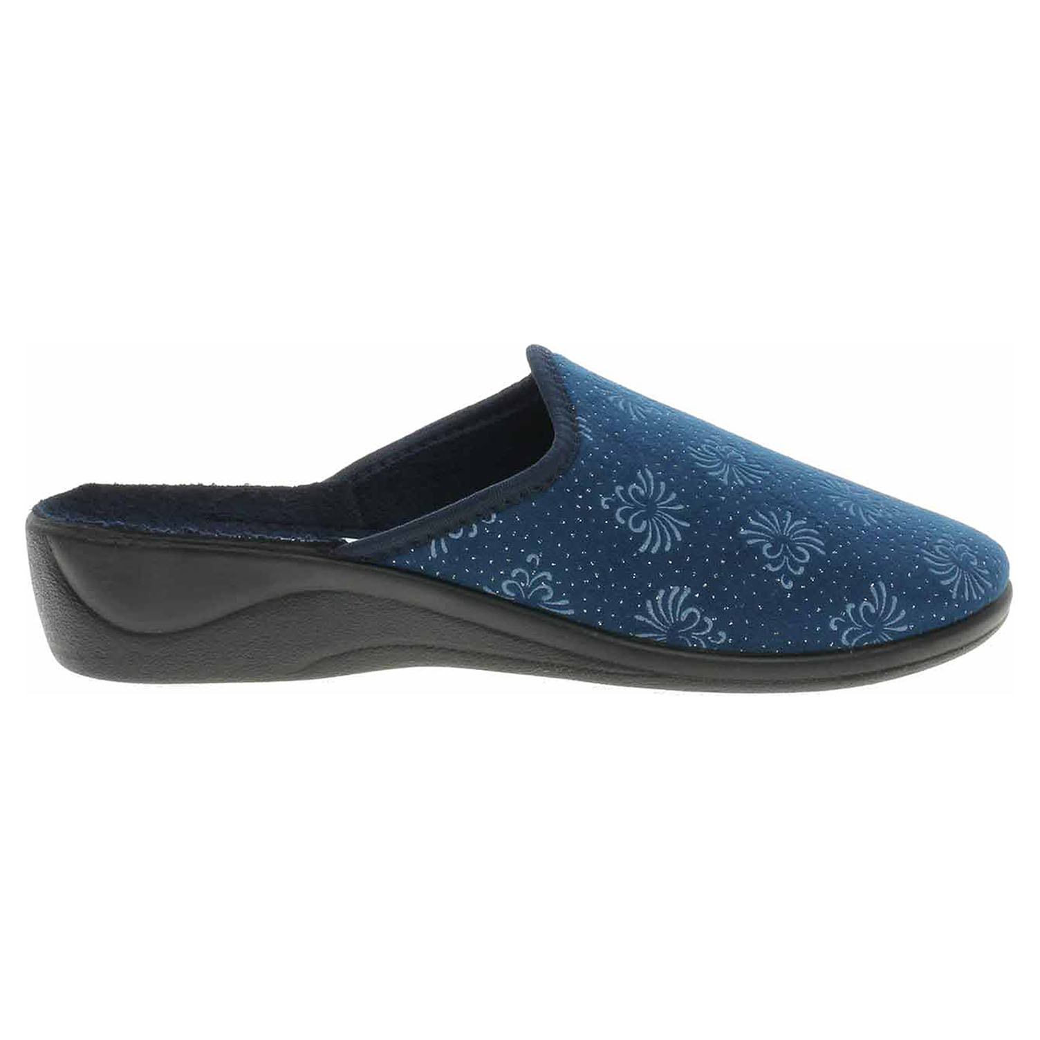 Boty Rogallo - dámské domácí pantofle s plnou špičkou na klínku vysokém 3,5 cm. Svršek, podšívka i stélka jsou textilní.
