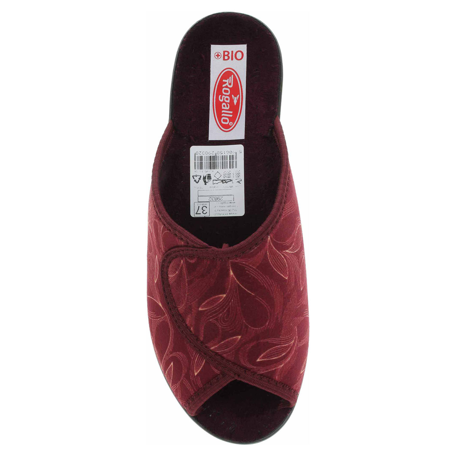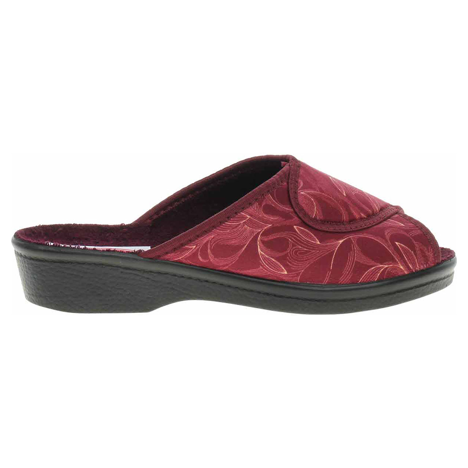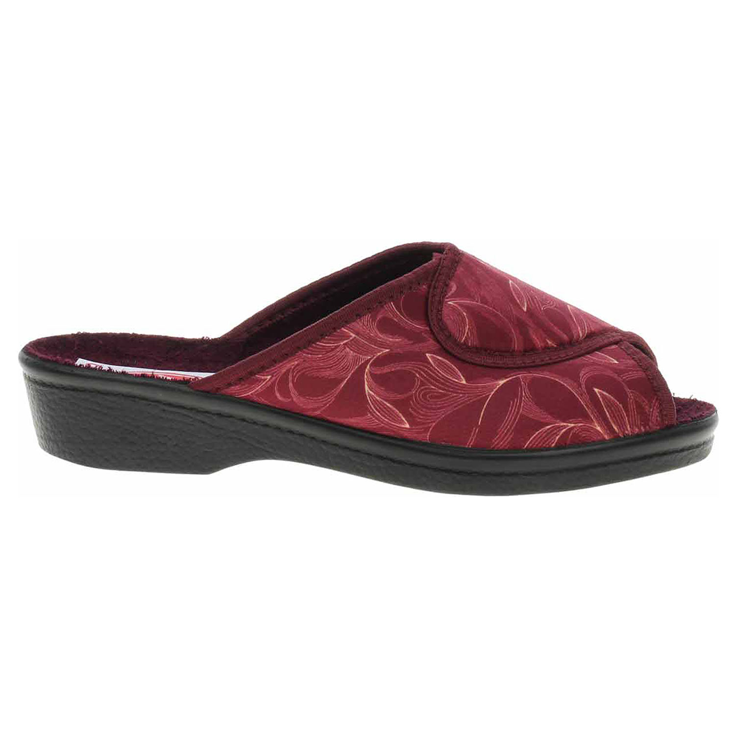 Boty Rogallo - dámské domácí pantofle s otevřenou špičkou. Svršek, podšívka i stélka jsou textilní. Klínek je vysoký 3,5 cm.