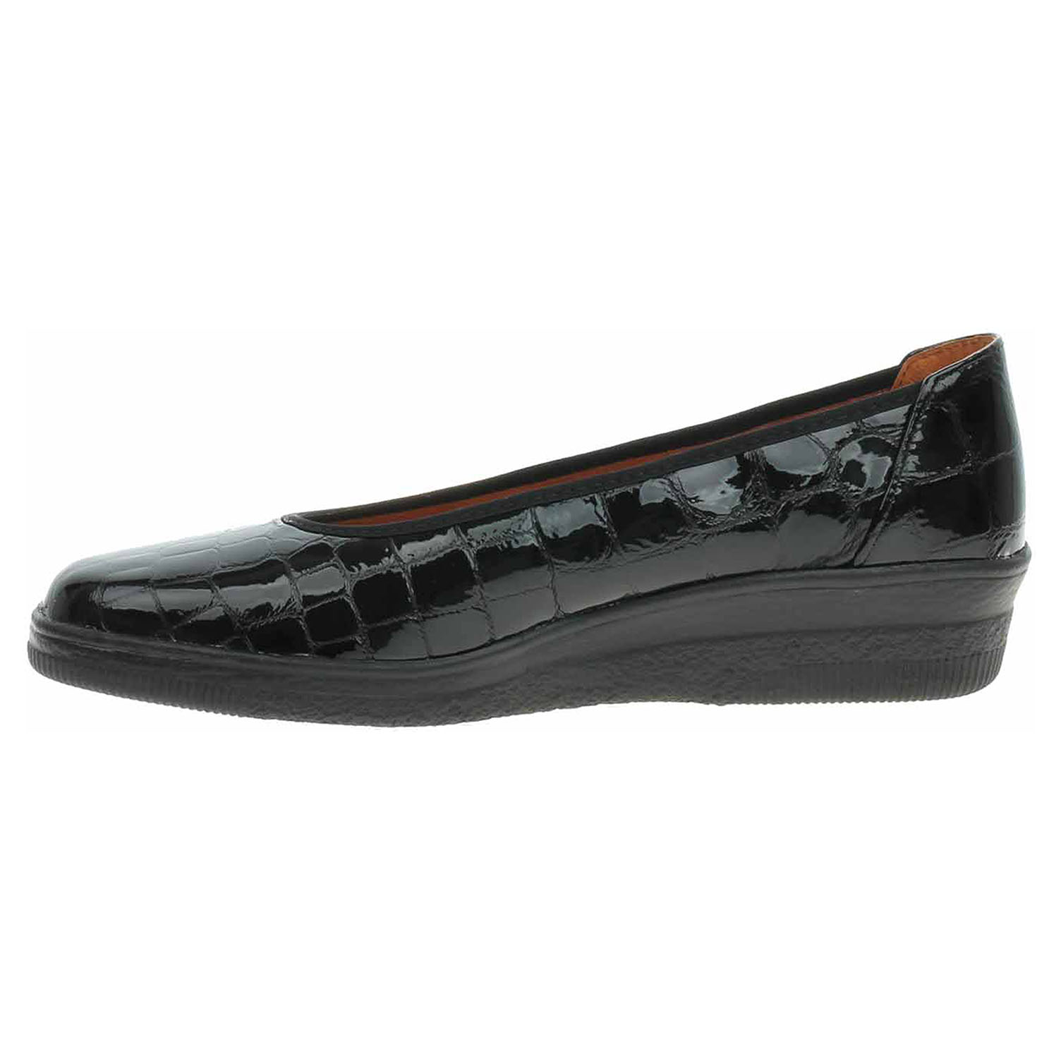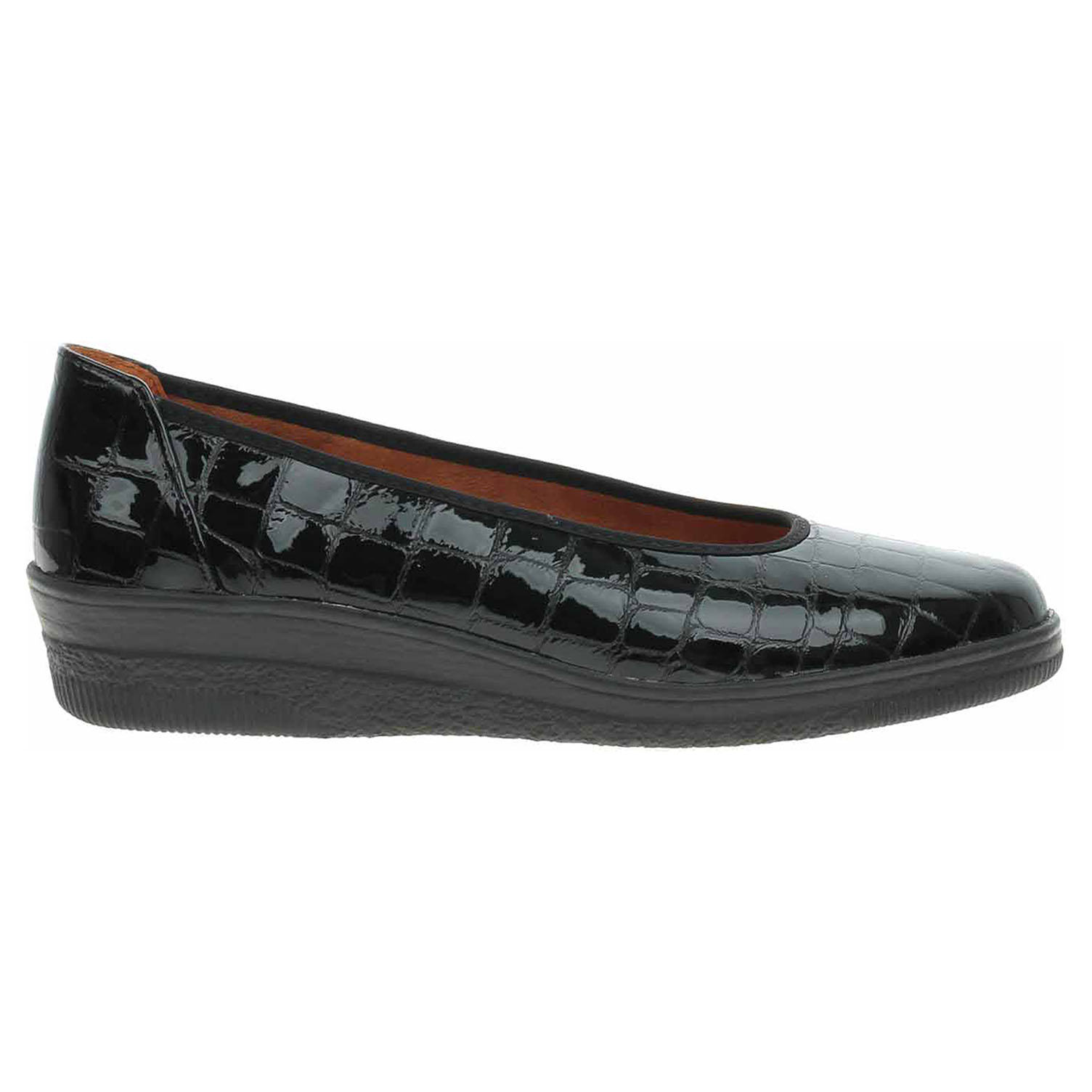 Boty Gabor Comfort - lakované dámské lodičky se svrškem a stélkou z usně a podšívkou kombinovanou useň/textil mají klínek vysoký 3,- cm. Jedná se o obuv obzvláště pohodlné šířky G. U výrobků řady "Comfort" nabízí Gabor obuv šířky G (větší šířka). To znamená, že tato obuv poskytuje více prostoru pro prsty, bříška palců a oblast nártu a tím i více nezbytného pohodlí. Lakovaná obuv - hladký, lesklý povrch je docílen lakovou úpravou. Povrch je choulostivý na mechanické poškození, rozmáčení a mráz. Ošetřujte prostředky na lakové usně.