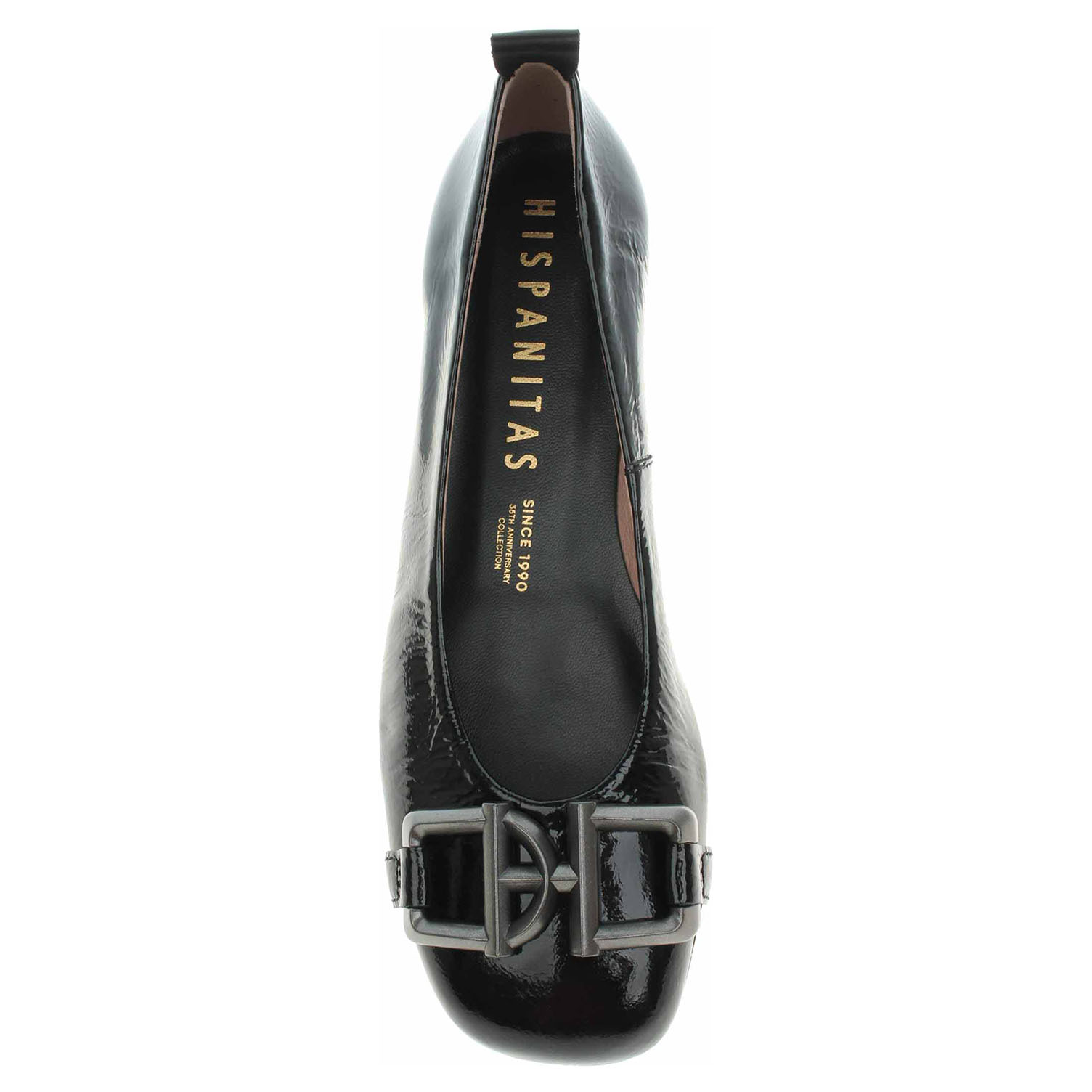 Boty Hispanitas - lakované dámské lodičky s ozdobou na špičce mají svršek, podšívku i stélku z usně. Technologie Triflow: trojité polstrování v oblasti běhounu, které absorbuje nárazy a poskytuje tlumený efekt při chůzi. Podešev z termoplastického polyuretanu má podpatek vysoký 2,5 cm. Lakovaná obuv - hladký, lesklý povrch je docílen lakovou úpravou. Povrch je choulostivý na mechanické poškození, rozmáčení a mráz. Ošetřujte prostředky na lakové usně.
