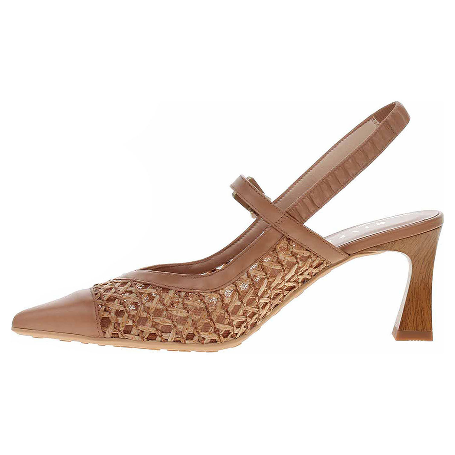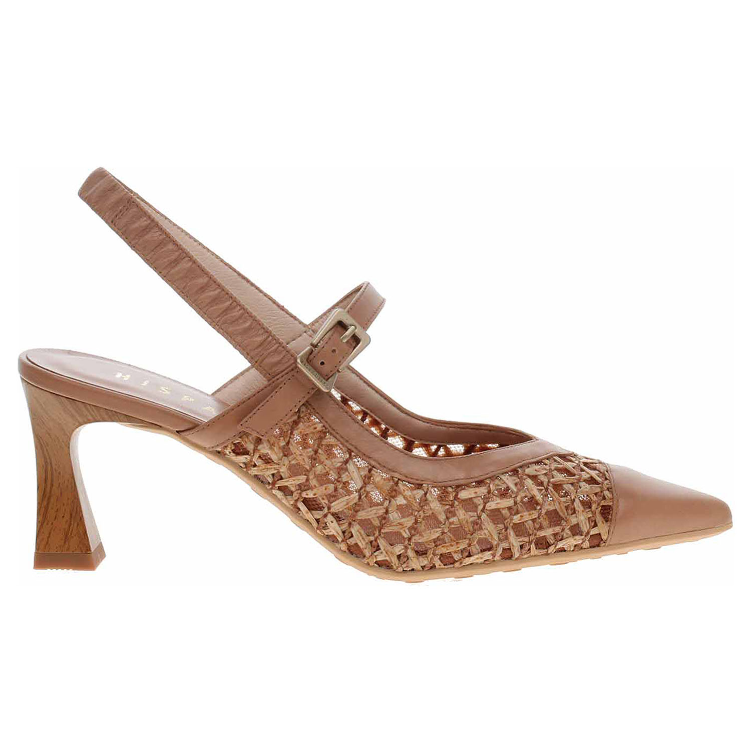 Boty Hispanitas - módní dámské lodičky s volnou patou mají svršek obuvi kombinovaný useň/textil, podšívku textilní a stélku z usně. Technologie Triflow: trojité polstrování v oblasti běhounu, které absorbuje nárazy a poskytuje tlumený efekt při chůzi. Podešev z termoplastického polyuretanu má podpatek vysoký 7,- cm. Módní obuv - je určena pro krátkodobé nošení v nenáročných podmínkách. Prvořadá je módnost nikoliv životnost. Obuv není vhodná pro každodenní používání.