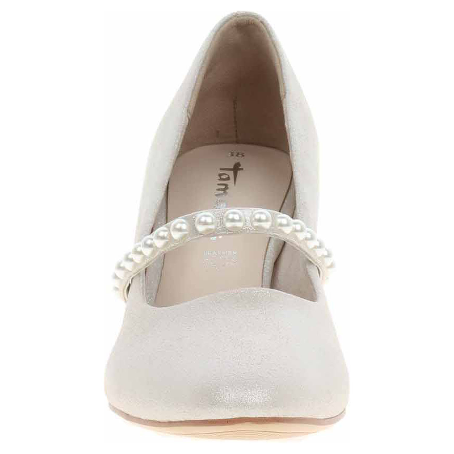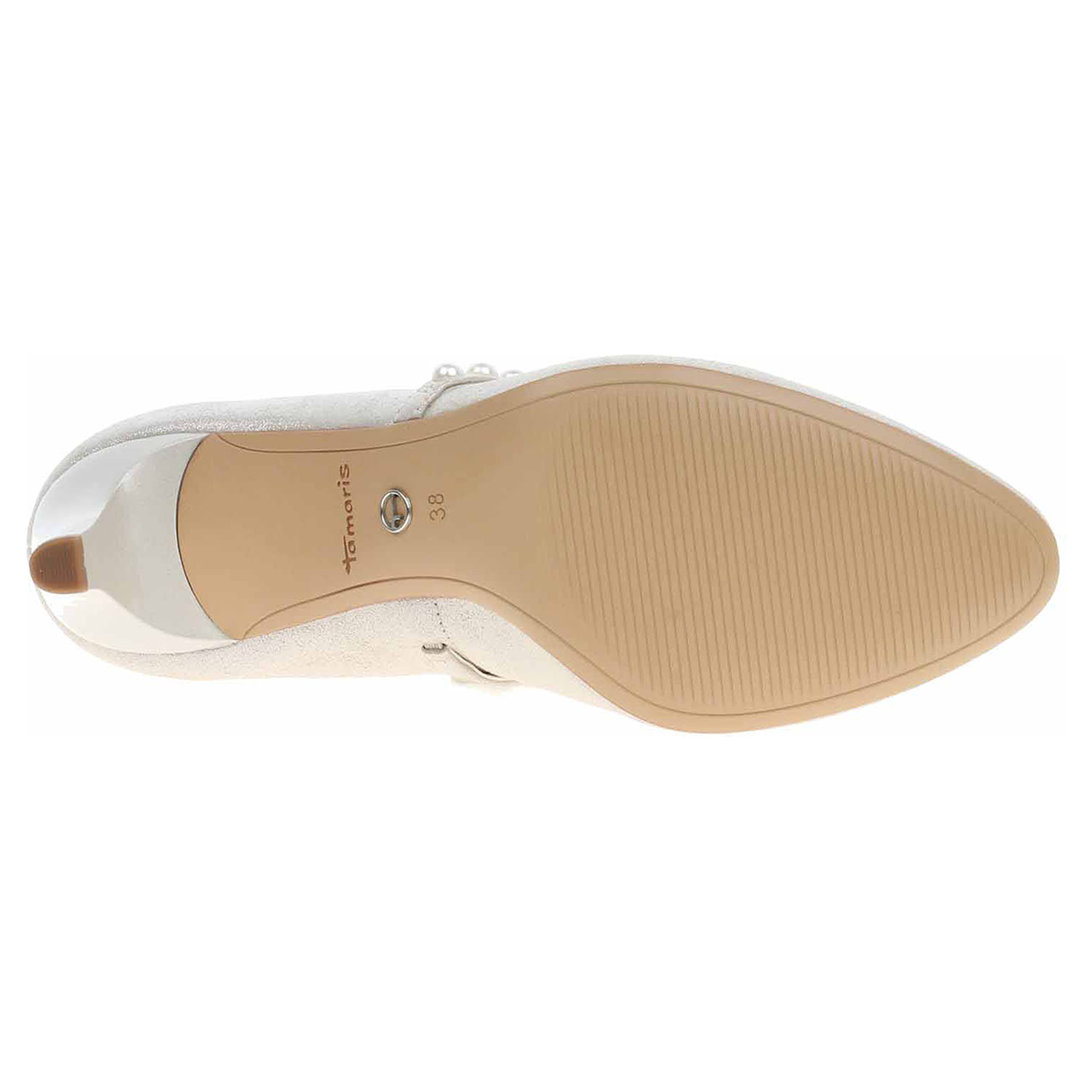 Boty Tamaris - lepené dámské lodičky se svrškem z usně a s podšívkou kombinovanou textil/syntetika jsou vybavené paměťovou stélkou Touch it s nášlapnou vrstvou z usně. Vyměkčená stélka se přizpůsobuje vašemu chodidlu a zajišťuje při chůzi optimální komfort. Pásek přes nárt s perličkami je na vnitřní straně vybavený vsazenu gumičkou, která zajišťuje pohodlné nazouvání a zárověň stabilitu nohy v obuvi. Podpatek vysoký 6,5 cm. Lepená obuv - pevnost lepeného spoje může být negativně ovlivněna promáčením nebo propocením, event. opakovaným používáním nedostatečně vysušené obuvi. Při neopatrné chůzi může dojít k mechanickému uvolnění lepeného spoje - ukopnutí