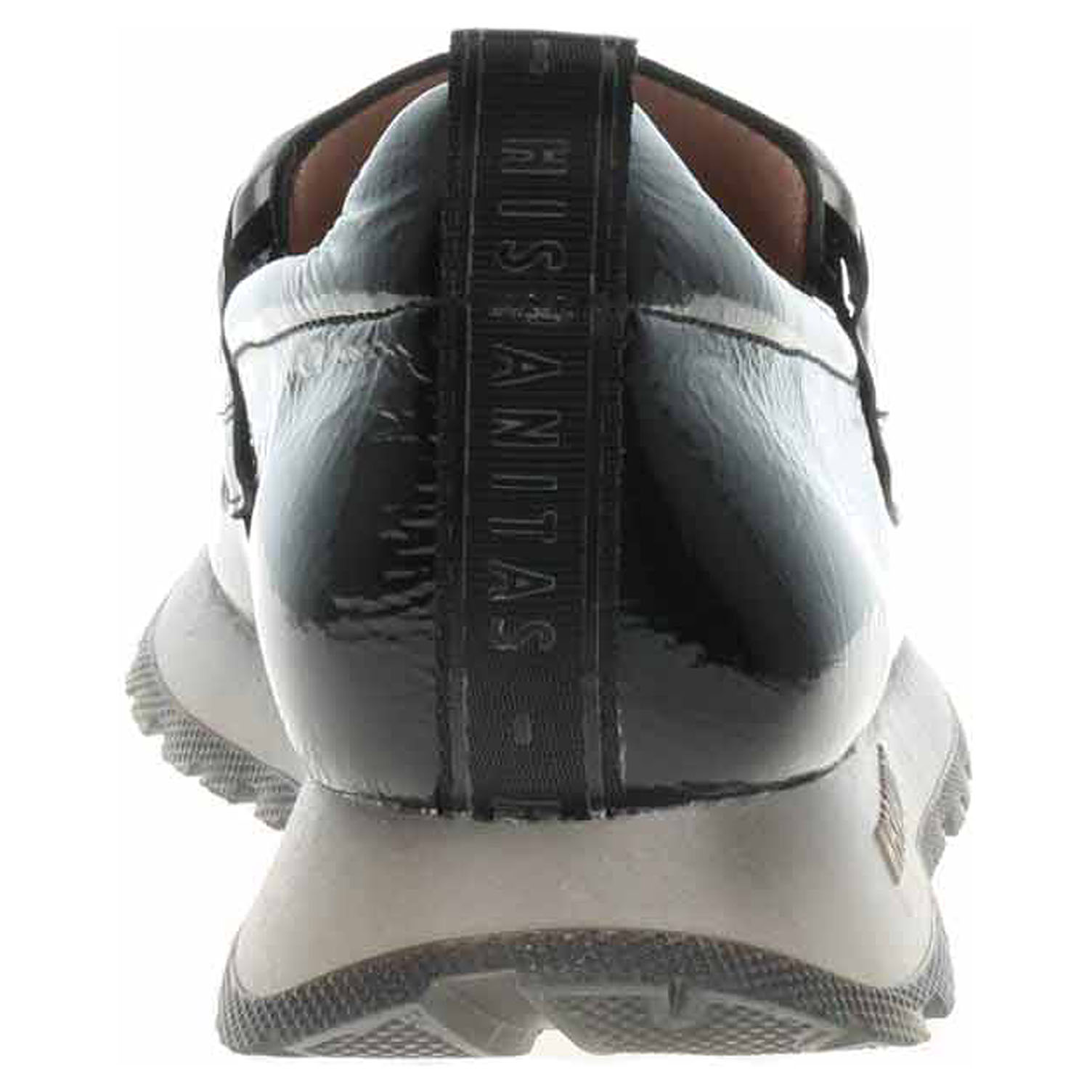 Boty Hispanitas - lakované dámské mokasiny s ozdobnou sponou na nártu mají svršek i podšívku z usně a jsou vybavené vyndavací stélkou s nášlapnou vrstvou z usně. Technologie Triflow: trojité polstrování v oblasti běhounu, které absorbuje nárazy a poskytuje tlumený efekt při chůzi. Podešev z termoplastického polyuretanu poskytuje vynikající odpružení a protiskluzovou přilnavost. Klínek je vysoký 3,- cm. používání. Lakovaná obuv - hladký, lesklý povrch je docílen lakovou úpravou. Povrch je choulostivý na mechanické poškození, rozmáčení a mráz. Ošetřujte prostředky na lakové usně.