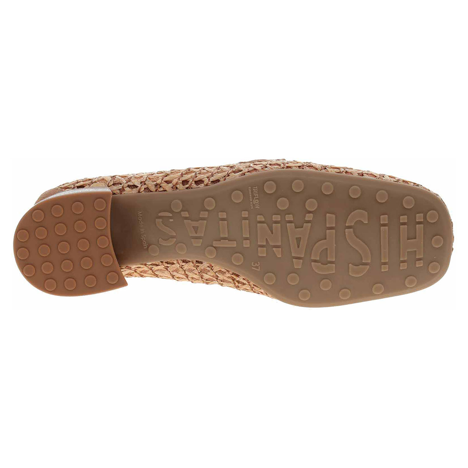 Boty Hispanitas - módní dámské mokasiny jsou na nártu ozdobené ručně vyráběnými detaily. Svršek obuvi je kombinovaný useň/textil, podšívka je textilní a stélka z usně. Technologie Triflow: trojité polstrování v oblasti běhounu, které absorbuje nárazy a poskytuje tlumený efekt při chůzi. Podešev z termoplastického polyuretanu má podpatek vysoký 3,- cm. Módní obuv - je určena pro krátkodobé nošení v nenáročných podmínkách. Prvořadá je módnost nikoliv životnost. Obuv není vhodná pro každodenní používání.