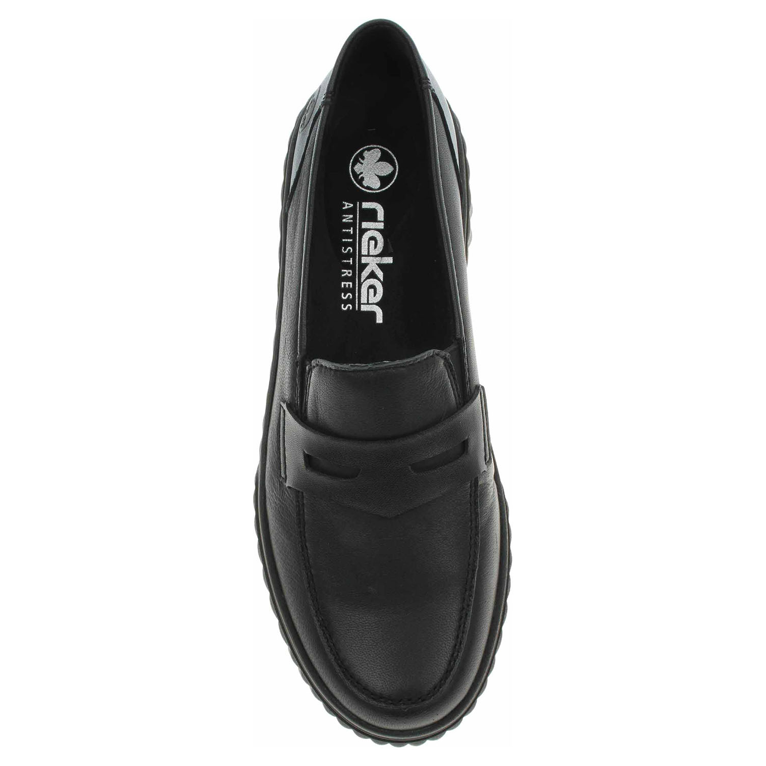 Boty Rieker - lepené dámské mokasiny se svrškem kombinovaným useň/syntetika a s textilní podšívkou jsou vybavené tvarovanou, vyndavací stélkou RiekerSoft s textilní nášlapnou vrstvou. Pohodlné nazouvání zajišťují vsazené gumičky na nártu. Vložky do bot je možné vyndat za účelem provětrání a omytí. Značnou výhodu nabízejí vyměnitelné vložky do bot také těm uživatelům, kteří používají ortopedické vkládací stélky. Klínek je vysoký 5,3 cm a platforma je vysoká 2,5 cm. Podešev je flexibilní a díky systému Antistress (lehkost, pružnost, prostornost a vynikající absorpce nárazů) Vám obuv zajistí pohodlí při každém kroku. Lepená obuv - pevnost lepeného spoje může být negativně ovlivněna promáčením nebo propocením, event. opakovaným používáním nedostatečně vysušené obuvi. Při neopatrné chůzi může dojít k mechanickému uvolnění lepeného spoje - ukopnutí.