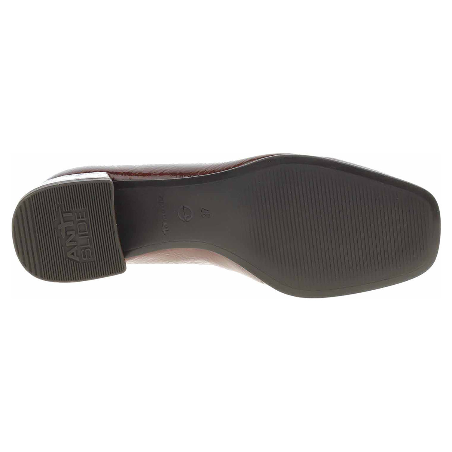 Boty Tamaris - lakované dámské mokasiny se svrškem ze syntetiky a s podšívkou kombinovanou textil/syntetika jsou vybavené stélkou Touch It s nášlapnou vrstvou z usně. Stélka Touch It se přizpůsobuje vašemu chodidlu a zajišťuje při chůzi optimální komfort. Podpatek s protiskluzovou úpravou AntiSlide je vysoký 3,5 cm a díky systému Antishok skvěle tlumí nárazy a otřesy. Antishok je technologie, u které vzduchové komory a stabilizátory v jádře podpatku, zmírňují došlap o cca 50%. Zásluhou tohoto systému dochází k výraznému odlehčení kloubů a páteře. Lakovaná obuv - hladký, lesklý povrch je docílen lakovou úpravou. Povrch je choulostivý na mechanické poškození, rozmáčení a mráz. Ošetřujte prostředky na lakové usně.