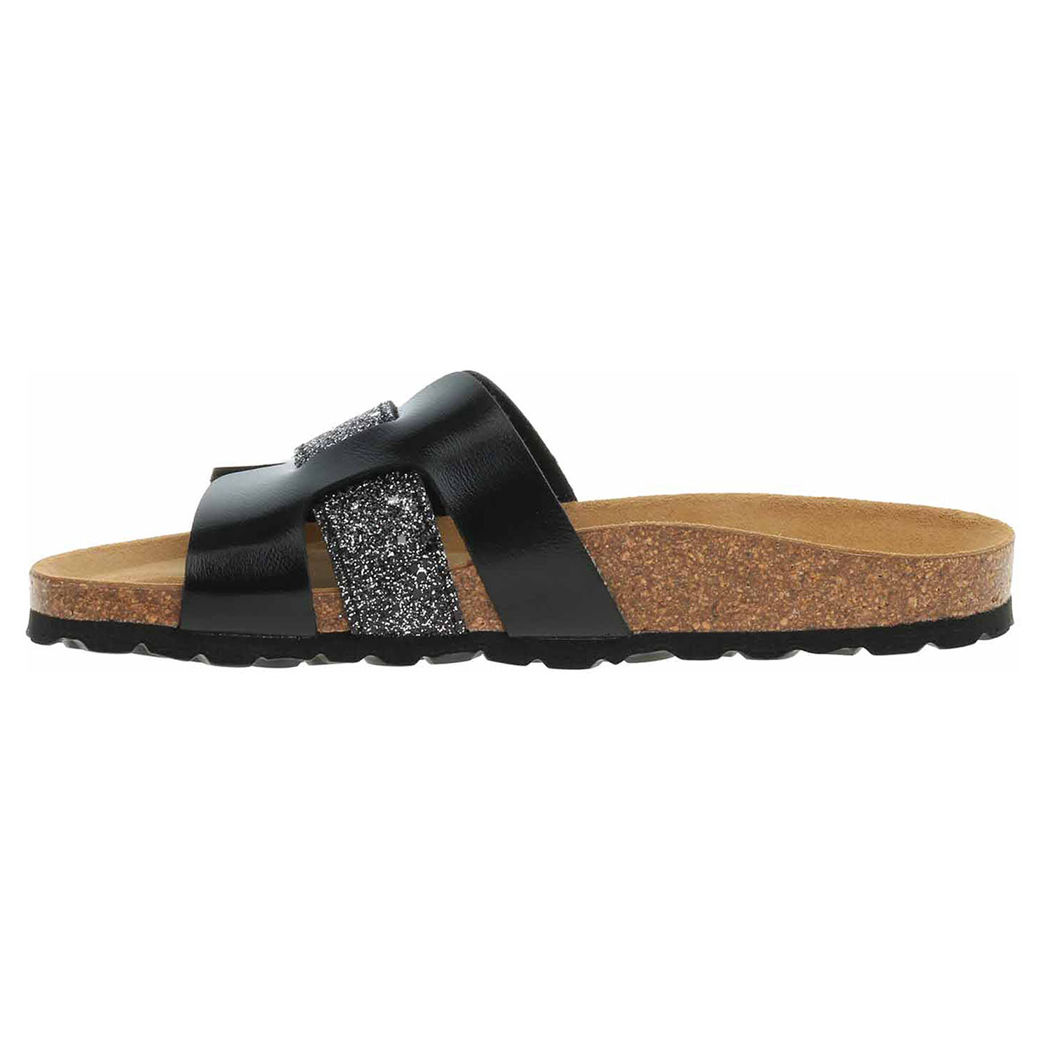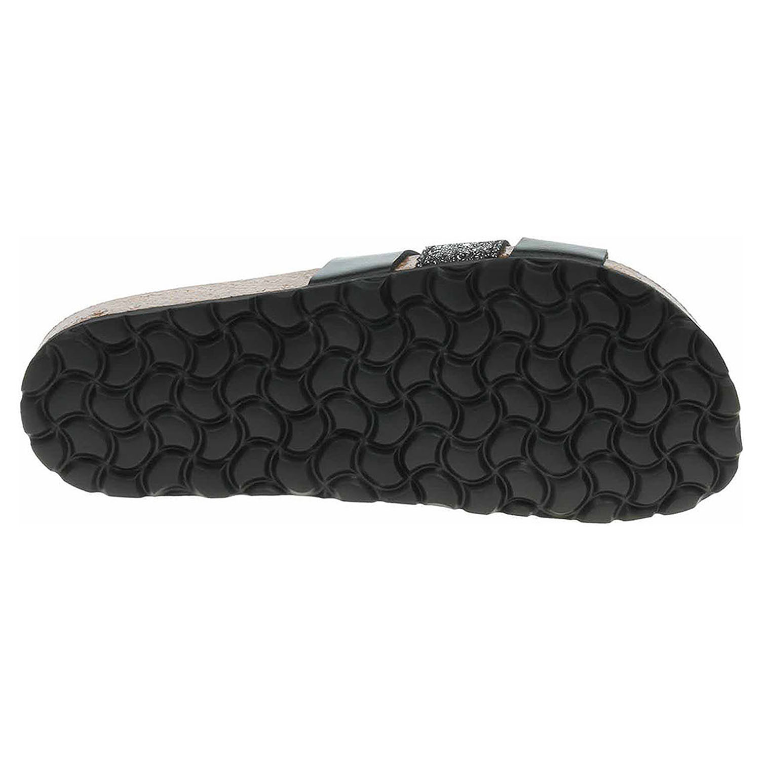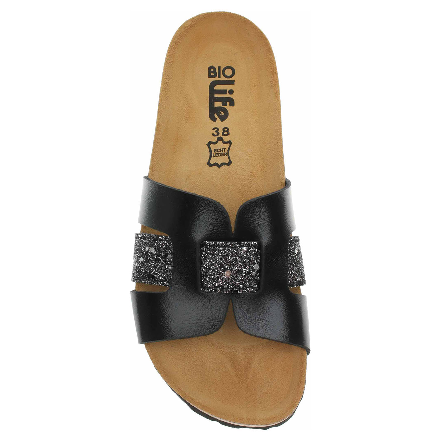Boty Bio Life - lepené dámské pantofle se svrškem ze syntetického materiálu Birko-Flor jsou vybavené korkovou anatomicky tvarovanou stélkou potaženou kvalitní usní. Klínek je vysoký 2,5 cm. Lepená obuv - pevnost lepeného spoje může být negativně ovlivněna promáčením nebo propocením, event. opakovaným používáním nedostatečně vysušené obuvi. Při neopatrné chůzi může dojít k mechanickému uvolnění lepeného spoje - ukopnutí.