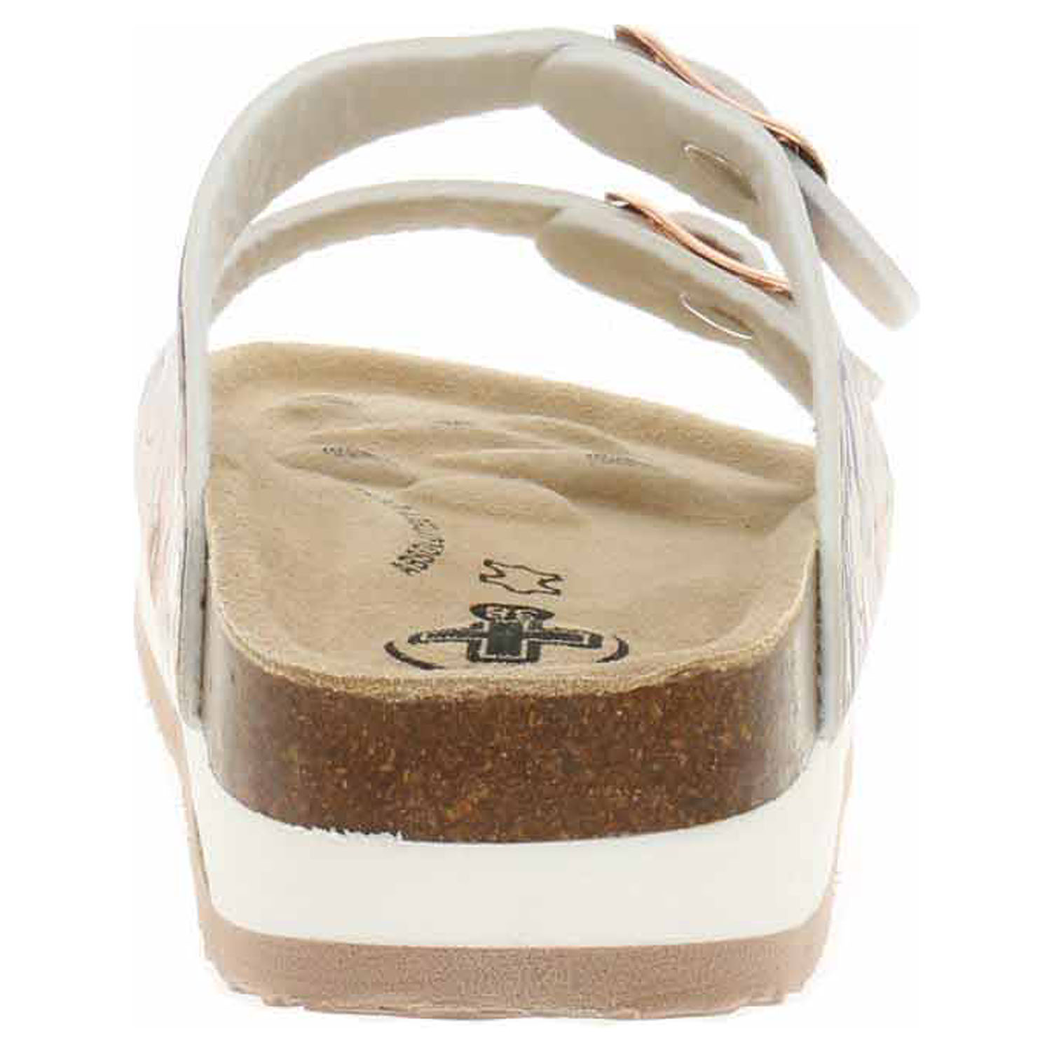 Boty Medi Line - lepené dámské zdravotní pantofle se svrškem ze syntetiky a stélkou z usně. Speciální stélky stimulují reflexní body na chodidlech. Tyto podněty se pak přenáší na příslušné orgány v těle a pomáhají obnovovat zdraví orgánů. Podešev ze speciálně vyvinutého materiálu z PU je měkká, ohebná, pohodlná a lehká. Velmi účinně absorbuje nárazy a poskytuje jedinečnou neklouzavou kvalitu. Tvar podešve zvětšuje kontaktní plochu se zemí a poskytuje lepší přilnavost. Díky její flexibilitě se přizpůsobuje pohybu chodidla, tlumí nárazy a eliminuje negativní následky chůze po tvrdém povrchu. Podešve jsou biologicky rozložitelné a recyklovatelné. Klínek je vysoký 4,- cm a platforma je vysoká 3,- cm. Pomocí přezek na páscích snadno nastavíte objem nártu. Lepená obuv - pevnost lepeného spoje může být negativně ovlivněna promáčením nebo propocením, event. opakovaným používáním nedostatečně vysušené obuvi. Při neopatrné chůzi může dojít k mechanickému uvolnění lepeného spoje - ukopnutí.
