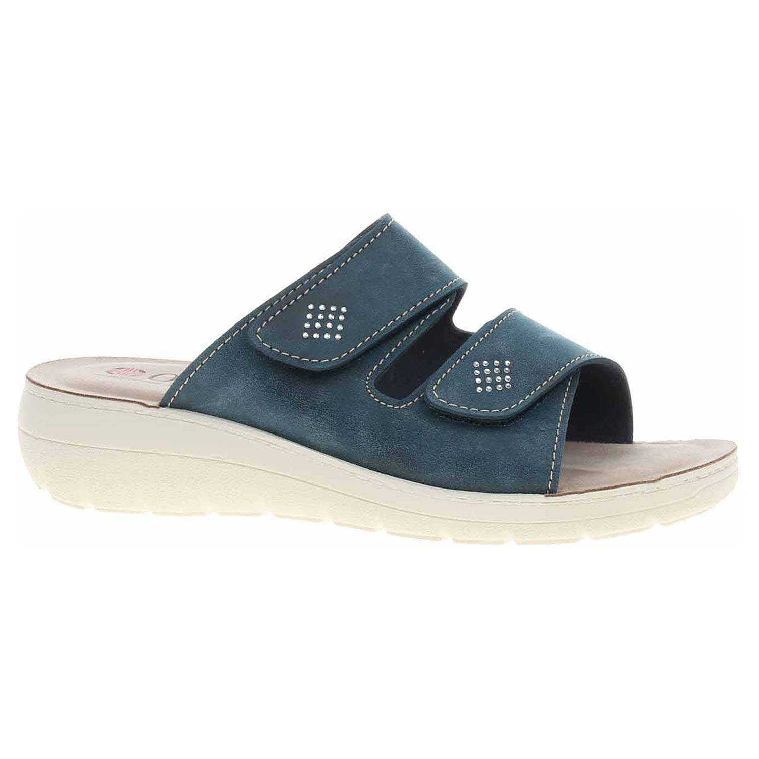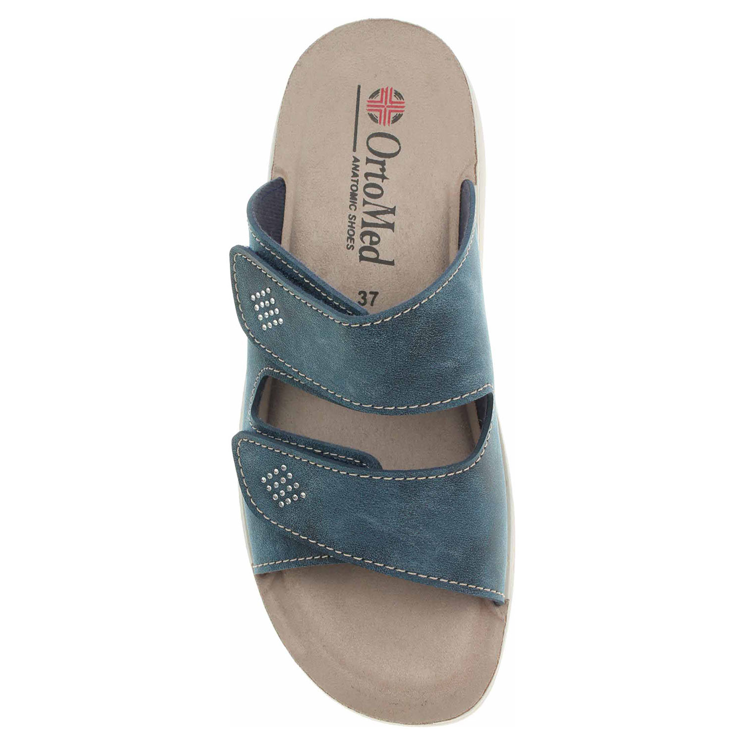 Boty OrtoMed - dámské pantofle se svrškem ze syntetiky a s textilní podšívkou jsou vybavené vyměkčenou stélkou s nášlapnou vrstvou ze syntetiky. Vyměkčená stélka zajistí vaší noze komfortní pocit z chůze a pohodlí. Pásky přes nárt se zapínají na suchý zip. Klínek je vysoký 4,- cm.