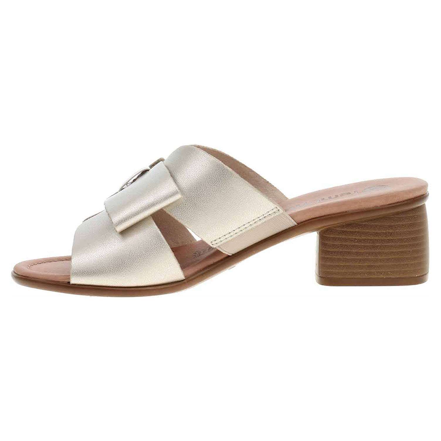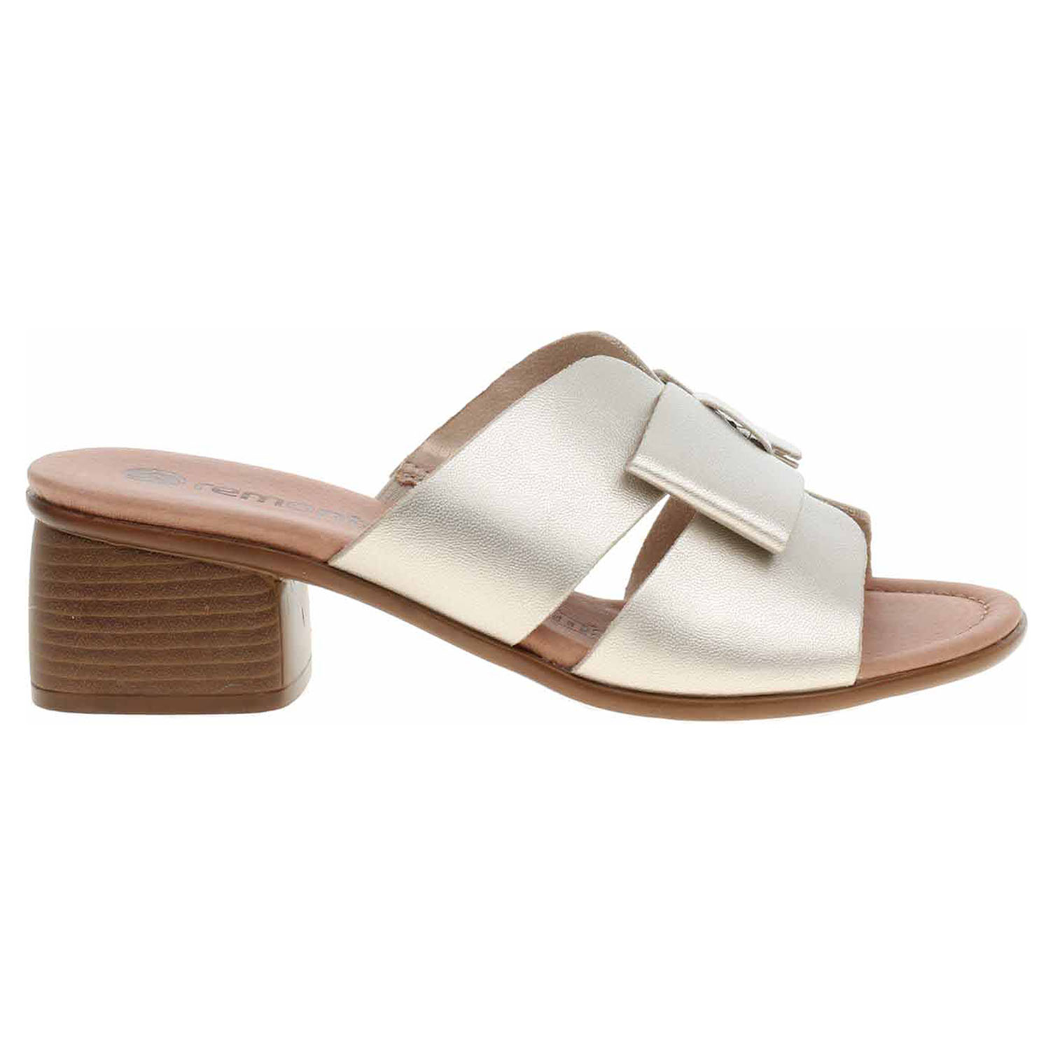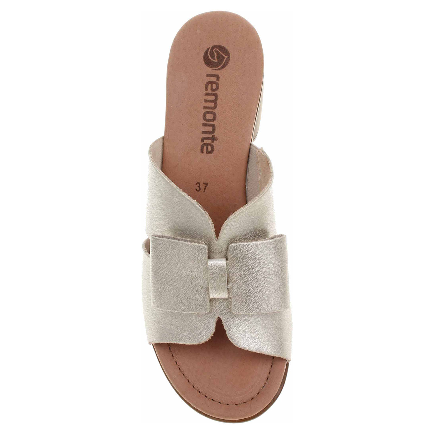 Boty Remonte - dámské vycházkové pantofle s mašličkou mají svršek z usně, textilní podšívku a vyměkčenou stélku z usně. Pásek přes nárt je na vnitřní straně vybavený vsazenou gumičkou. Podpatek je vysoký 5,- cm.
