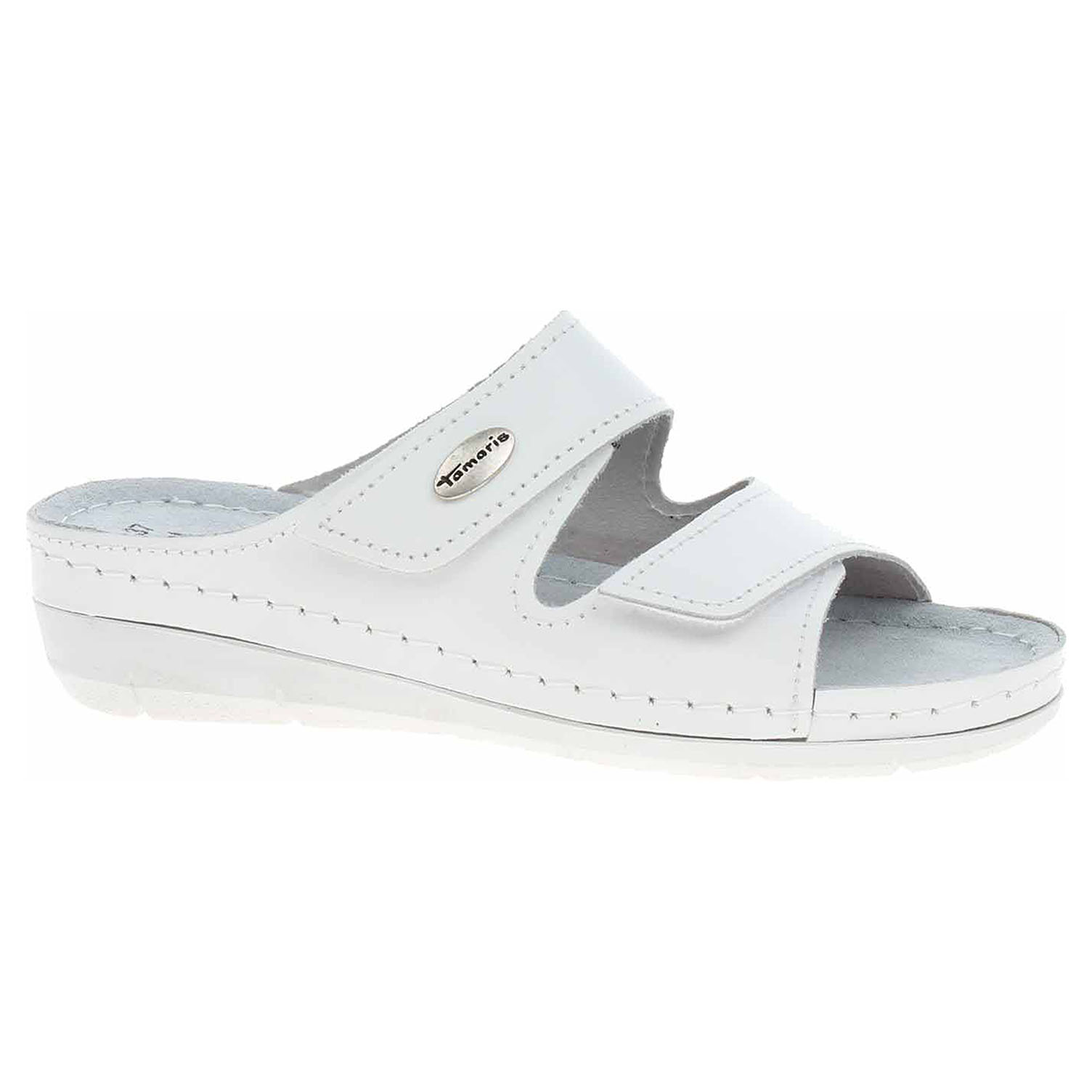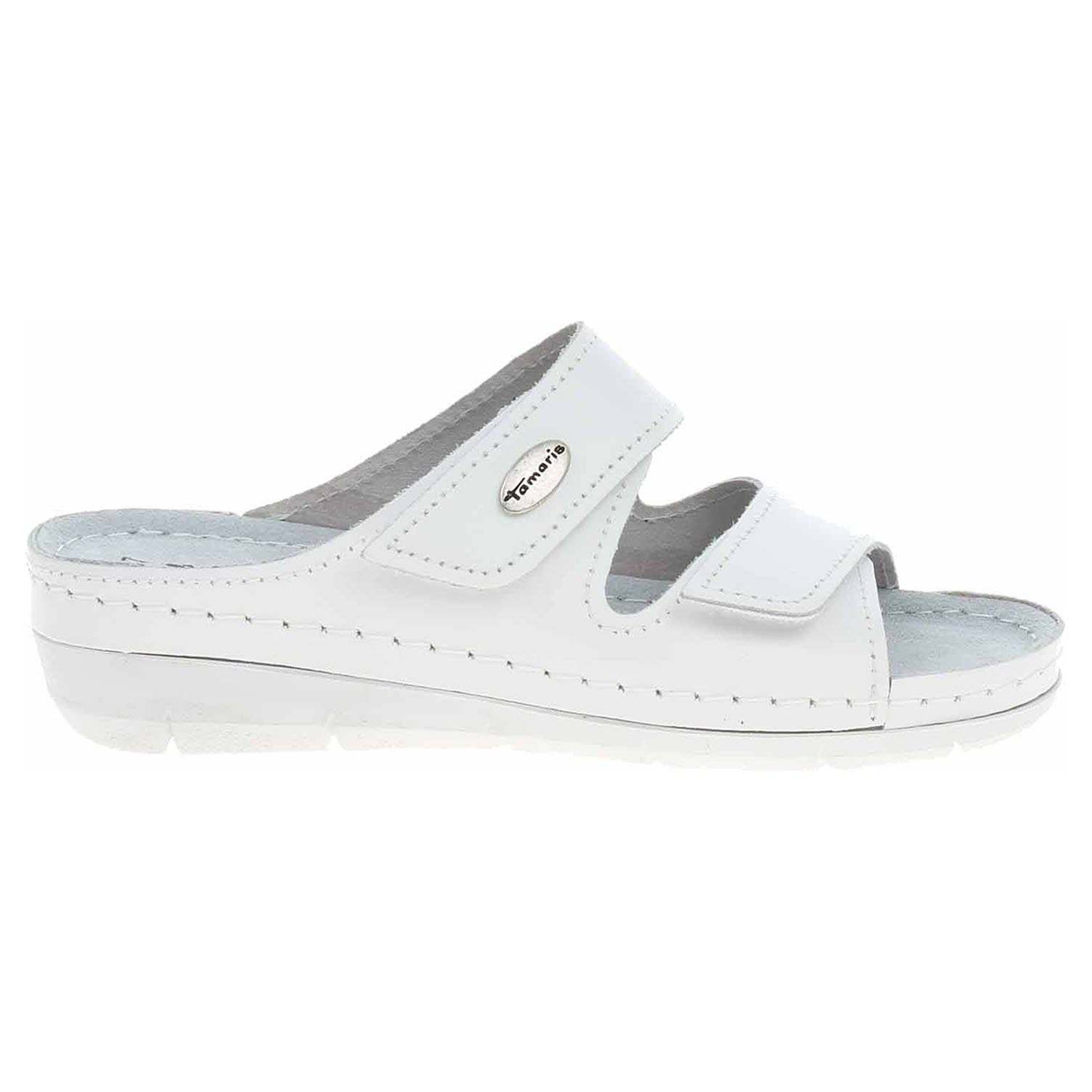 Boty Tamaris - dámské pantofle se svrškem i stélkou z usně. Klínek je vysoký 4,- cm. Vyměkčená stélka zajistí vaší noze komfortní pocit z chůze a pohodlí. Pásky přes nárt se zapínají na suchý zip.