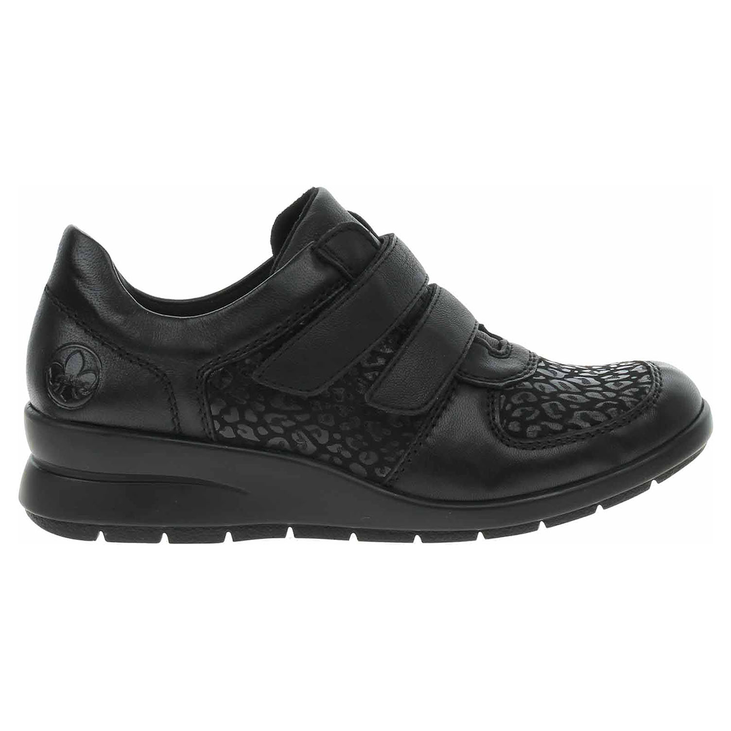 Boty Rieker - lepené dámské polobotky se svrškem kombinovaným useň/syntetika je vybavená vyměkčenou Soft stélkou, která změkčuje došlap a zvyšuje pohodlí v obuvi. Vyndavací vložky do bot je možné vyndat za účelem provětrání a omytí. Značnou výhodu nabízejí vyměnitelné vložky do bot také těm uživatelům, kteří používají ortopedické vkládací stélky. Pohodlné nazouvání zajišťují pásky přes nárt, které se zapínají na suché zipy. Klínek je vysoký 4,- cm. Podešev je flexibilní a díky systému Antistress skvěle tlumí nárazy a otřesy. Lepená obuv - pevnost lepeného spoje může být negativně ovlivněna promáčením nebo propocením, event. opakovaným používáním nedostatečně vysušené obuvi. Při neopatrné chůzi může dojít k mechanickému uvolnění lepeného spoje - ukopnutí.