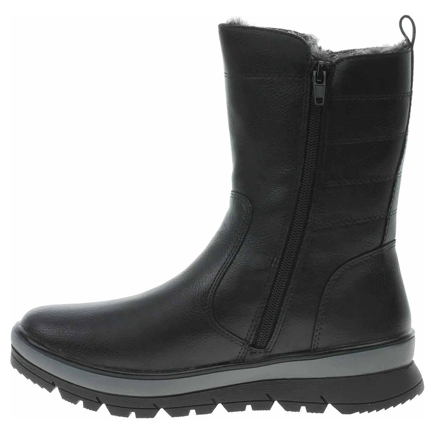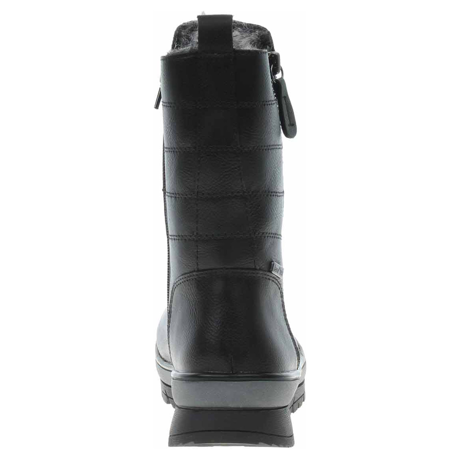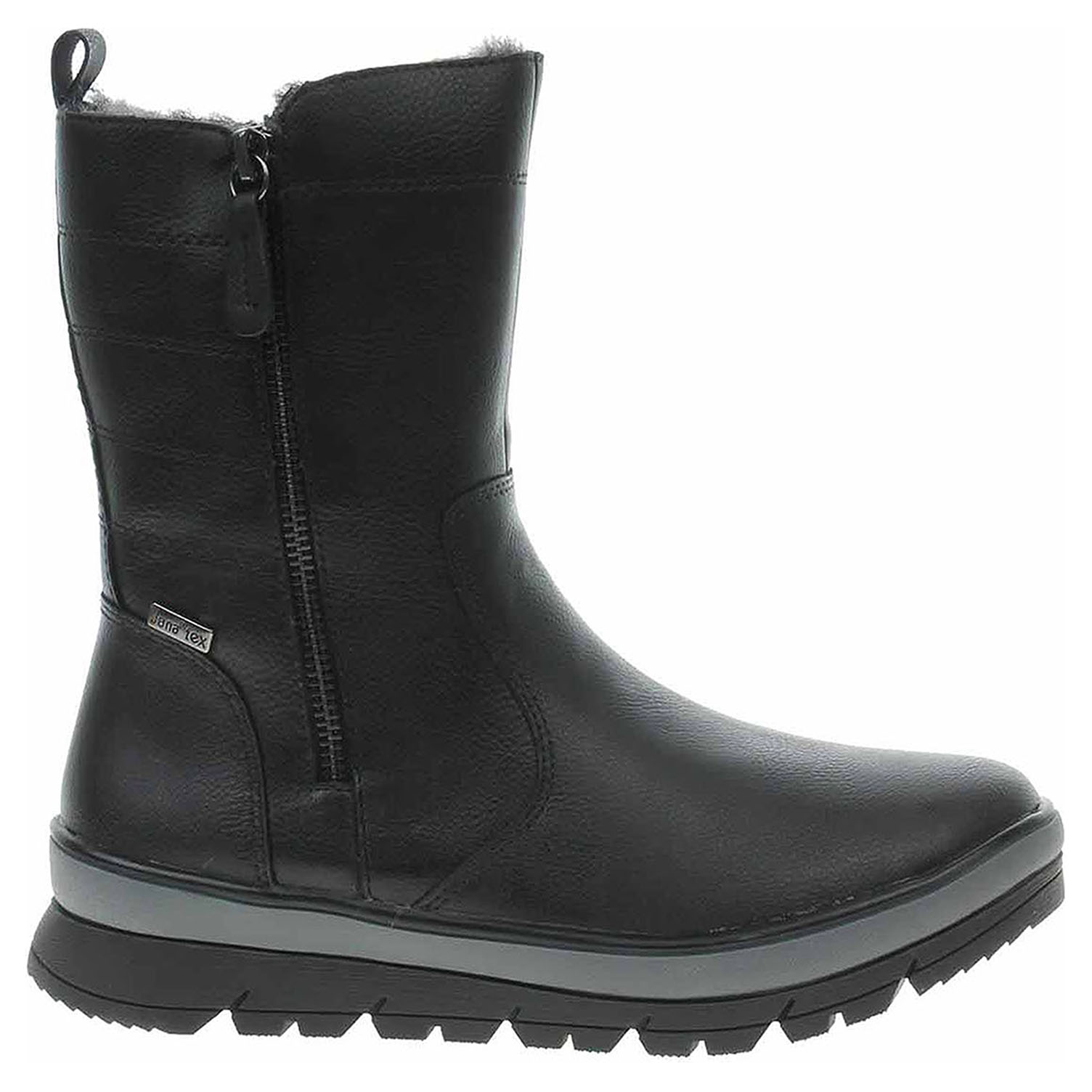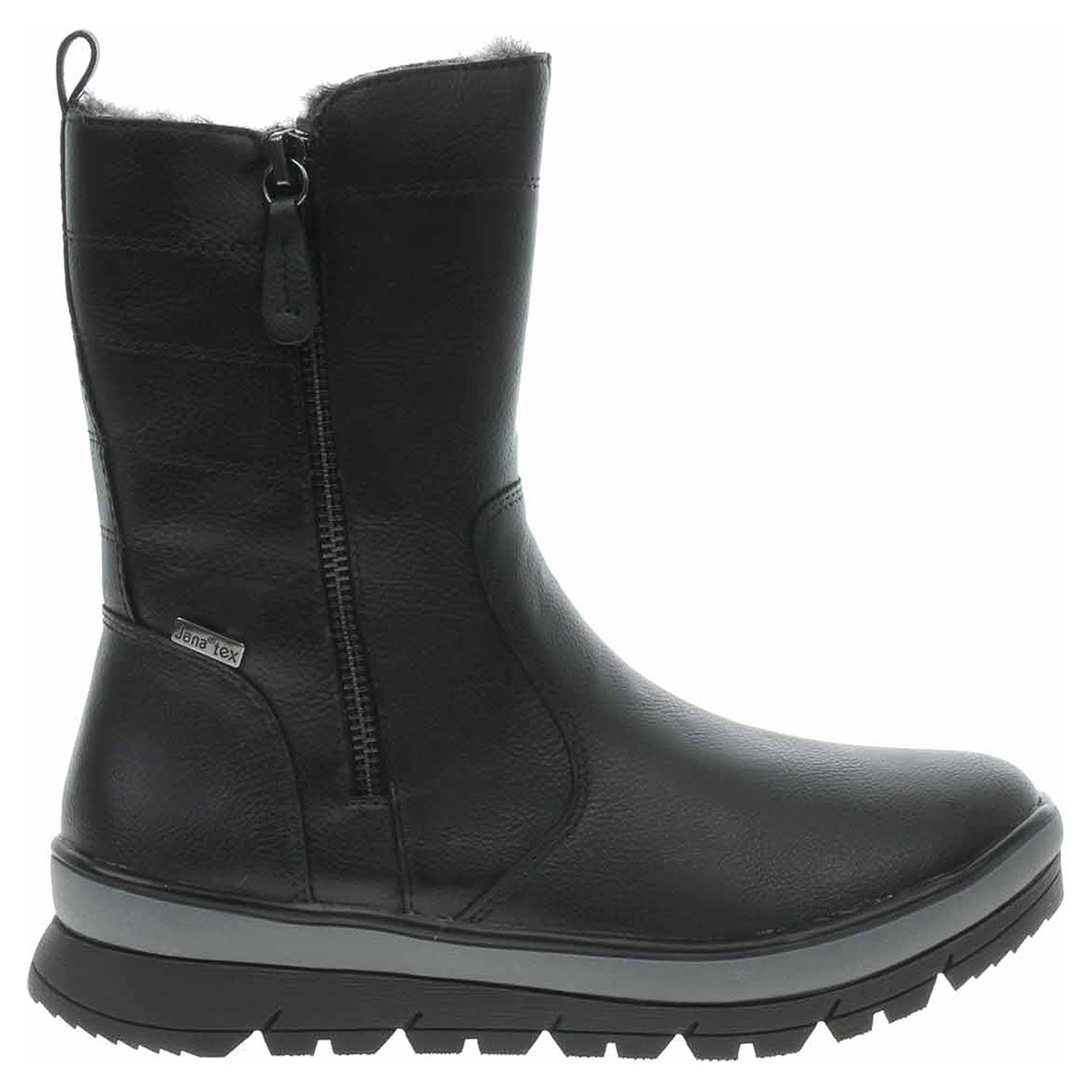 Boty Jana - lepené dámské polokozačky nadměrné šíře H se svrškem ze syntetiky a s textilní stélkou jsou vybavené vodoodpudivou membránou JanaTex. Obuv je vyteplená podšívkou s delším chlupem (z 50% vyrobená z recyklovaného materiálu - PET láhve). Pohodlné nazouvání zajišťuje zip na vnitřní straně. Zip na vnější straně má pouze ozdobnou funkci. Klínek je vysoký 4,- cm a platforma je vysoká 2,5 cm. Lepená obuv - pevnost lepeného spoje může být negativně ovlivněna promáčením nebo propocením, event. opakovaným používáním nedostatečně vysušené obuvi. Při neopatrné chůzi může dojít k mechanickému uvolnění lepeného spoje - ukopnutí.